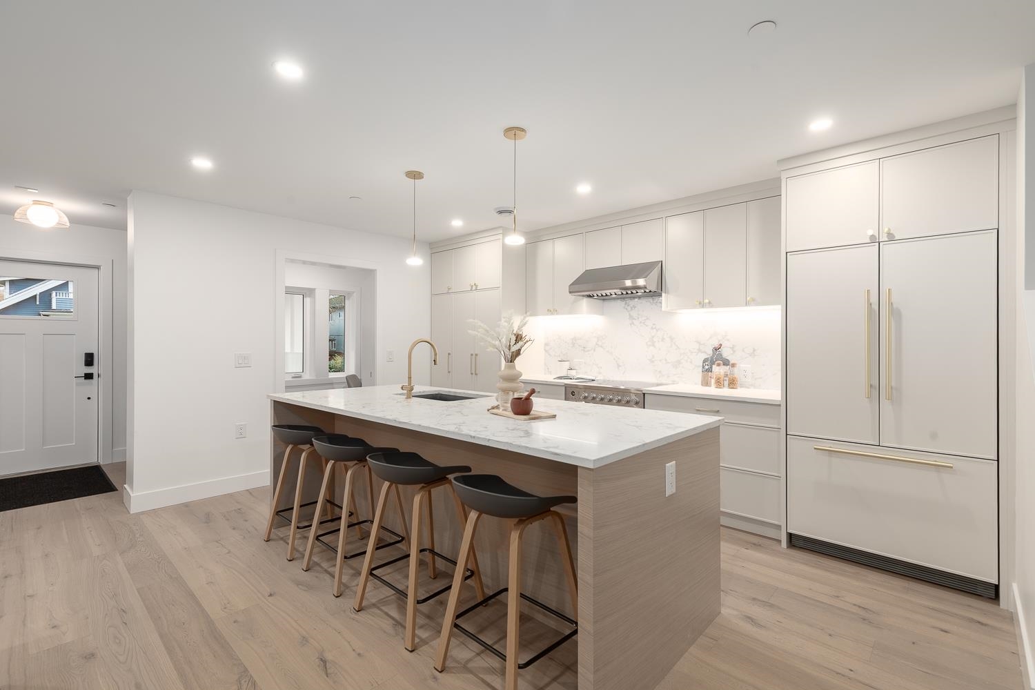Welcome home to this bright & airy 3-bedroom, 2.5-bathroom front-facing duplex that boasts a spacious and open floor plan across 2 levels! The grand main level is made up of your living, dining, bar area, office, powder bath, and chef's kitchen that features quartz countertops, Fisher & Paykel appliances including a gas stove, and ample cabinetry. Upstairs you will find vaulted ceilings, all 3 bedrooms and 2 bathrooms; including the generous primary bedroom with tons of storage and the spa-like ensuite bath...