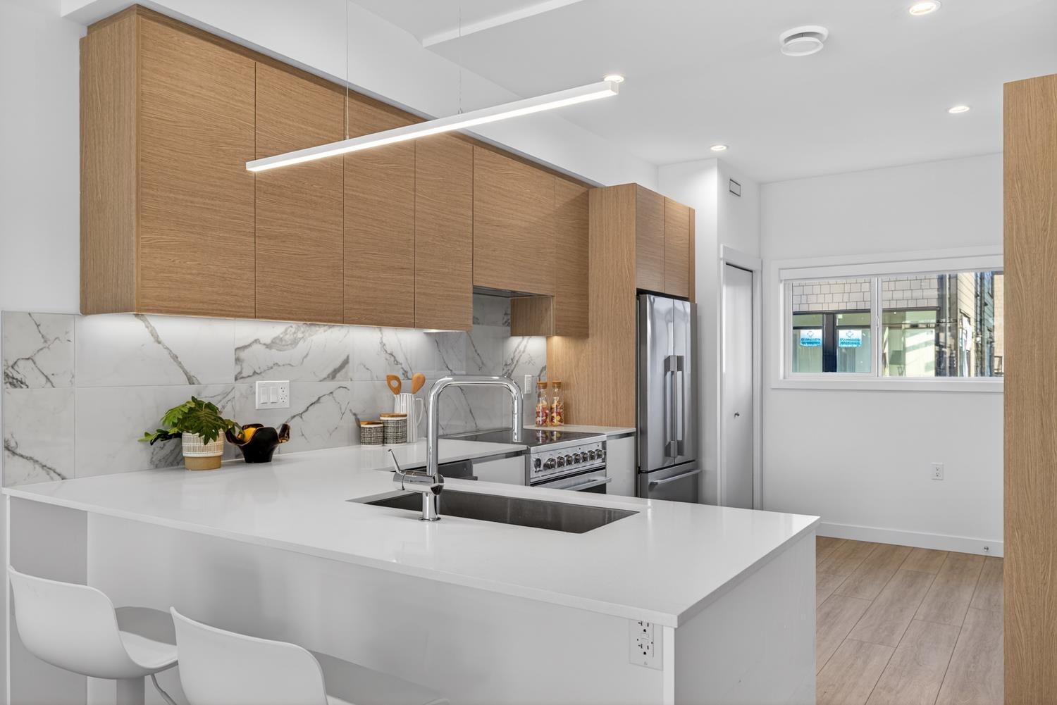 Move in Early Spring 2026! Discover Parc Thompson – Final Phase Secure a brand-new townhome with just a 5% deposit. Designed for modern living, enjoy soaring 9’ ceilings, oversized windows, and a bright open layout. The chef-inspired kitchen features quartz countertops, upgraded Fisher & Paykel appliances, soft-close cabinetry, and GROHE fixtures. Experience year-round comfort with an energy-efficient heat pump & A/C, plus Level 2–ready EV charging in the garage. This spacious 3-bedroom home offers private ...