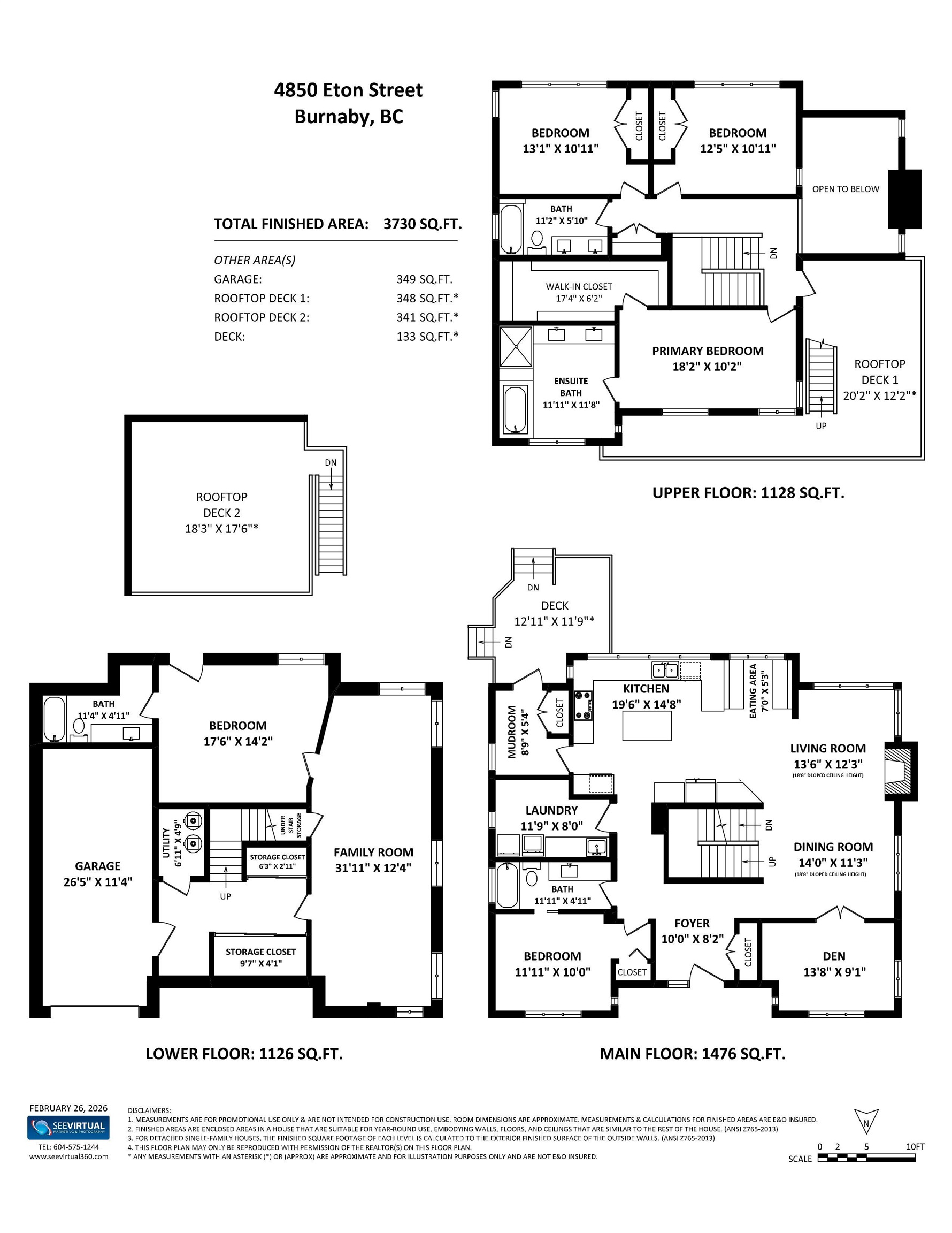 Unobstructed OCEAN, MOUNTAIN, and SUNSET VIEWS in North Burnaby! WEST COAST CONTEMPORARY STYLE custom QUALITY 3-LEVEL home. Perched in the COVETED Capitol Hill area, this 5-BED + DEN home captures stunning VIEWS from TWO ROOFTOP DECKS. The interior boasts H/W floors, radiant heat, catalytic wood-burning F/P & new QUARTZ kitchen counters. The versatile MAIN floor features a bedroom PLUS den & laundry room, while the UPPER level offers 3 bedrooms incl. a SPA-LIKE PRIMARY retreat. DOWNSTAIRS discover SUITE pot...