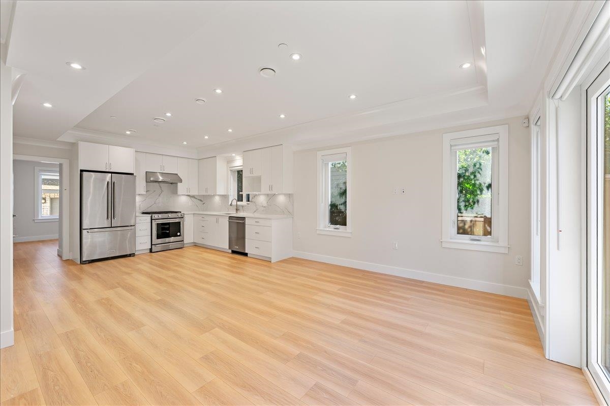 Newly built Coach house in Vancouver! This thoughtfully designed and built home is absolutely stunning. Great square footage, just under 1,400 sqft, this coach house has 4 bedrooms and 3 bathrooms. The main level has your open concept living and kitchen area and 2 bedrooms, while the third bedroom and the primary bedroom are on the top floor. The primary has its own ensuite and large patio space! The kitchen is fully equipped with stainless steel appliances, gas range, and quartz countertops and full backsp...
