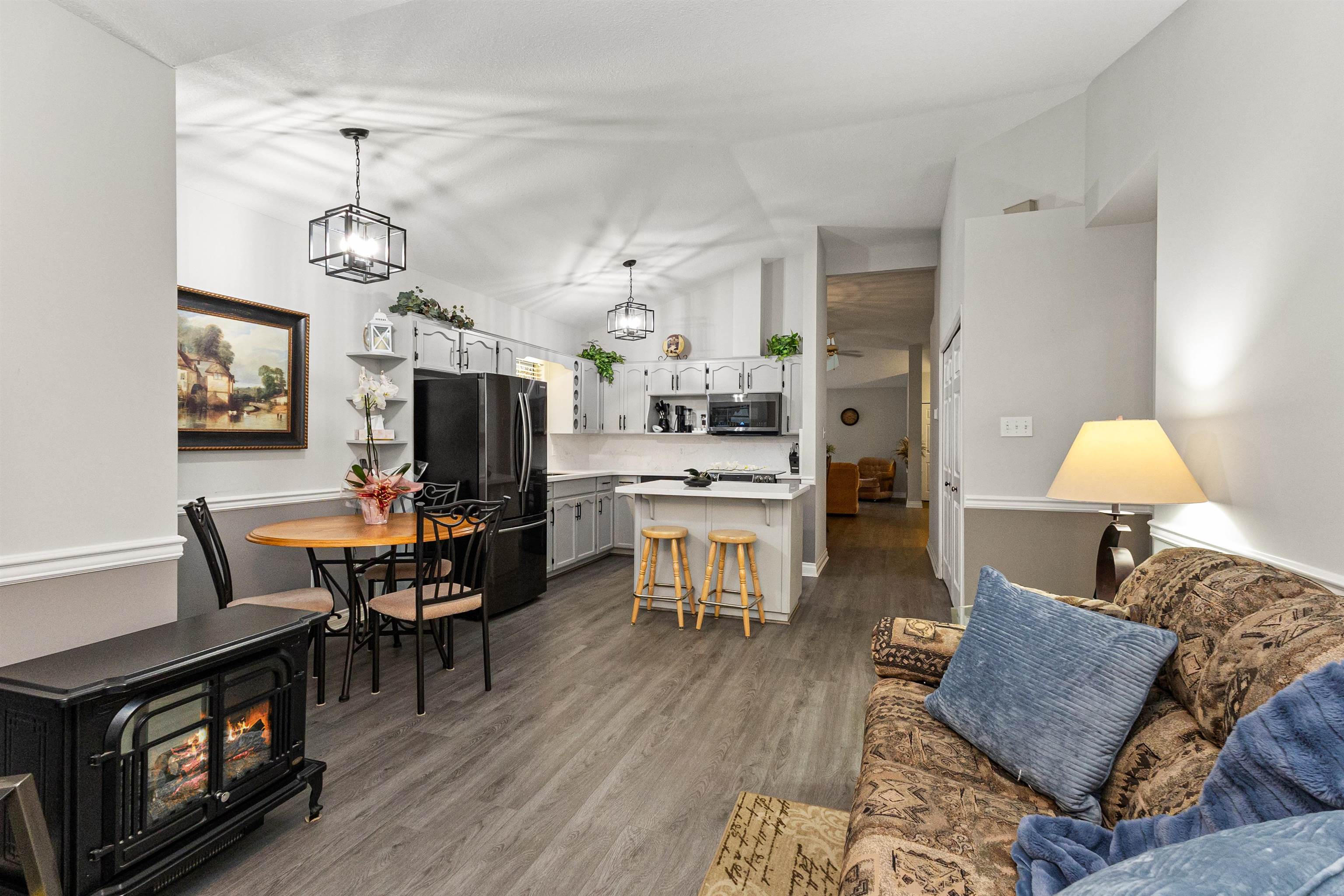 Welcome to Huntersfield Green! This gorgeous end-unit rancher townhome with double garage shows like new and is loaded with thoughtful upgrades. Located in a sought-after 55+ gated community featuring a deluxe clubhouse with pool and hot tub, this home offers the perfect blend of comfort, privacy, and lifestyle. The bright, open-concept layout features spacious living and dining areas with vaulted ceilings, transom windows, and a cozy gas fireplace. The timeless white solid oak kitchen includes an island, w...