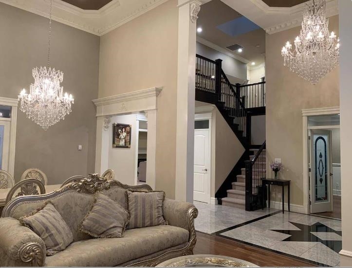 This fully furnished designer house is full of attractive features: grand foyer with high ceilings; extensive crown molding and chandeliers, hardwood floor, marble and tile floors; chef’s kitchen and Wok Kitchen with high-end stainless-steel appliances and designer cabinets, natural stone counter top, centre island; high-ceiling family room, living room, formal dining room, two fireplaces; home office; home theatre perfect for a family movie night and entertainment; whole house security system with cameras;...