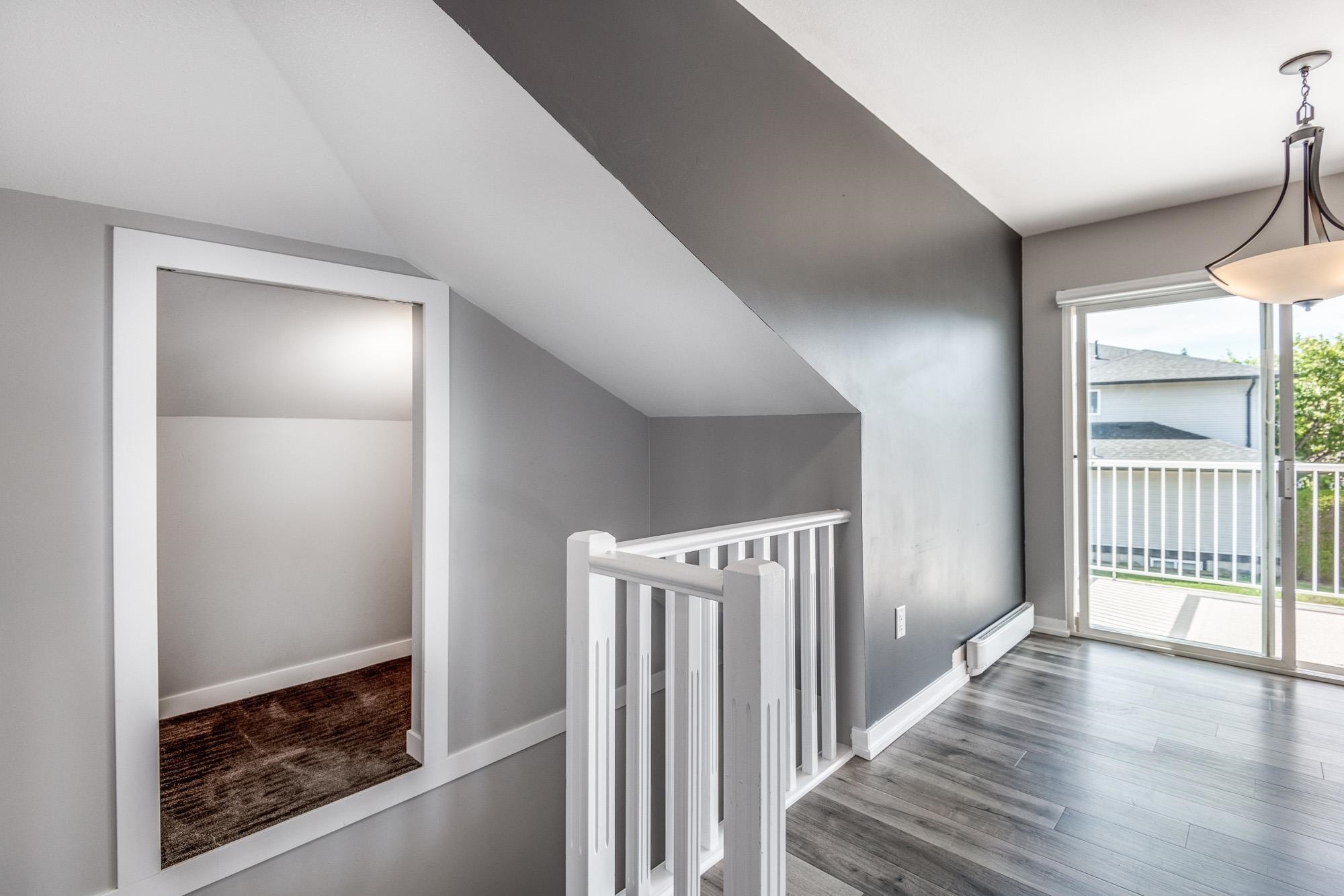 Welcome to Immel Ridge! This beautifully renovated top-floor 2 bed, 1 bath townhome faces a park and greenspace, offering a peaceful retreat with a bright, open layout and two private balconies. Freshly painted and move-in ready featuring newer appliances, new two-inch blinds throughout, and a built-in wardrobe closet organizer in the primary bedroom. New roof (2021), and new gutters (2022) mean you can move in completely worry-free. Single garage PLUS extra parking spot out front adds everyday convenience....