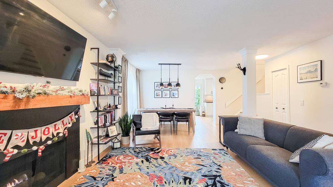 3 bed, 3 bath 2-storey end-unit townhouse featuring one of the most desirable floorplans in a family and pet-friendly community. Enjoy a private patio overlooking greenspace. Prime location close to James Kennedy Elementary, Walnut Grove Secondary, community centre, parks, shopping, and with easy highway access. Recent upgrades include laminate flooring on the main floor and stairs (Dec 2023), windows (Dec 2023), kitchen (2024), powder room (2024), primary bedroom closet (2025), and hot water tank (2026). P...