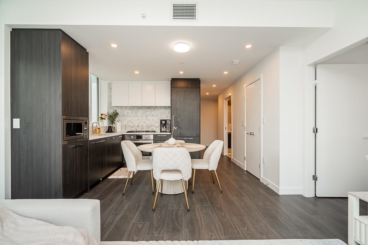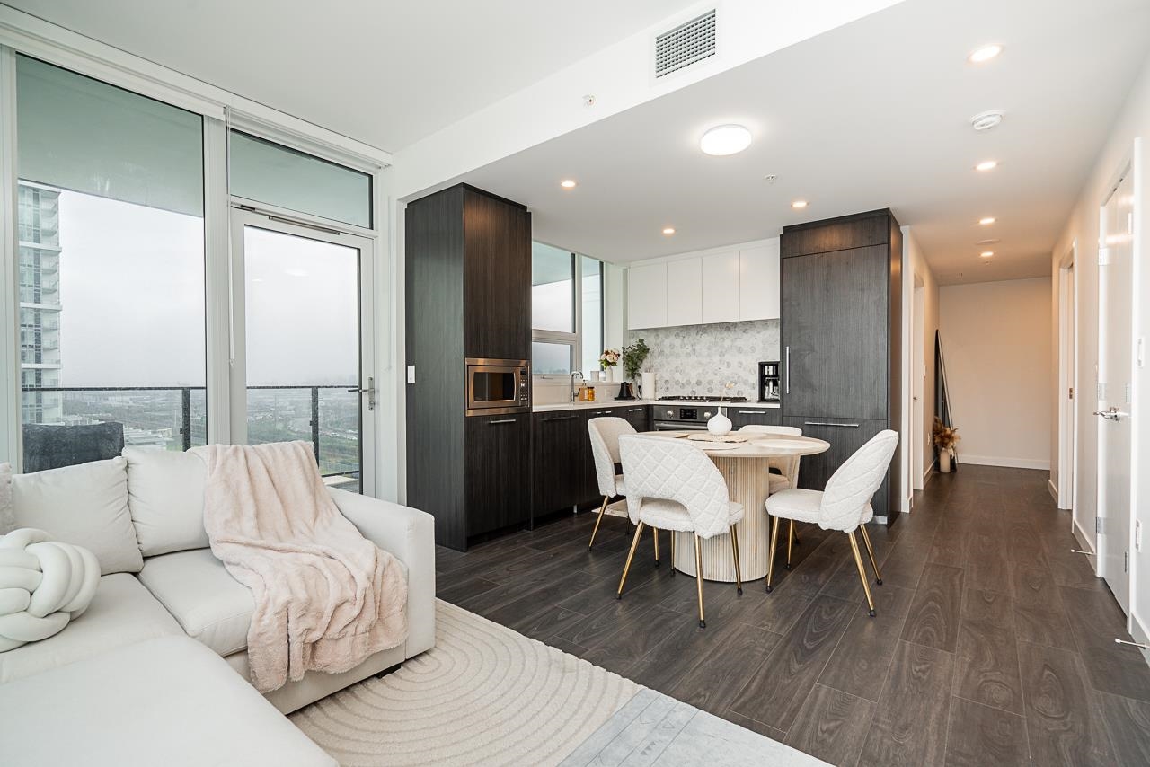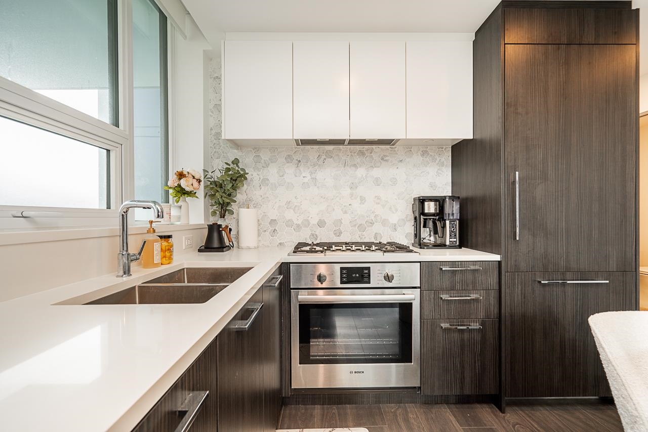 Welcome to premium Brentwood living at Tailor, built by the reputable developer Marcon. This practically new, contemporary corner 2-bedroom home features large windows that fill the space with natural light, along with an extra-large covered balcony ideal for year-round enjoyment. The thoughtfully designed interior offers 9-foot ceilings, a functional L-shaped kitchen with a window over the sink, German Bosch built-in kitchen appliances, central heating/air conditioning, and access to excellent building ame...