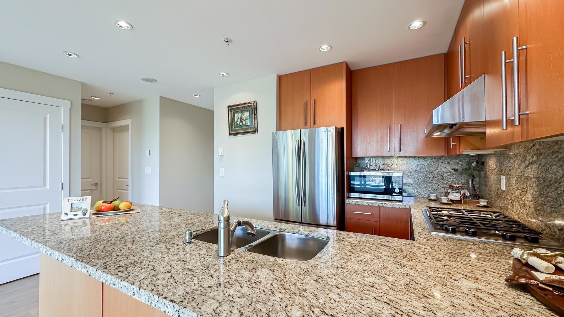 Amazing north-east CORNER unit at Promontory built by award winning Polygon. 2 bedroom + den + 2 bath with functional layout. Open concept kitchen with stainless steel appliances and granite countertops. Bright dinning and living area lead to 2 x good sized balconies with amazing view of campus, mountain and greenbelt. The home features brand new laminate flooring, floor to ceiling windows, gas fireplace, a large den that can be used as the 3rd bedroom, plus 2 x side by side parking stalls. Amenities includ...