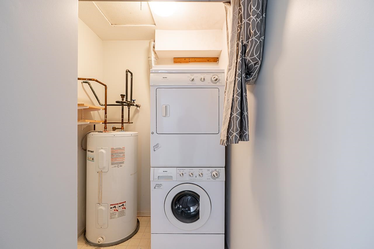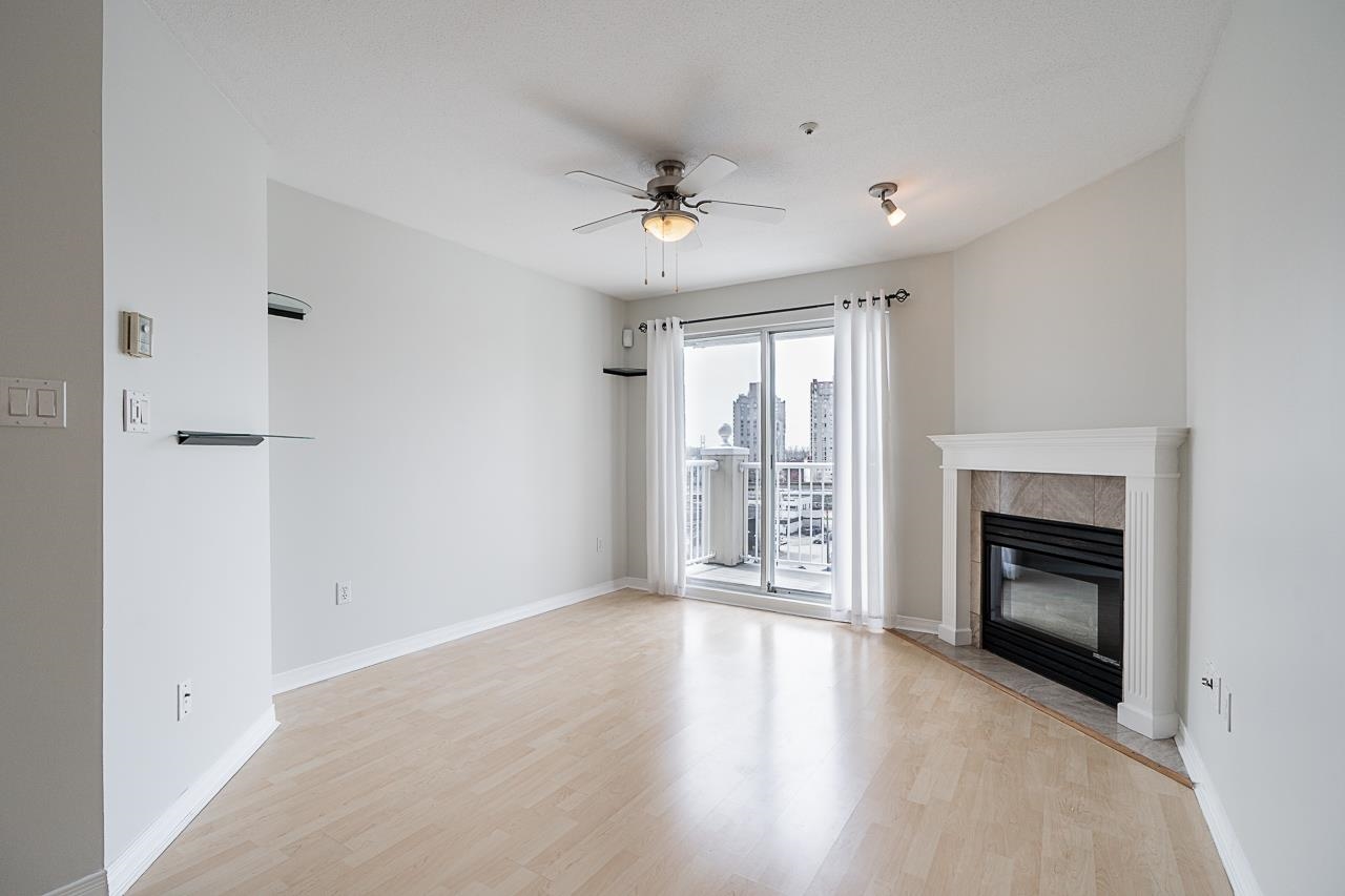 TOP FLR SPACIOUS 1 BEDRM & DEN UNIT FACING S/W W/PARTIAL VIEWS OF THE FRASER, QUAY, & BEYOND! Move-in ready; entire unit freshly painted w/brand new carpet in bedrm & den. Bright & spacious functional flr plan w/no wasted space. Kitchen opens to the dining/living area; perfect for entertaining! Lrg bedrm allows for king sized bed. The den is fair-sized allowing for multi-purpose uses. Laundry area has room for storage. Gas f/p in living rm warming you thru the cold months. Enjoy sunny morning coffee's on th...