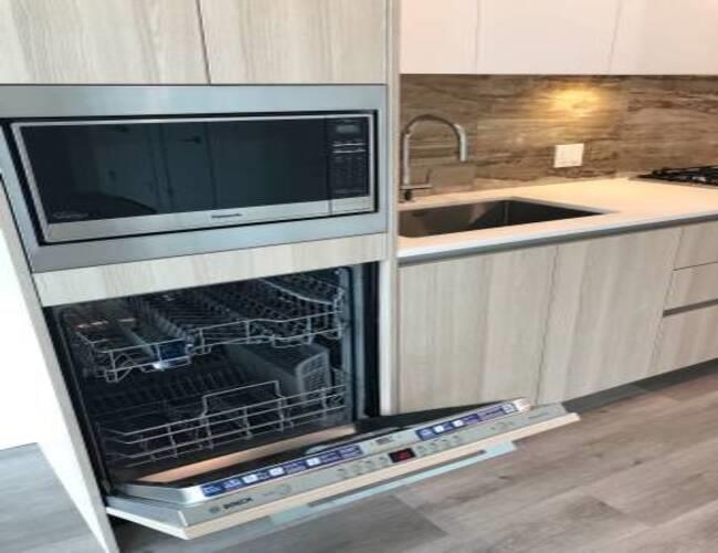 This stylish unit has high ceilings, air conditioning and gets lots of natural light. Sleek kitchen has stone counters, fridge, gas range, oven, dishwasher, and microwave. Bedroom has walk-in closet. Suite has in-suite laundry and a small outdoor area. Building has extensive common area and amenities including roof top deck with pool, and large recreation center. The location is a short walk to sky train, Winners, Save-On Foods. Brentwood Mall and provides easy access to BCIT and SFU. Cats and dogs are acce...
