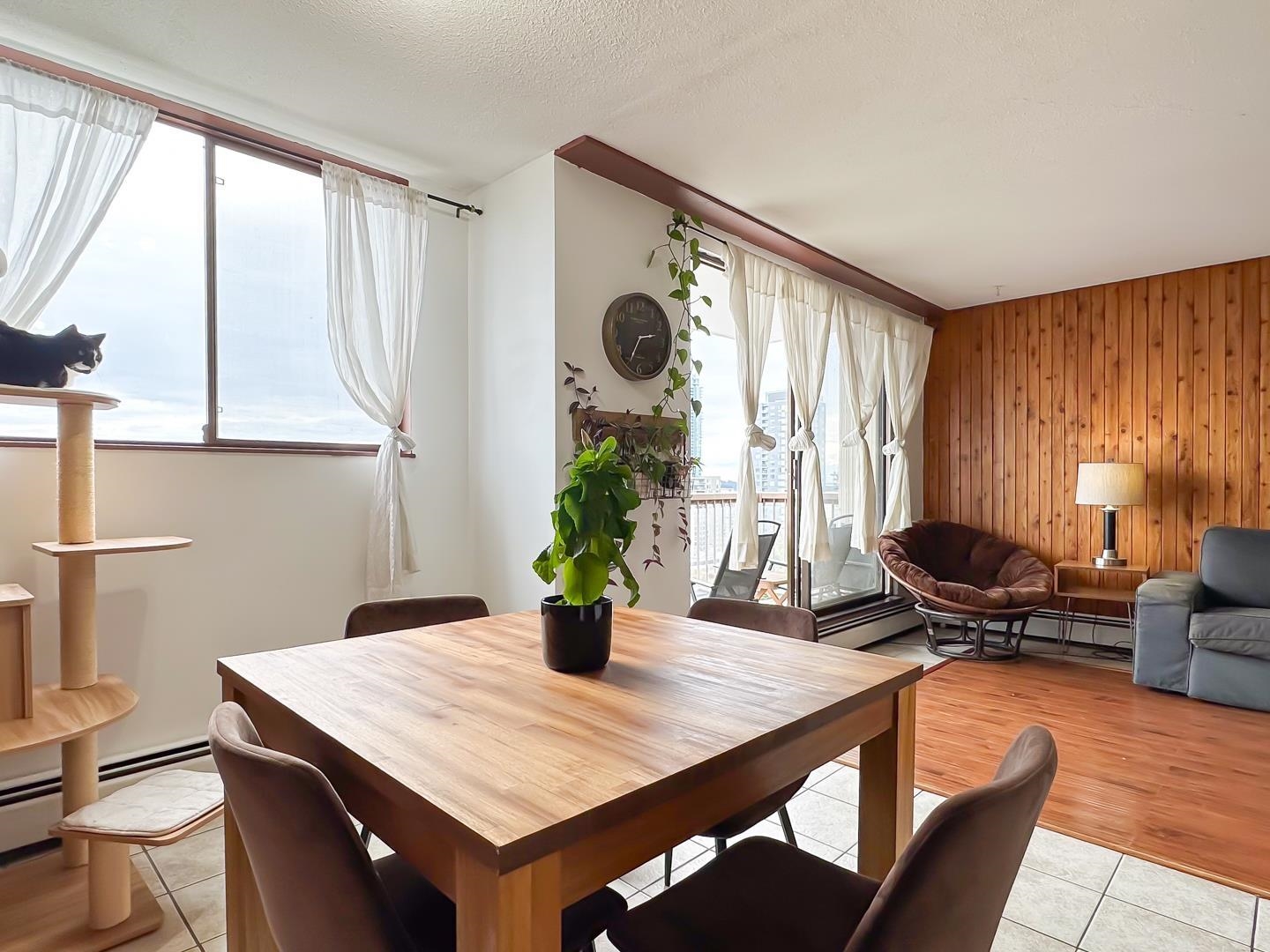 Bright, south-facing corner 2-bedroom home with sweeping river and city views! This cozy yet functional suite offers plenty of natural light, updated kitchen and bath, and stainless steel appliances—move-in ready and easy to love. Set in a well-maintained concrete high-rise with a proactive strata and extensive upgrades including security, elevators, boilers, exterior paint, deck membrane, and refreshed tennis court and courtyard. Heat included, plus underground parking and a large storage locker. Pet-frien...