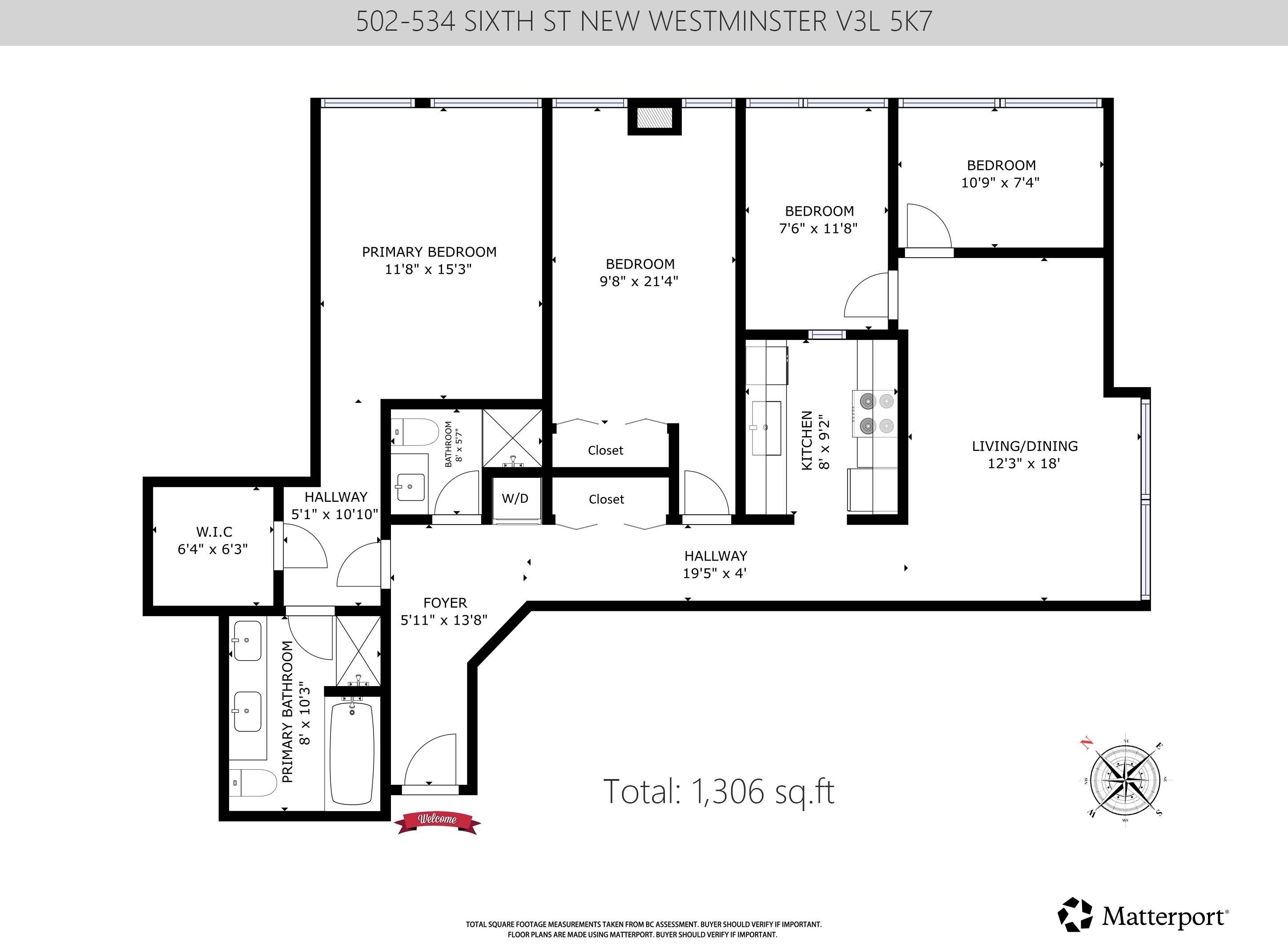 Location! Heart of New Westminster commercial center with all the shopping just right under the building or cross the street, 5th floor in this Concrete building, North East Corner Unit very Bright with Morning sun and early afternoon sun very comfort but not hot, 1306 Sqft interior very spacious ,all laminate floor and tiles, nice clean and easy to maintain, 4 bedroom and 2 bathroom, 2 parking side by side and 1 locker on the level(5th floor) which is rare and convenient . Building has Rooftop playgroun...
