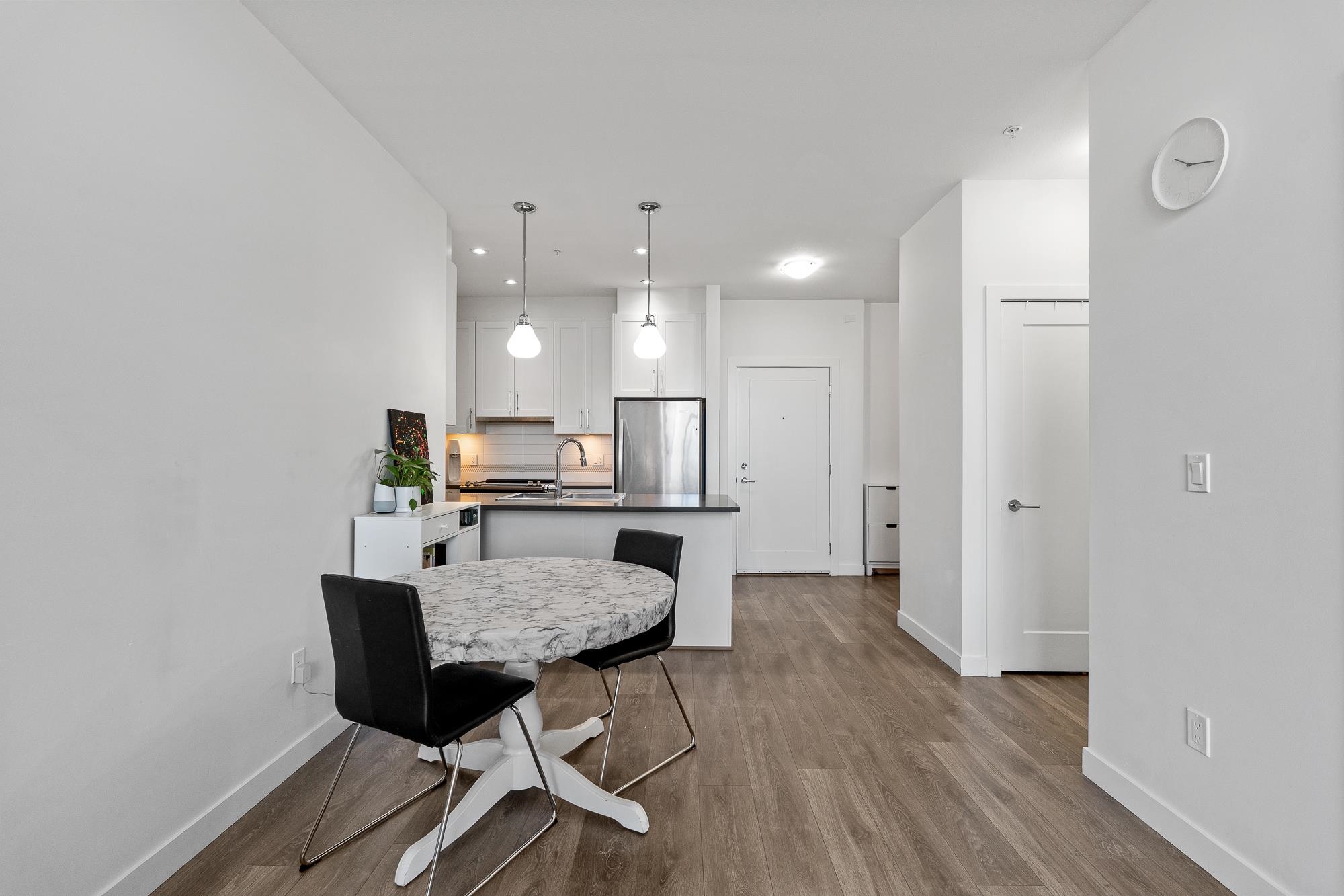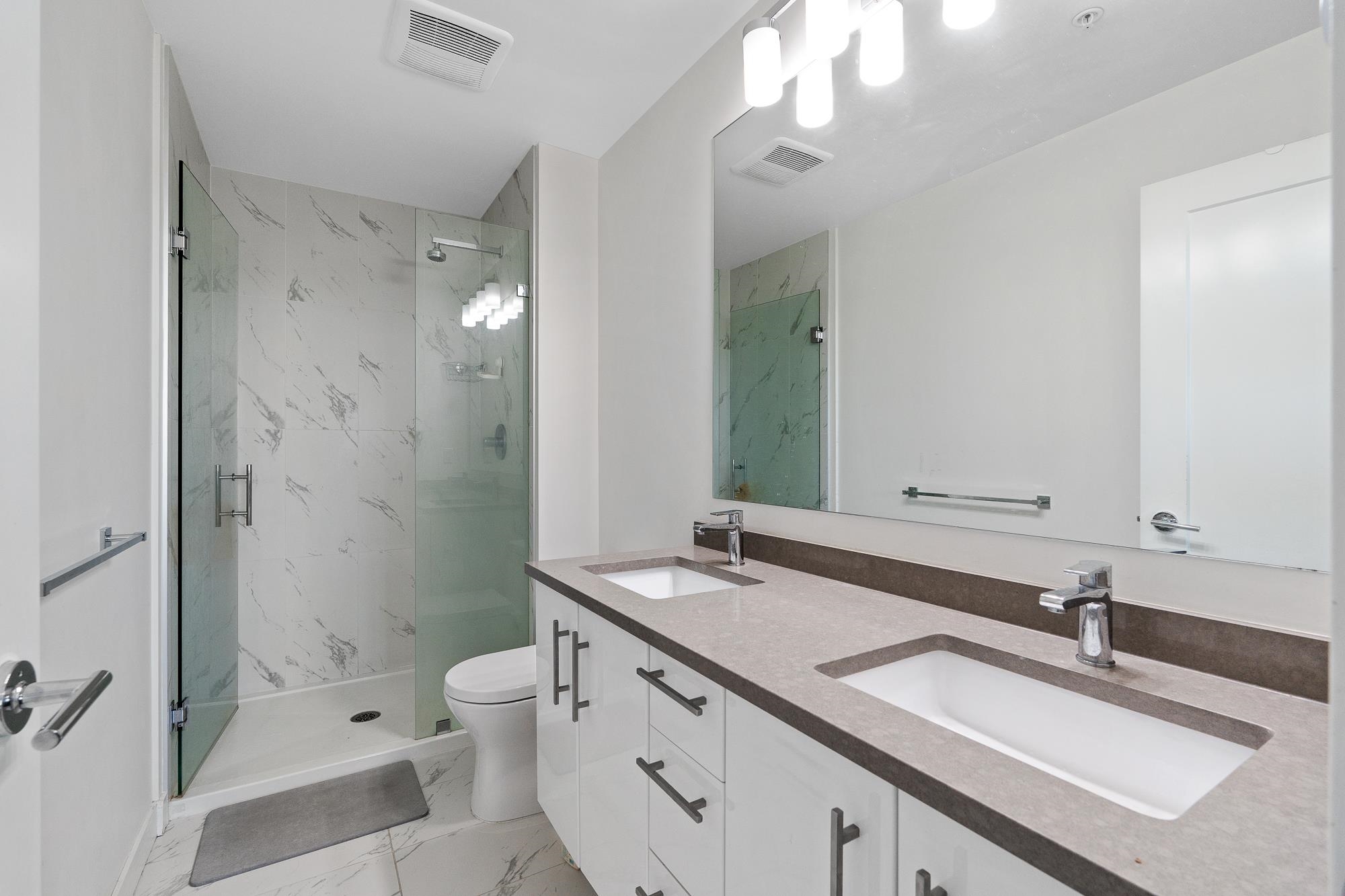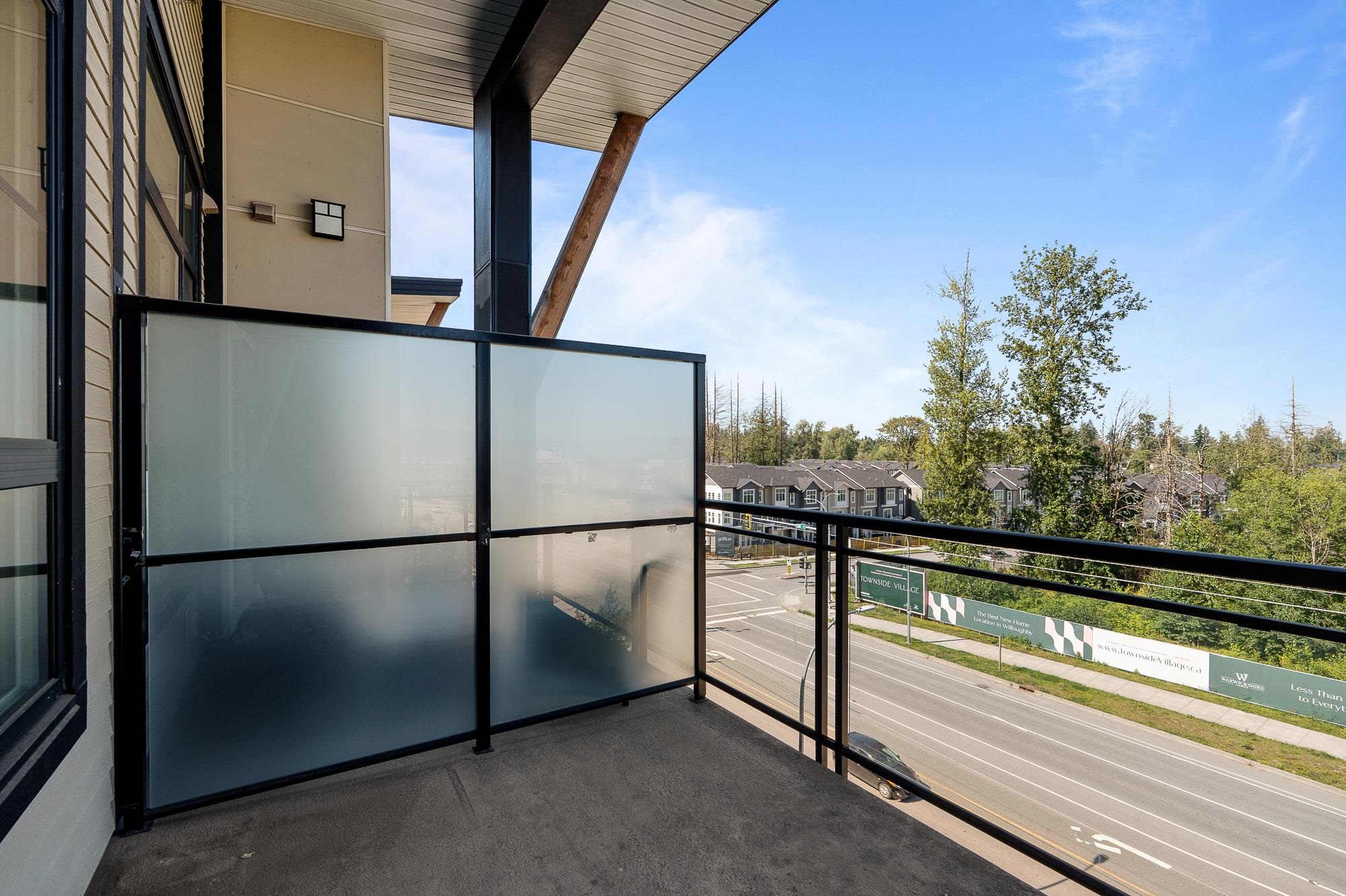 Top floor unit at The WEX! This 2 bed, 2 bath + den home offers a functional layout with modern design. Features a stylish island kitchen with quartz counters, floor-to-ceiling cabinets & S/S appliances, spacious living/dining area—ideal for entertaining. Large primary bedroom with walk-in shower. 1 parking and 1 storage locker included. Steps to Willoughby Town Centre, transit, parks & shops.