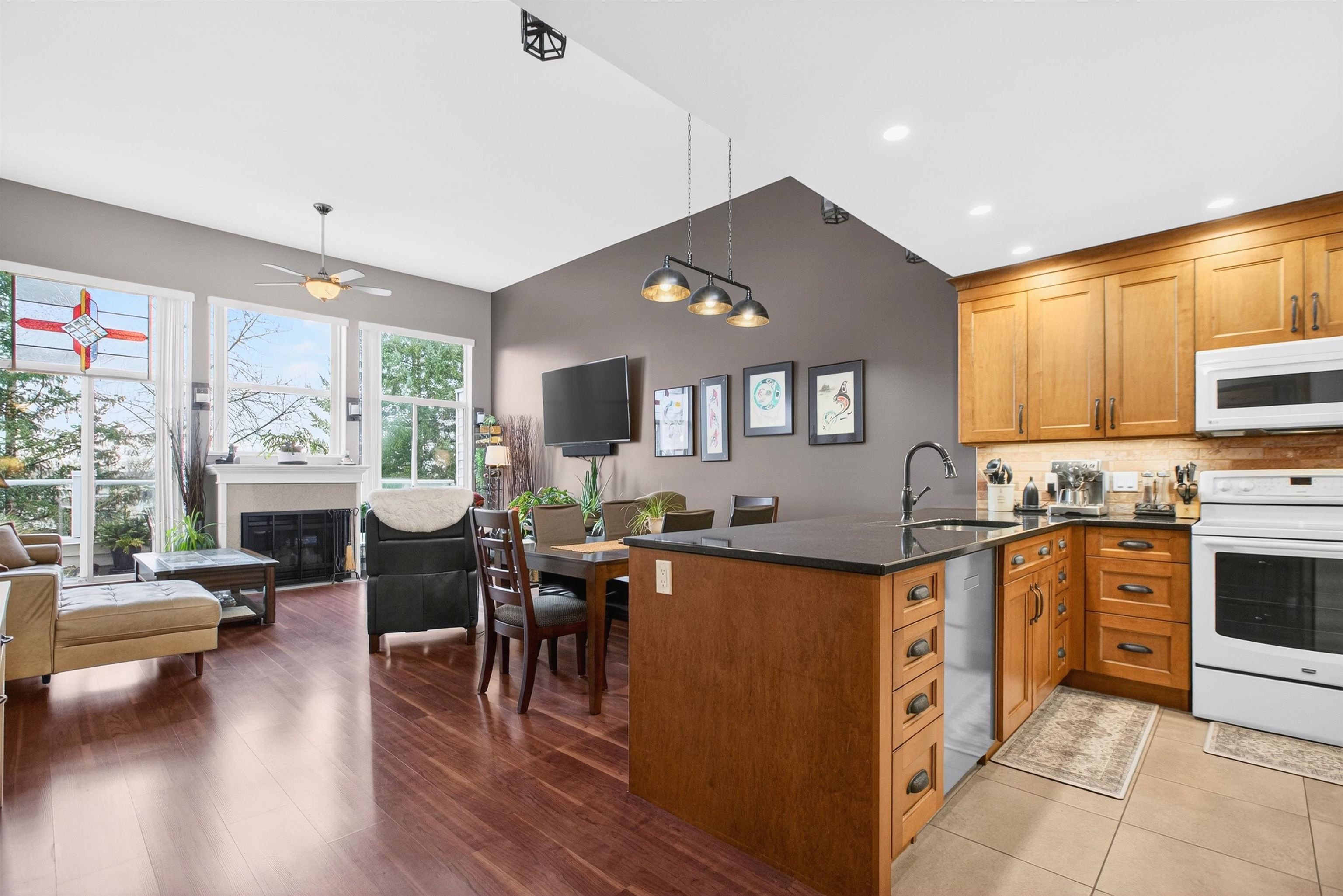 Welcome to Hillcrest, a desirable 55+ community in the heart of Maple Ridge, known for its friendly community feel & beautifully landscaped grounds. This top-floor corner penthouse offers 1,153 sq. ft. of bright, spacious living with seasonal views of Mount Baker & impressive 12’ vaulted ceilings in the living, dining room & both bedrooms. Enjoy a cozy gas fireplace, updated kitchen with maple cabinets, quartz countertops, plus year-round comfort with a mini-split system. The primary bedroom features a walk...