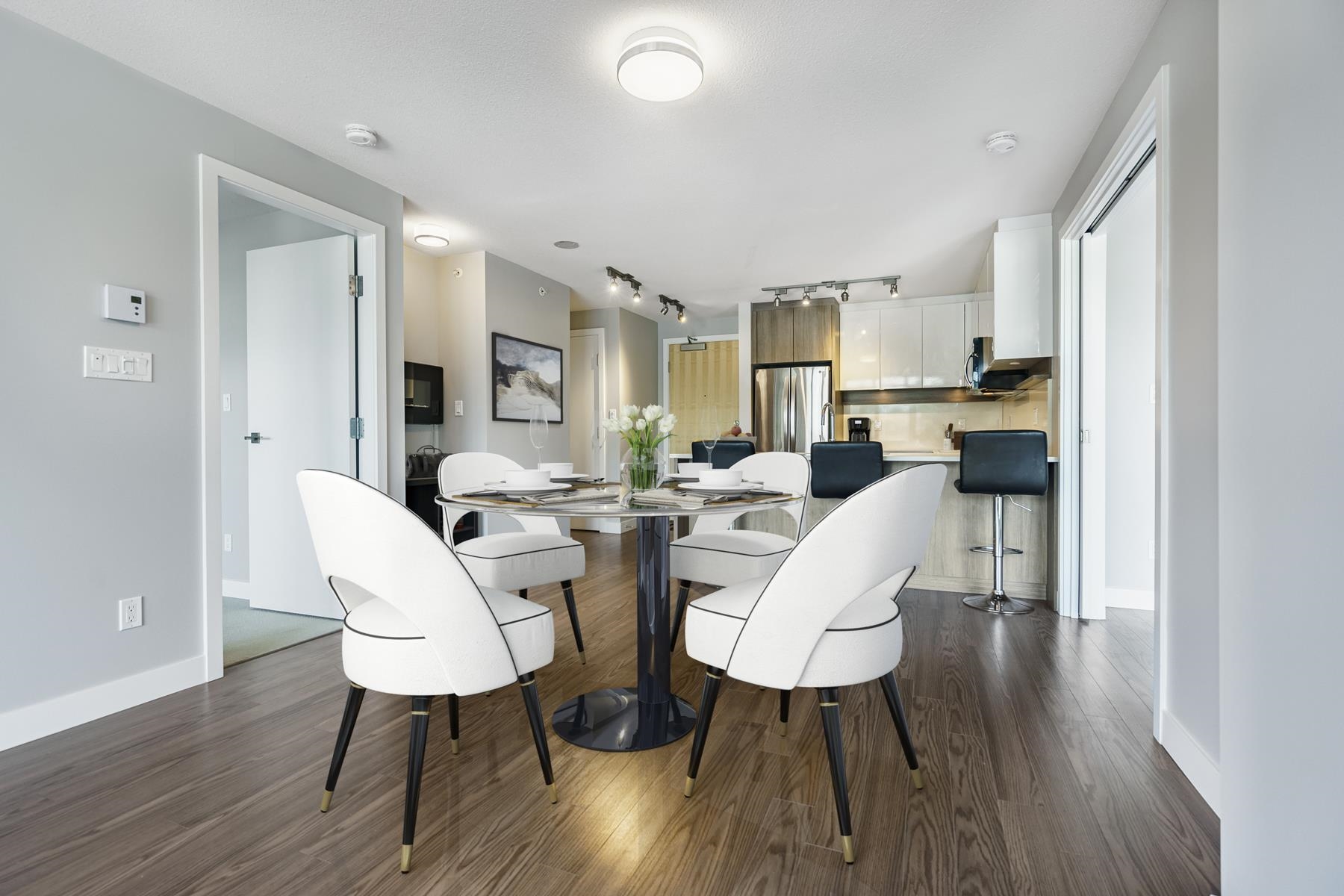 LOCATION! LOCATION! LOCATION! Walkable to everything, this 770 sqft 2-bedroom home at The Austin offers style, comfort, and convenience. Enjoy high-end finishings throughout with a spacious, open layout featuring floor-to-ceiling windows, a bright living room with access to a private patio, and a CHEF-INSPIRED kitchen with quartz counters, stainless steel appliances, double undermount sink, and breakfast bar seating for three. Two good-sized bedrooms are on opposite sides of the home, with a 4-piece cheater...