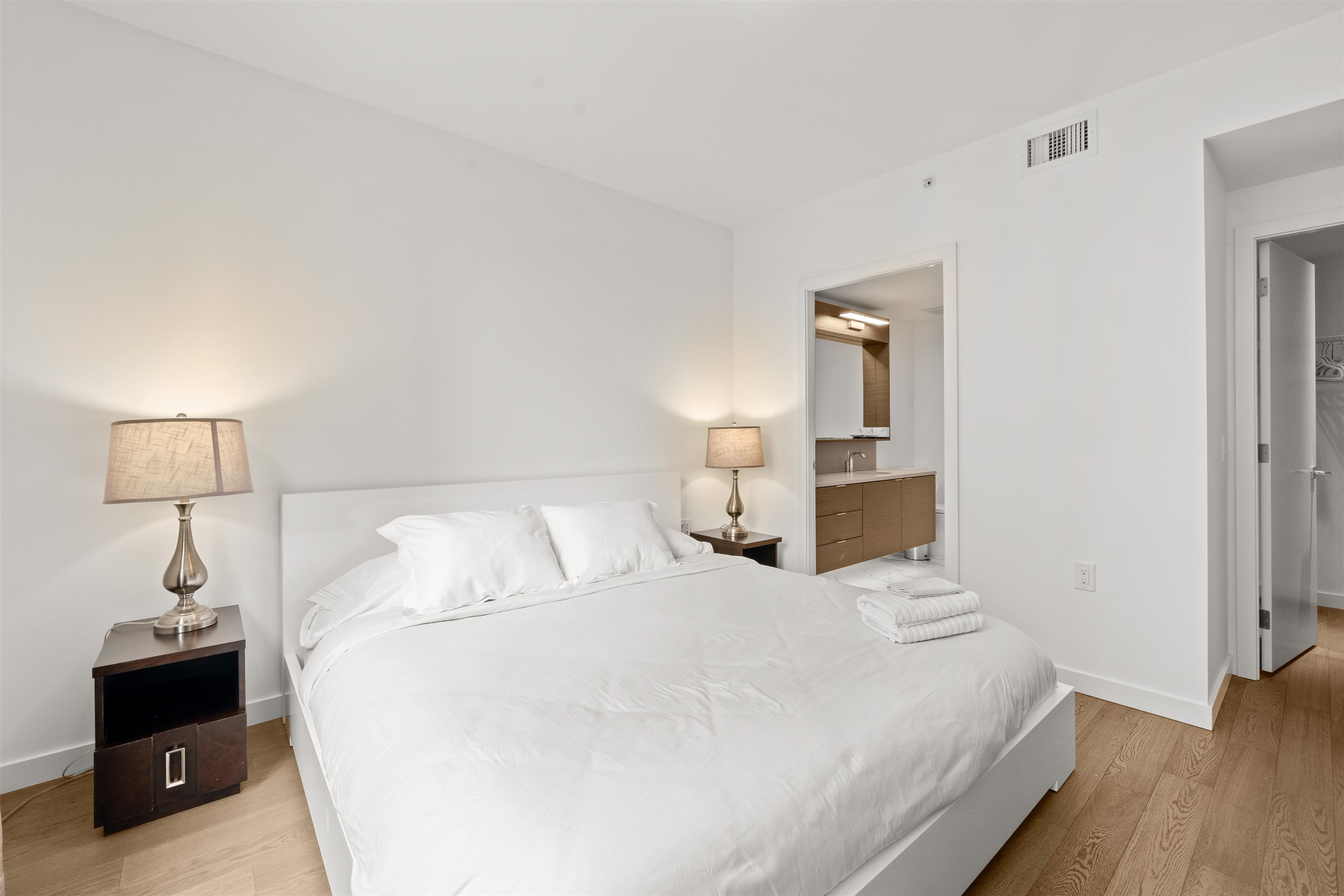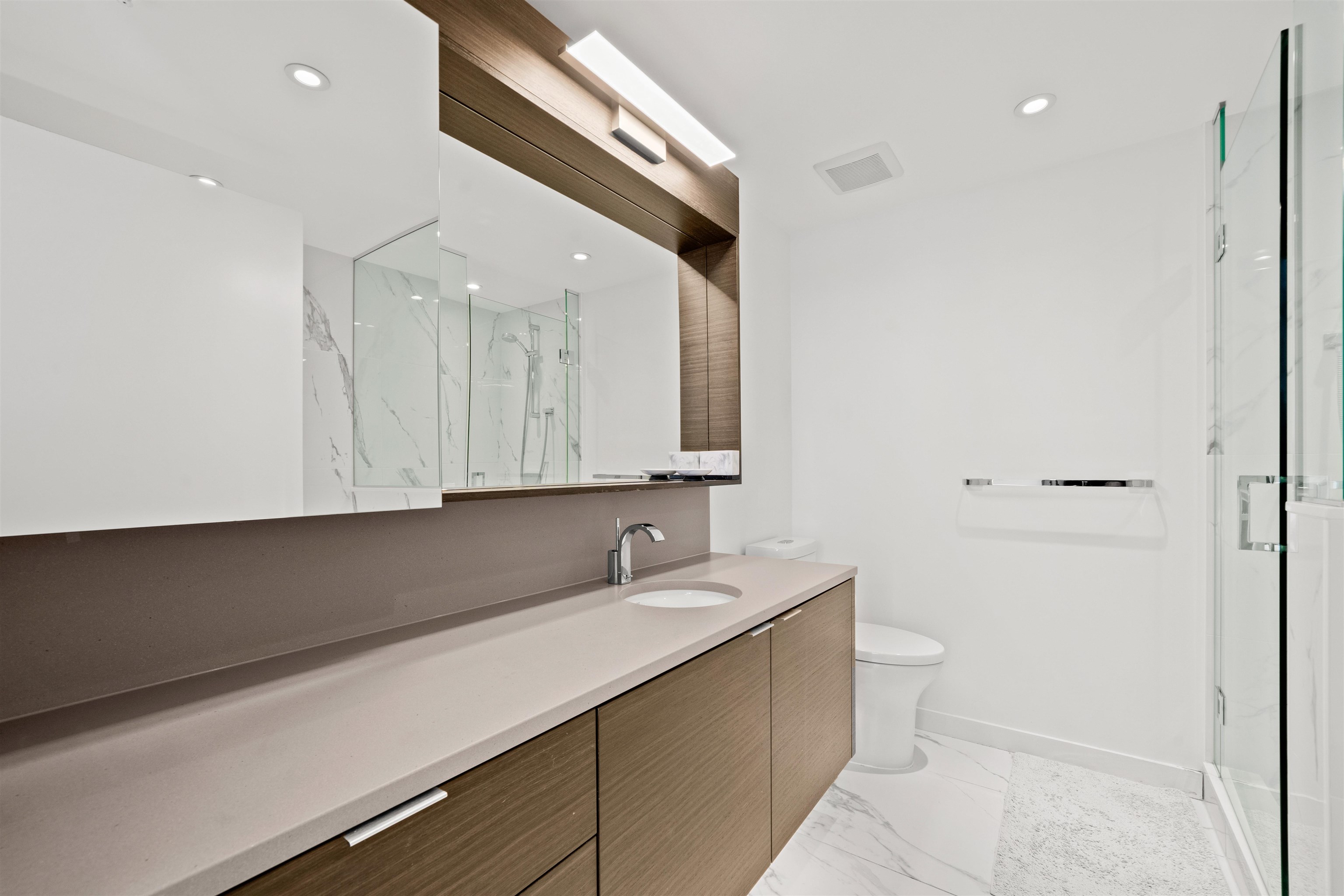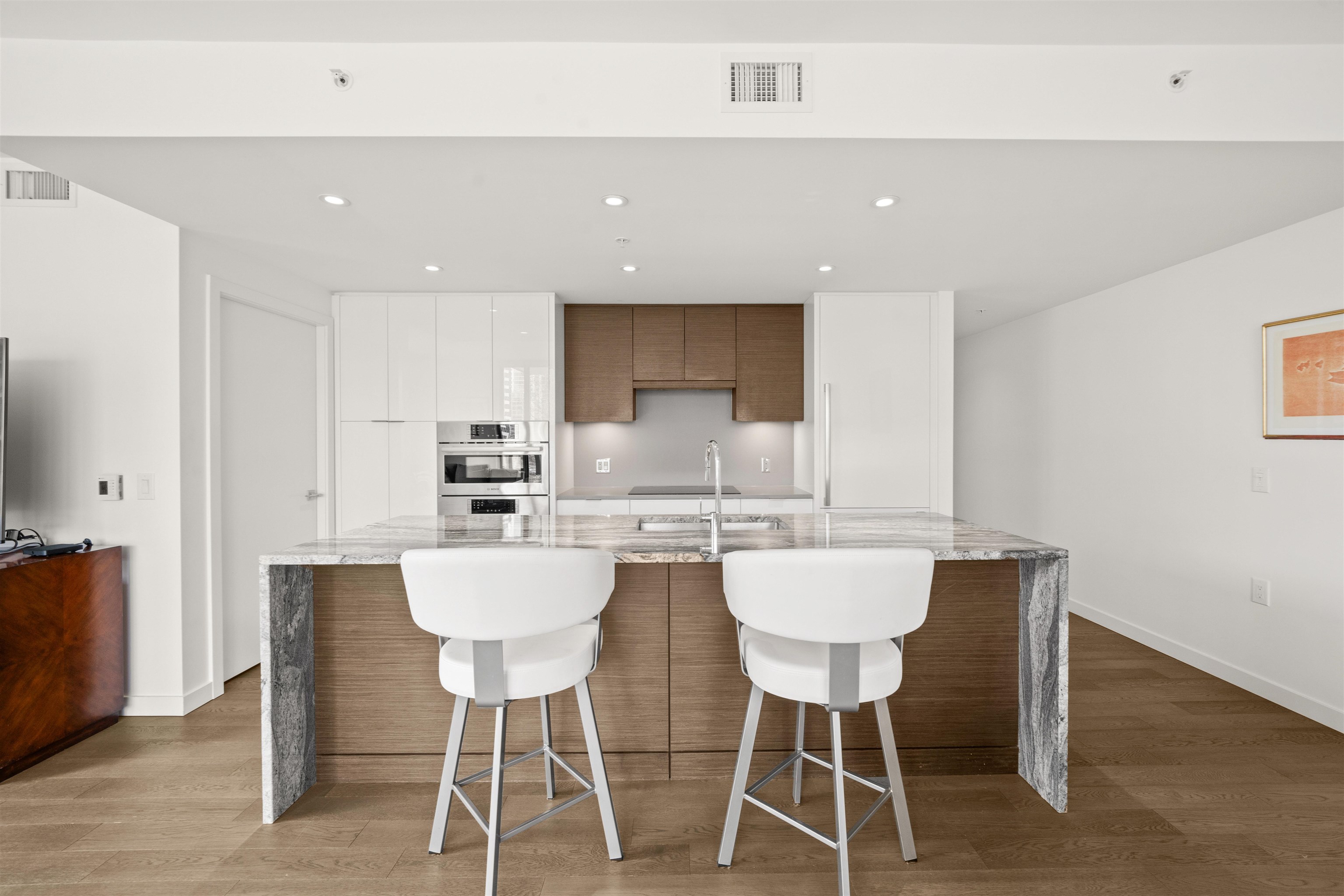 Welcome to Navio North, where elegance meets the vibrance of False Creek. This stunning 2 bed, 2 bath corner home boasts 1,320 total Sq. Ft. with over 1,200 Sq. Ft. of sophisticated interior living and a 115 Sq. Ft. of exterior balcony highlighting breathtaking views. High-end finishes include hardwood, a chef’s kitchen with quartz counters & backsplash, granite island, wood veneer & high-gloss cabinetry, Bosch appliance package and ample storage. Spa-inspired baths offer Carrera tile flooring with Nuheat, ...
