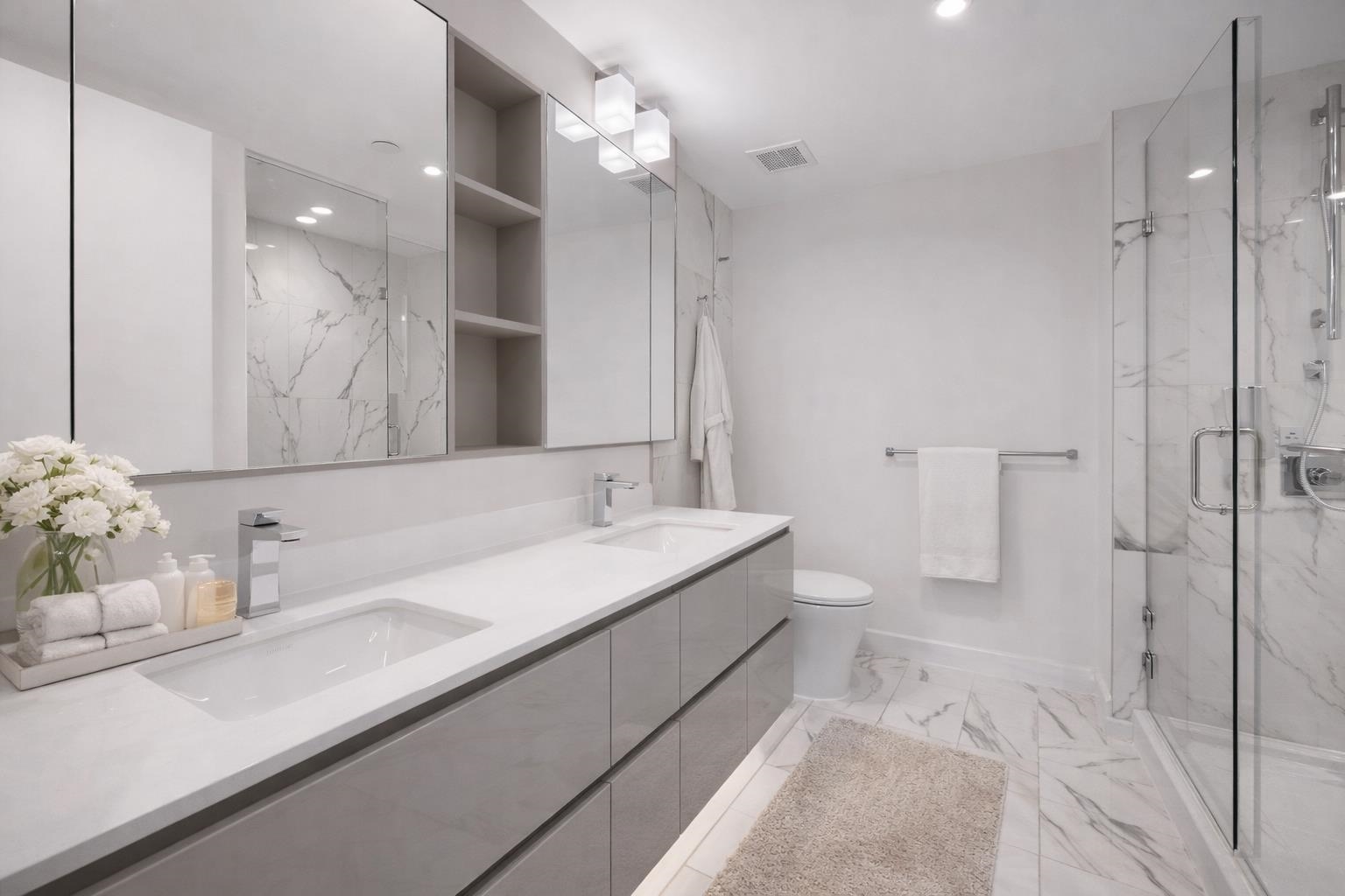 Introducing an exceptional residence at SOLO District 3, where refined design meets urban sophistication. This meticulously crafted 2 Bedroom, 2 Bathroom home offers expansive open concept living, highlighted by a thoughtfully curated interior and a highly desirable Southwest exposure. The gourmet kitchen is appointed with premium Bosch appliances, sleek cabinetry, and an elegant integrated design that anchors the generous living and dining space. Both bathrooms feature contemporary floating cabinet and mod...
