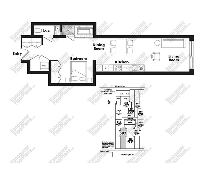 If viewing on Zillow please email/text agent directly, we do not receive Zillow inquiries. Live in the "Terminus" building located in the popular central Gastown area, a unique 5th floor suite within an award winning heritage conversion by the Salient Group which features many extra finishing touches that create a unique living space for a tenant to enjoy. 744 sq ft includes a spacious open concept floor plan, modern kitchen with glass cook top, stainless steel counters and backsplash, deep stainless stee...