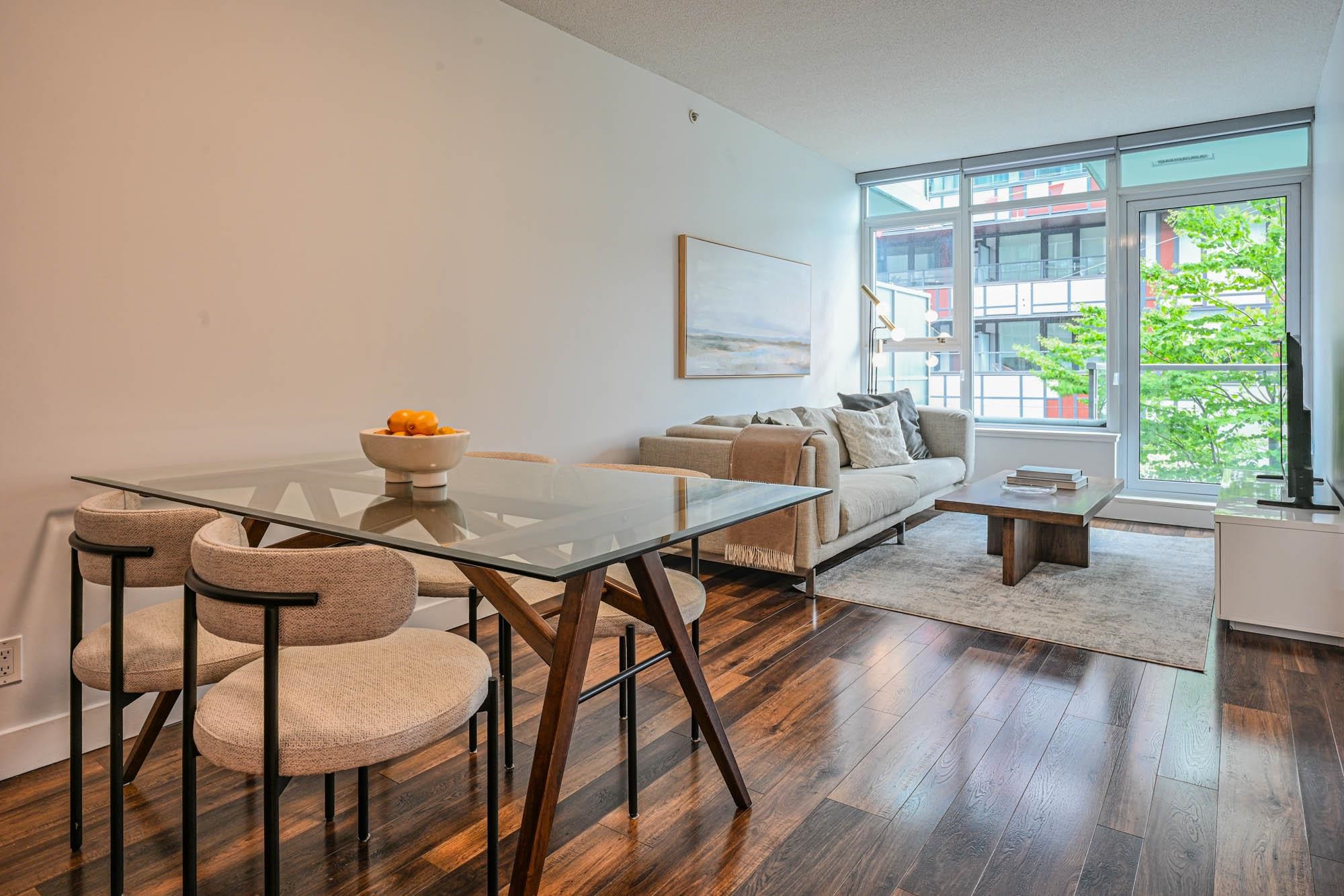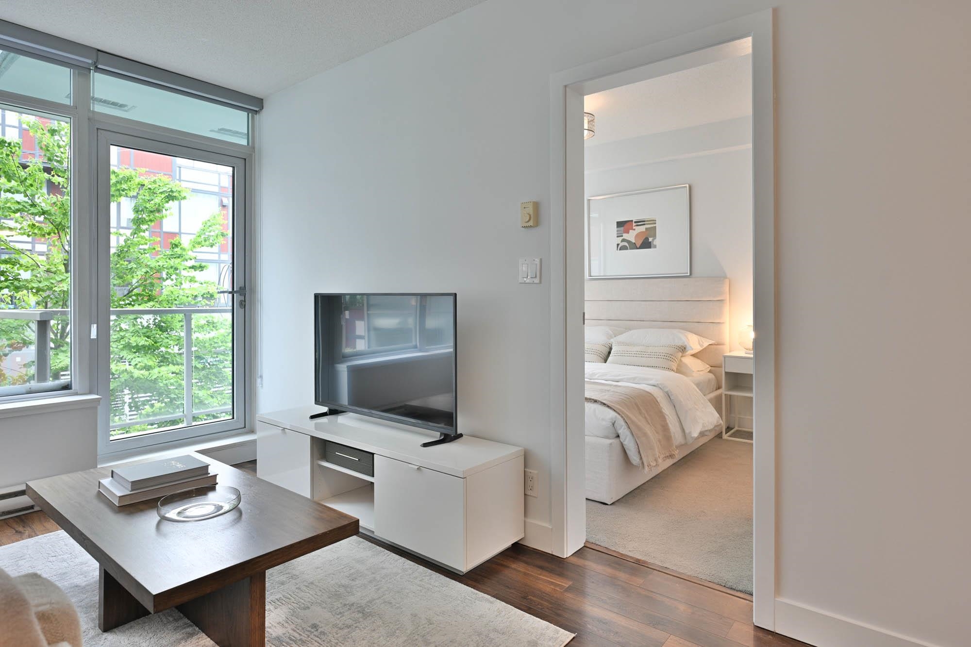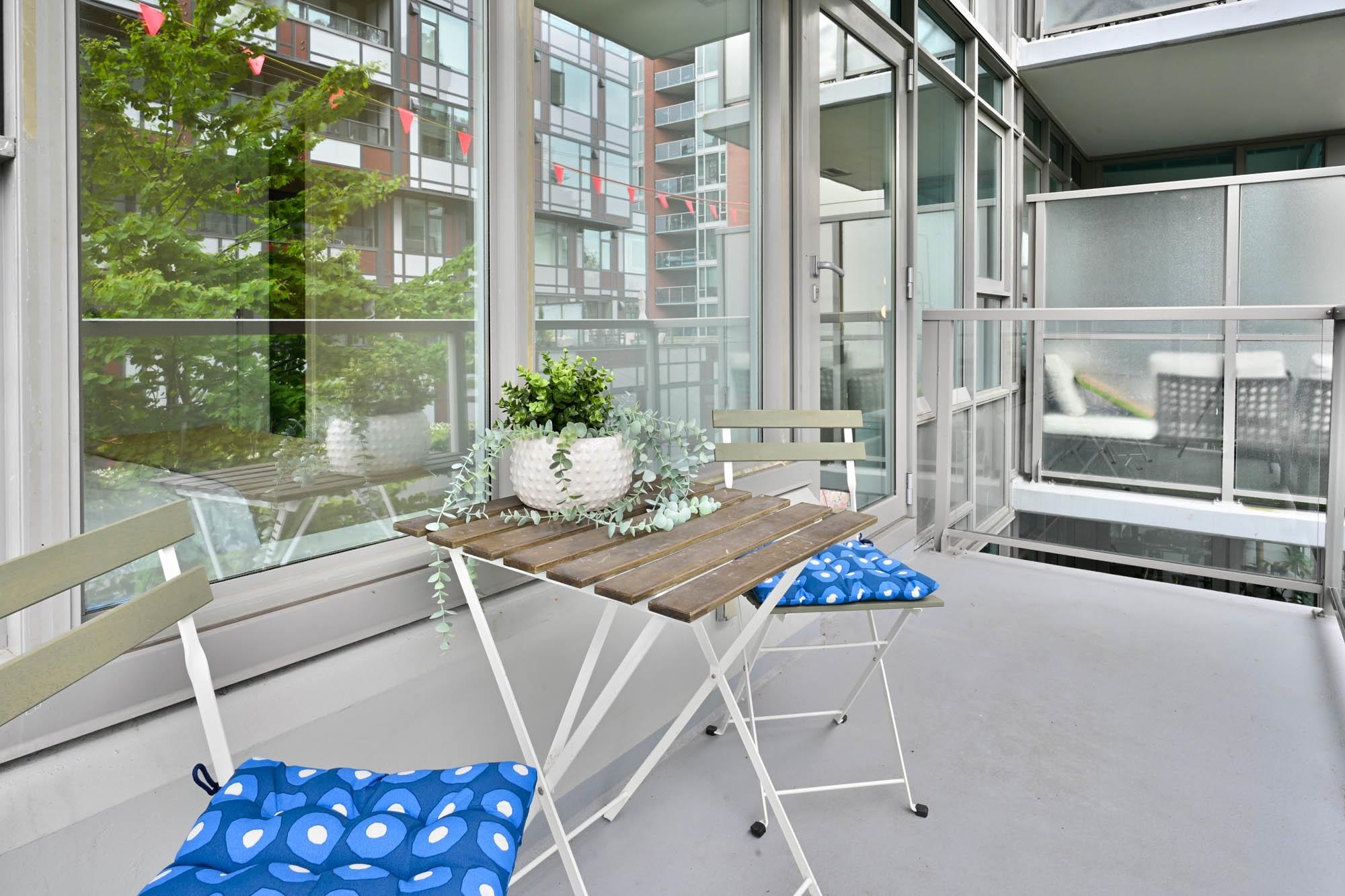 One bed + generous den in District, tucked into the community of Mt Pleasant, this concrete building and neighbourhood have much to offer! Over height ceilings, st/st appliances and quartz countertops in the kitchen. Bedroom w/ large walk in closet can accommodate clothing for 2. Lg den/flex space, perfect for home office or secondary seating area. Home has been freshly painted and is turn key ready. Large outdoor patio space for entertaining. Building amenities include two rooftop decks with BBQs, firepla...