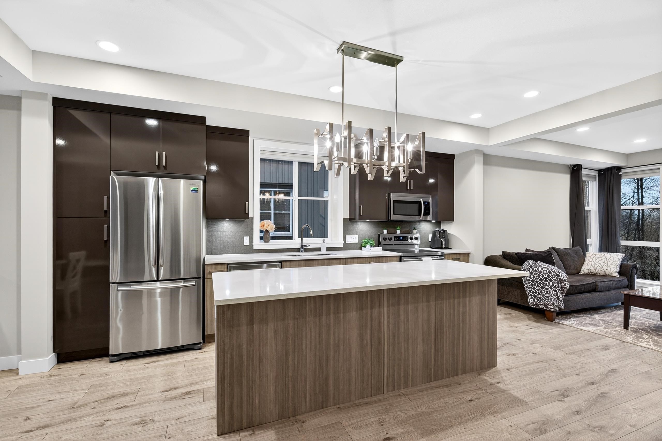 Welcome to this well cared for, 8 year old corner unit in Midtown with all the upgrades done. Stone countertops throughout, HW on demand, Central AC, privacy blinds, 12' vaulted ceiling in the master bedroom, double vanity in the Master bath, massive kitchen island, lots of cupboards, open concept living on main floor with 9' ceilings, large rec room & bathroom below, central vac & brand new high end Bosch dishwasher. Best location in the complex! Flex room below could be a 4th bedroom! Fenced back yard & ...