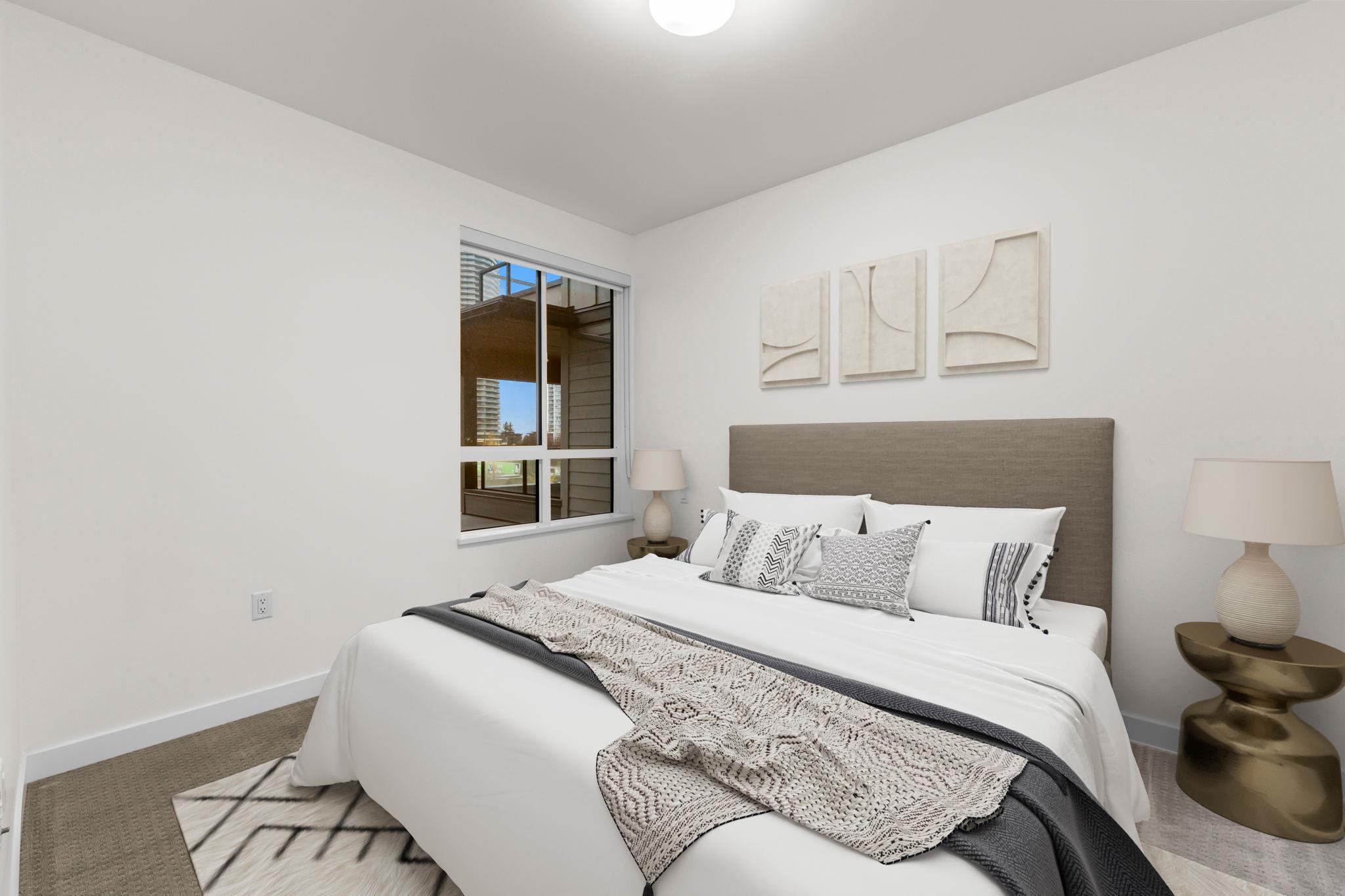 Experience modern elegance at Cedar Creek! This 2 bed 2 bath by the renowned Ledingham McAllister features 9 ft ceilings throughout. This floorplan offers optimal privacy with bedrooms on opposite sides, ideal for both families and professionals. Cedar Creek boasts exceptional amenities including fitness centre, guest suite, car wash bay, bicycle repair station, playground, and community garden. 1 parking and storage. Pets and rentals allowed. Unmatched location, near Edmonds SkyTrain Station and minutes to...
