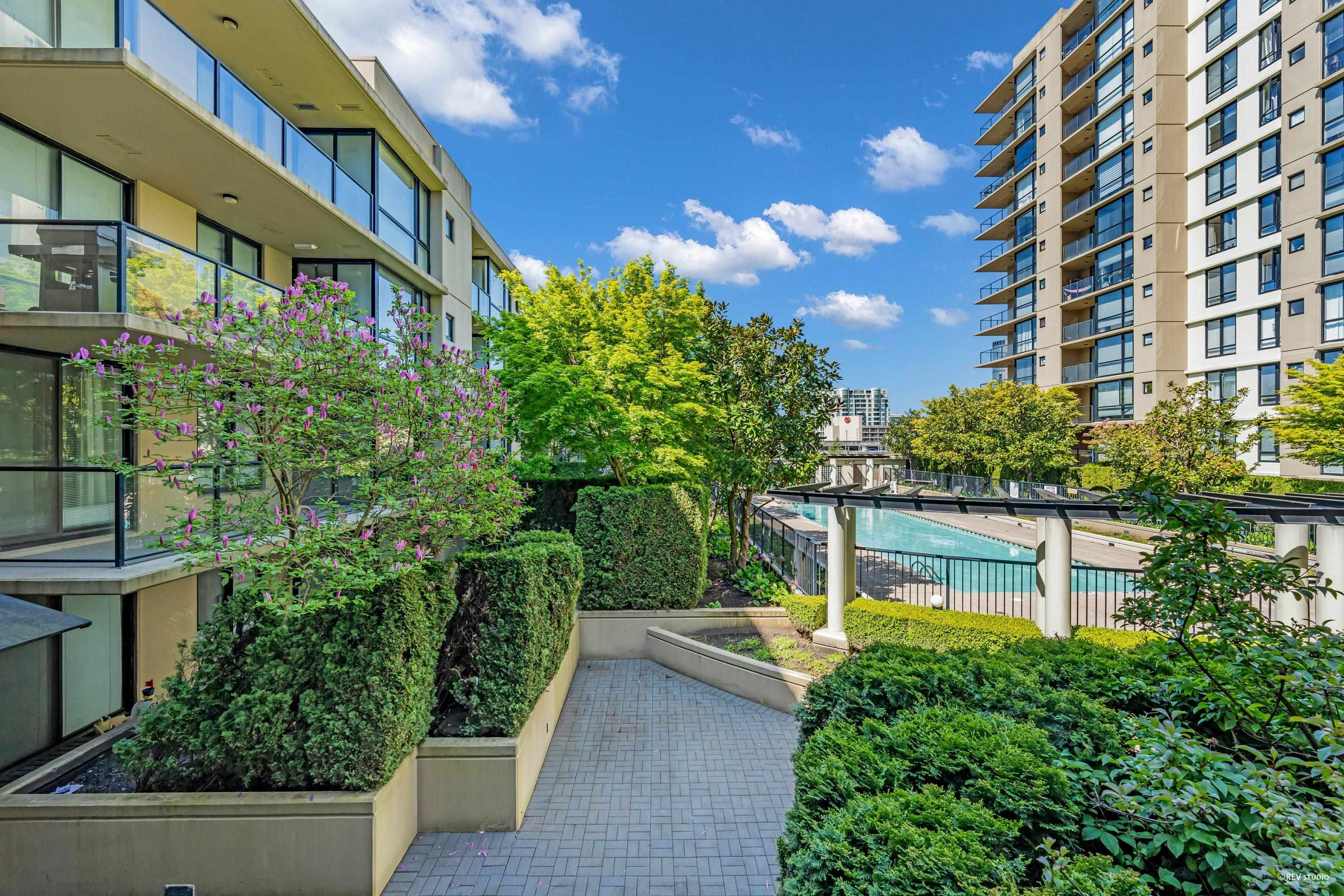 "THE CAPRI" located in the heart of Richmond, the most desirable area, concrete building, quality built by ONNI Group. GARDEN / amenity level with 300ft outdoor patio (north side, no heat), open concept, bright spacious layout with ton of nature light, living room flow nicely with the dinning room and kitchen. Amenites - outdoor pool, gym, guest suite, hot tub, sauna. Min Walks to Richmond Centre, Lansdowne Mall, Minoru Park, skytrain station, recreations, restaurants, Richmond Central Library. Perfect "DRE...