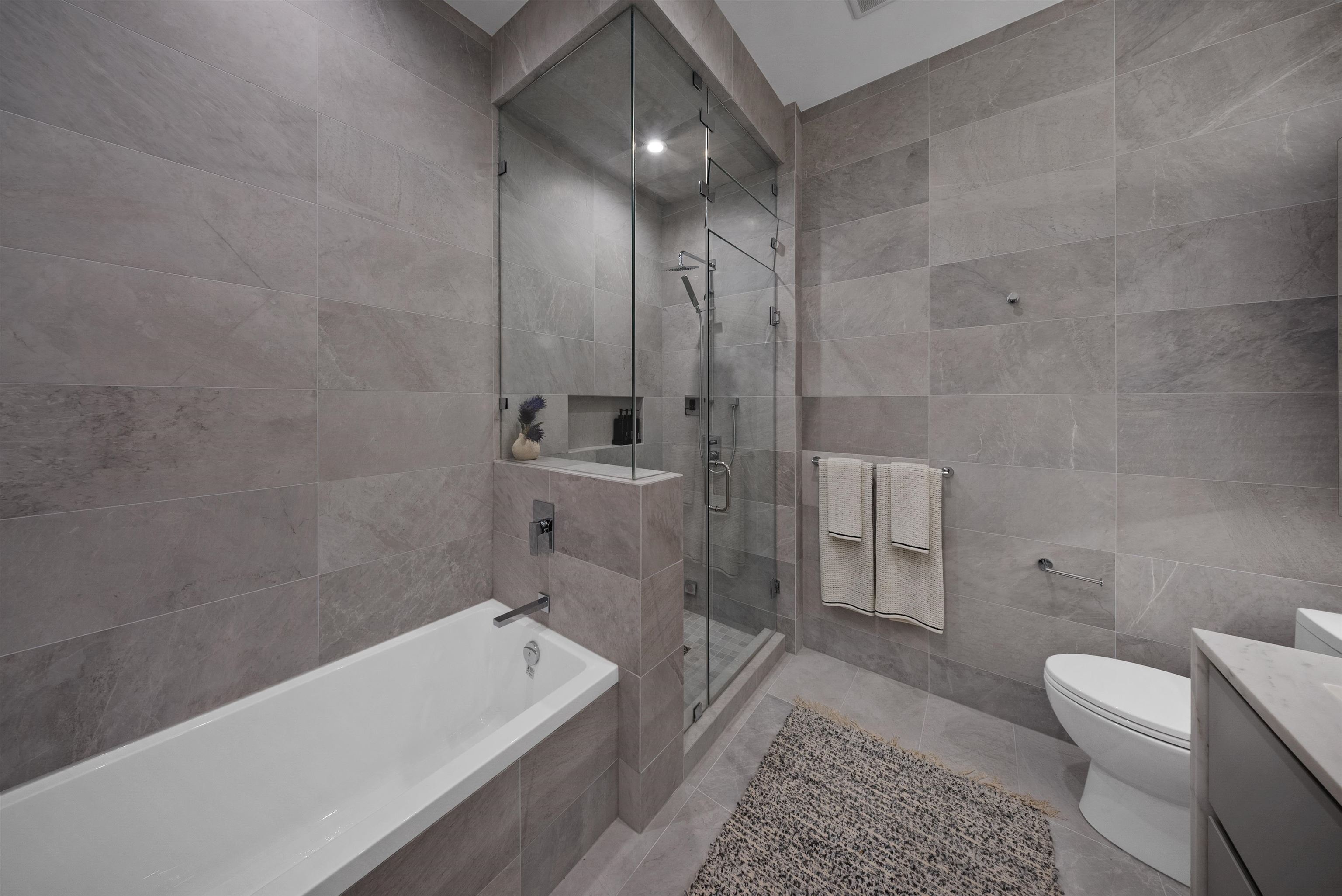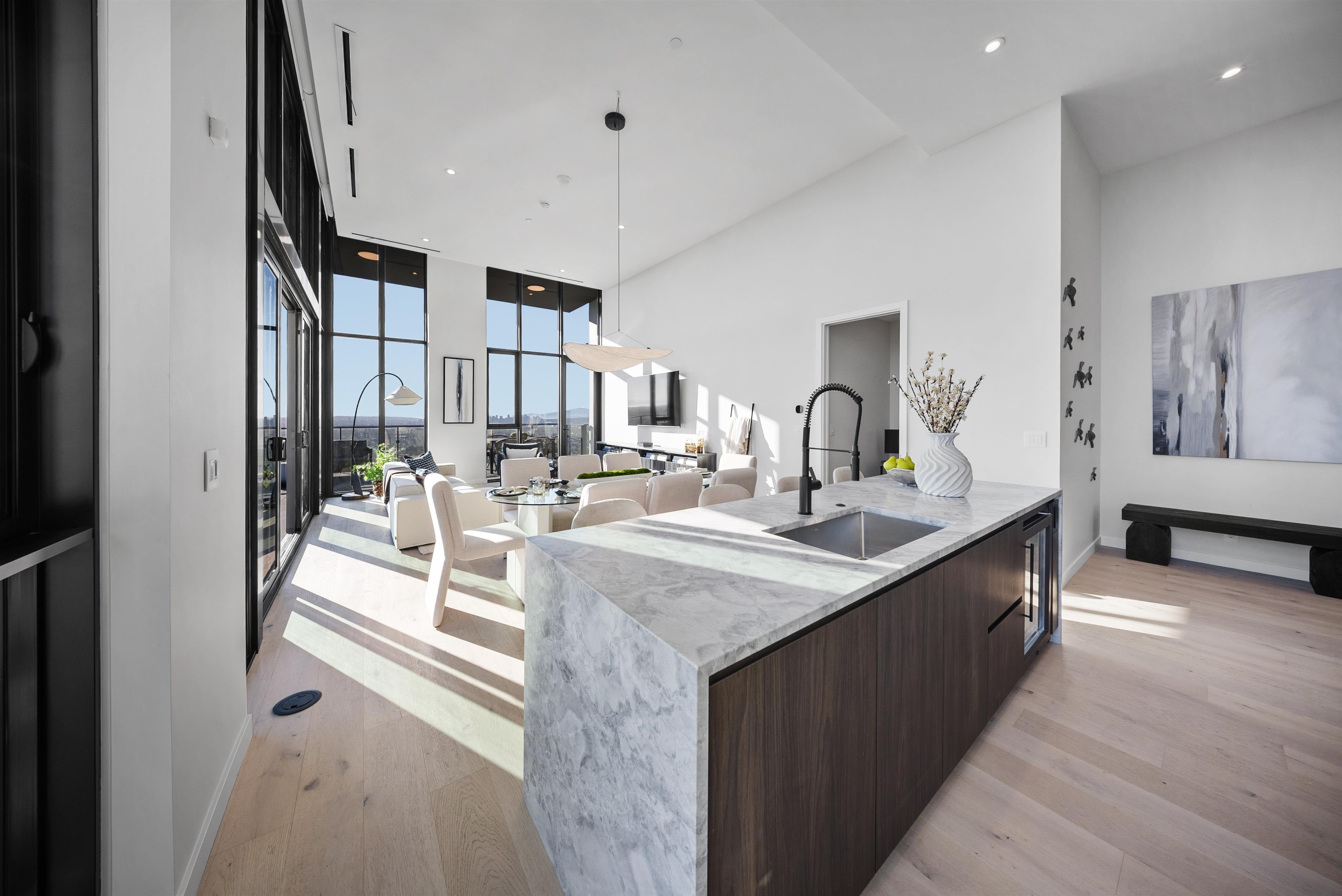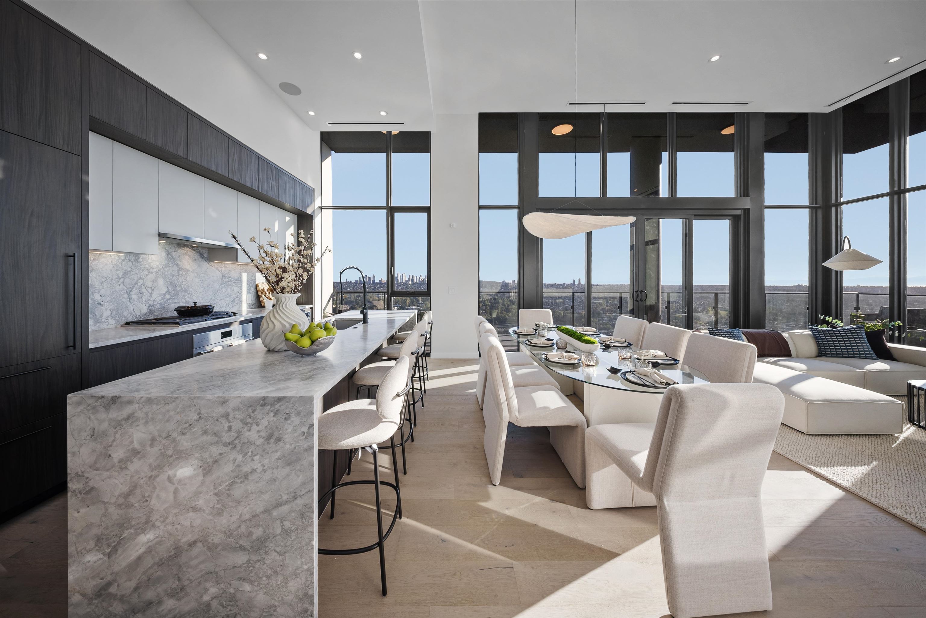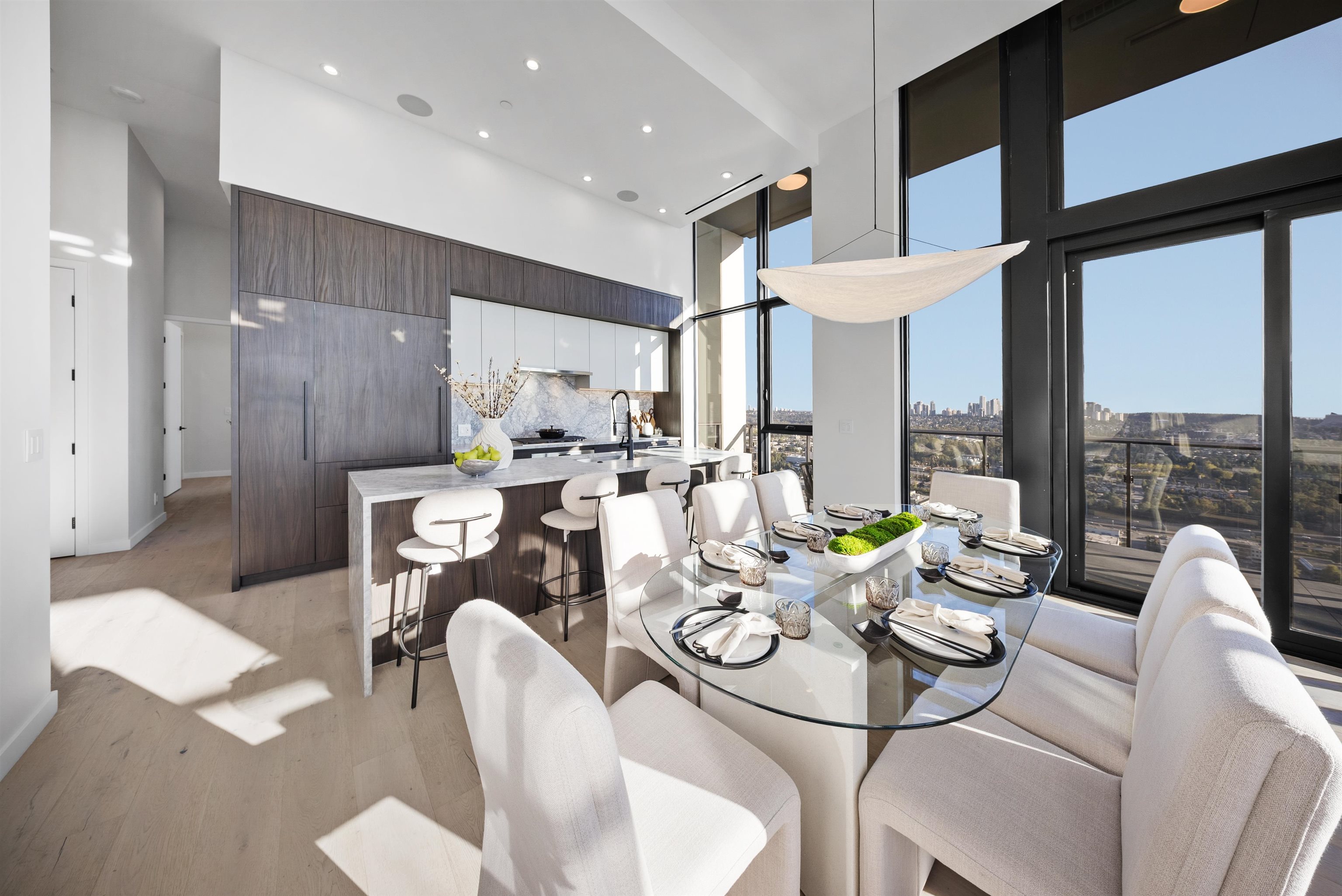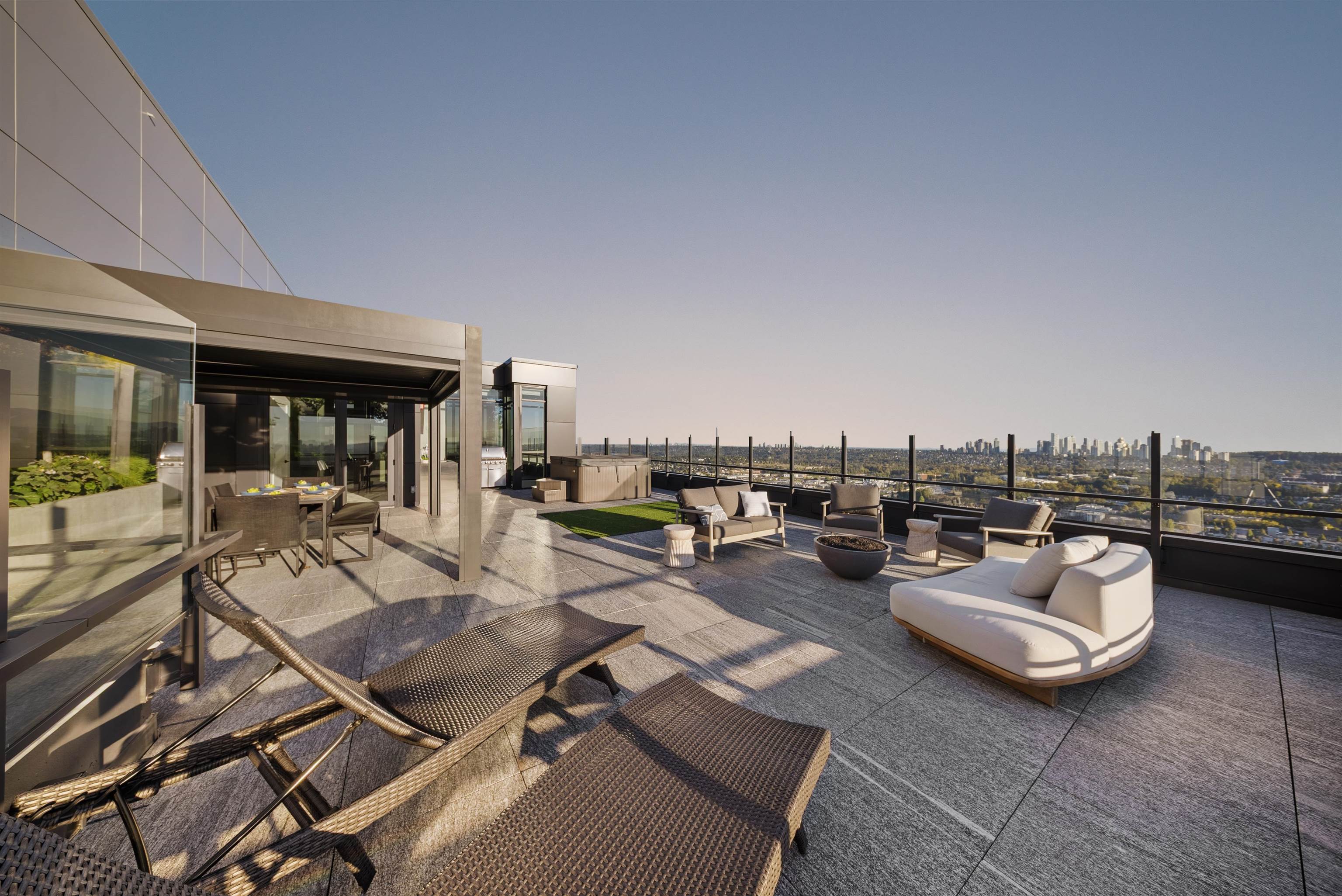 Rising above Burnaby, this penthouse is the crown jewel of the city’s most exclusive development. With soaring 14-foot ceilings, integrated Sub-Zero and Wolf appliances, quartzite stone countertops, and LED-lit cabinetry, every inch reflects precision and sophistication. The spa-inspired bathrooms feature marble tiling, a frameless glass steam shower, soaker tub, and heated NuHeat floors. Expansive outdoor living spans over 2,200 sqft across three private terraces, complete with a hot tub, BBQ, and kitchene...