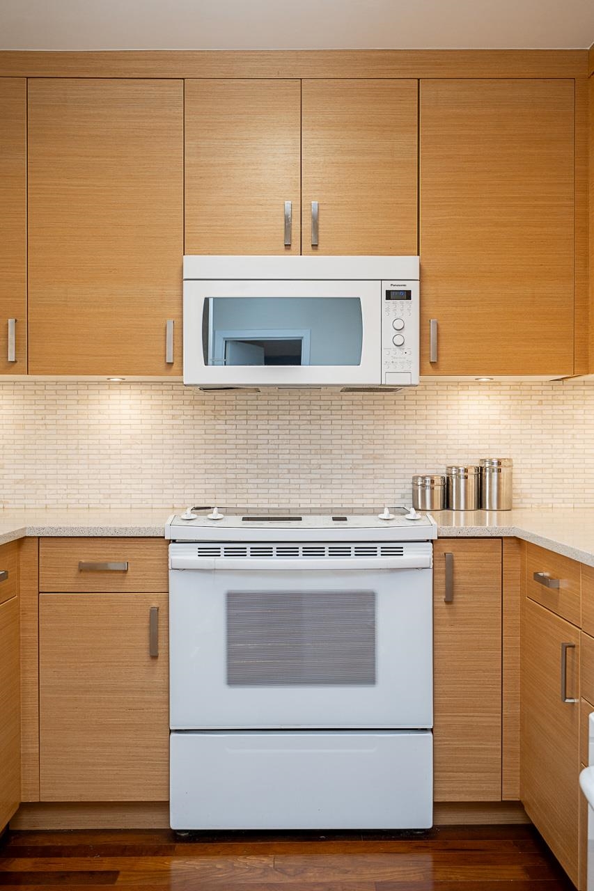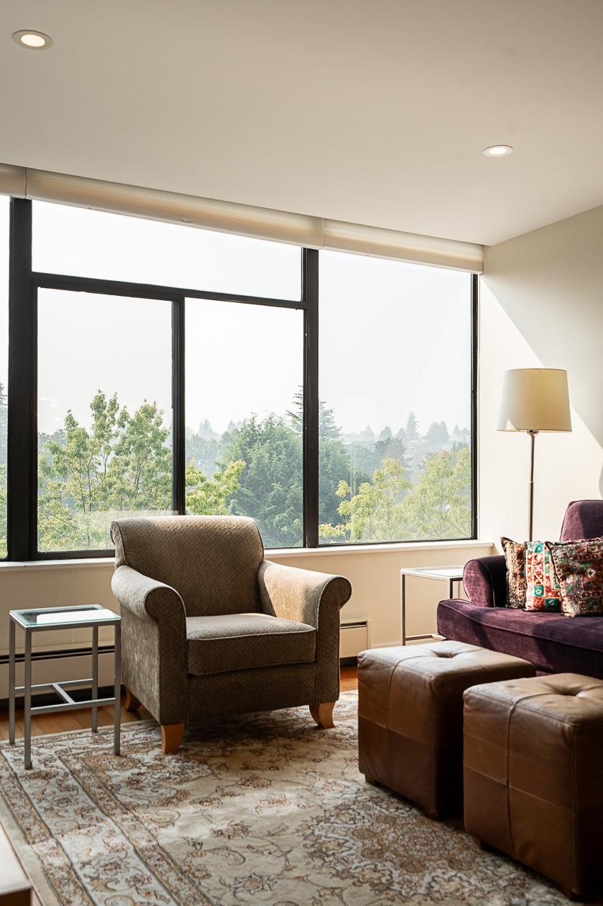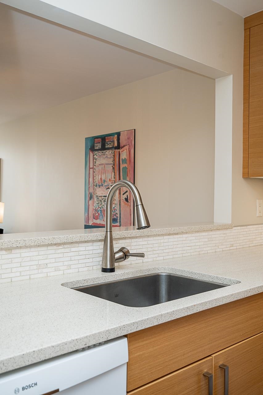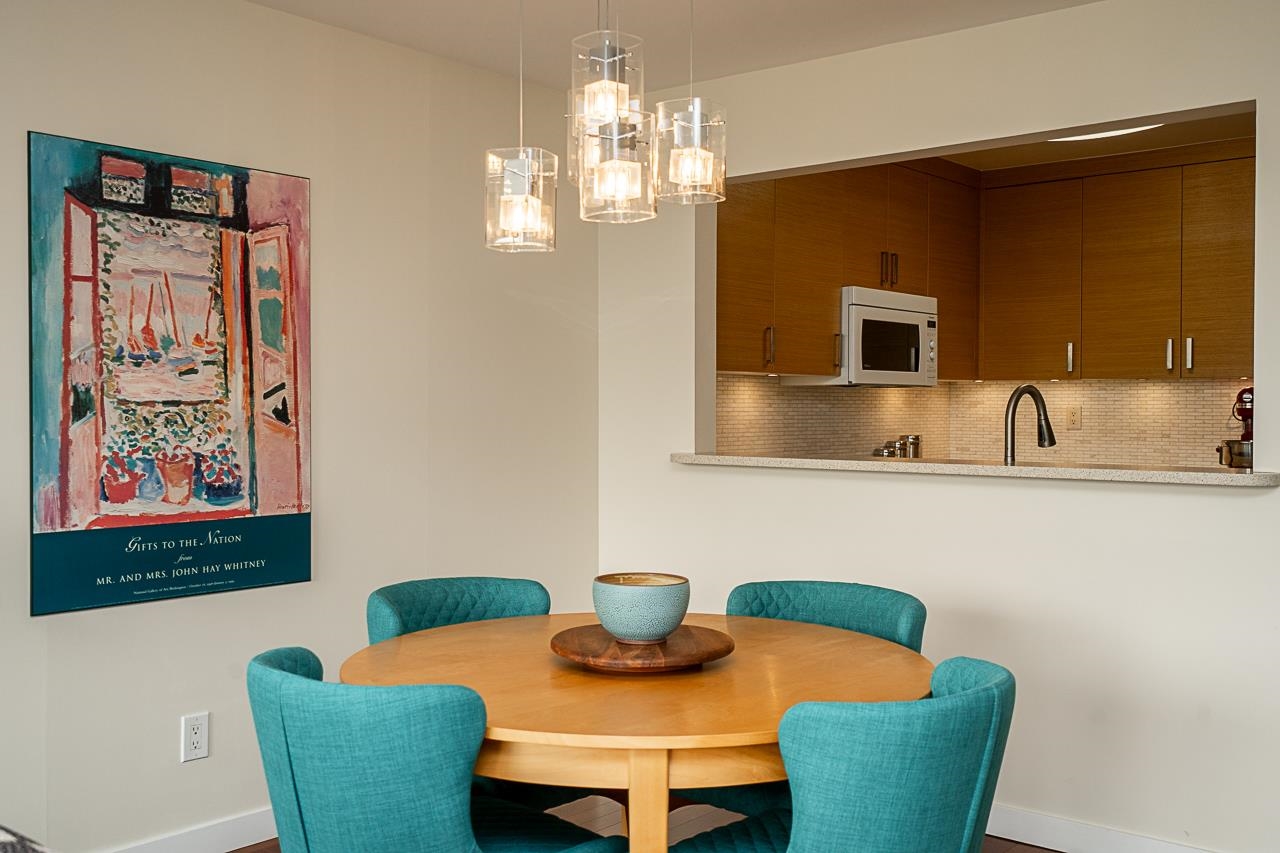 Welcome to Arbutus Village. This tranquil, concrete complex sits among treelined paths & offers the best in West Side location, convenience & lifestyle. Our south facing, oversized 1 bedroom sub-penthouse features abundant natural light & a soothing color palette. Upgrades include new kitchen & LED lighting (2015), all new windows (2021), bathroom reno & engineered wood floors. A custom geometric shelving unit separates the large bedroom from the sunny office/den space & a generous dining area allows for ea...