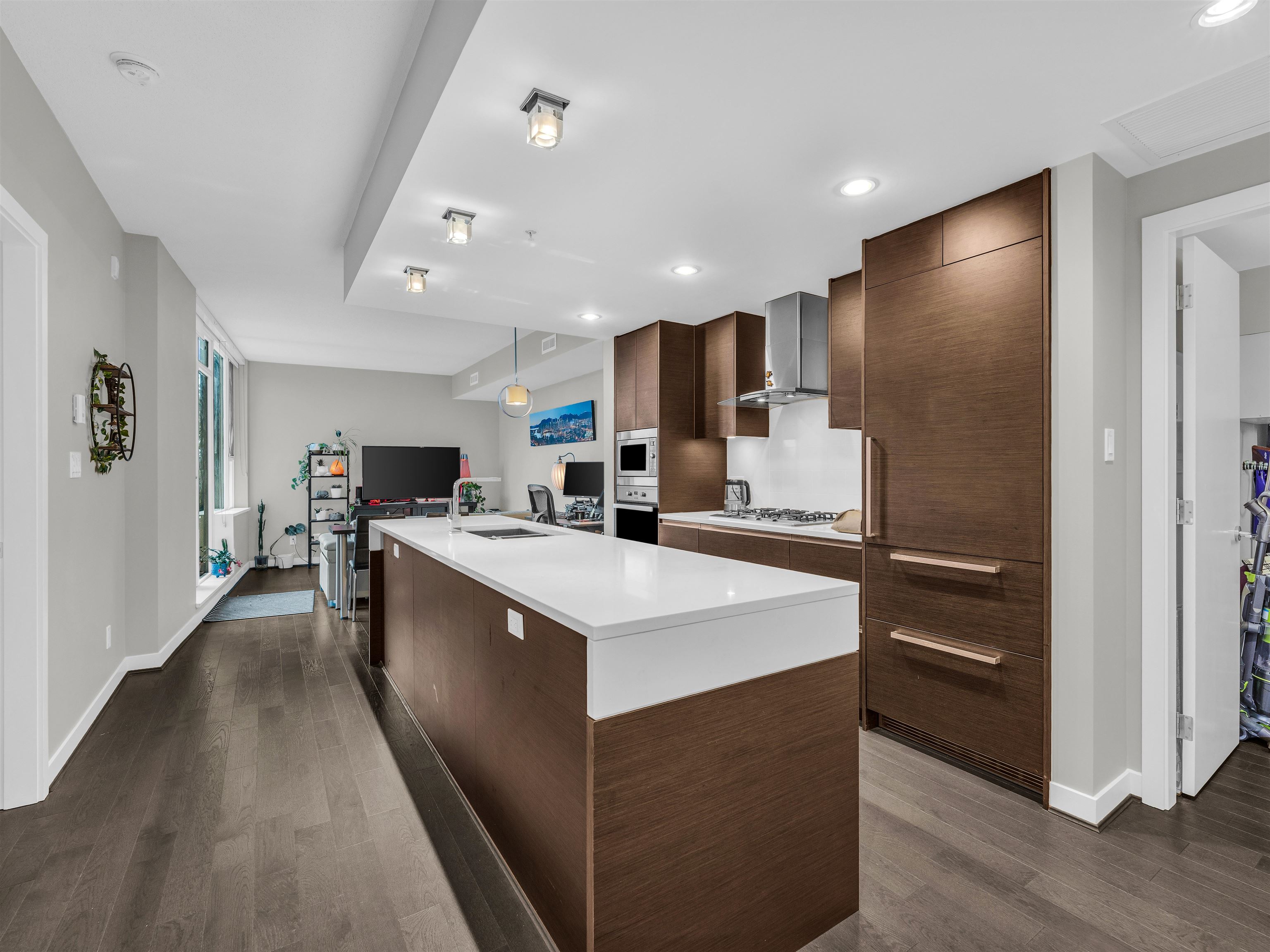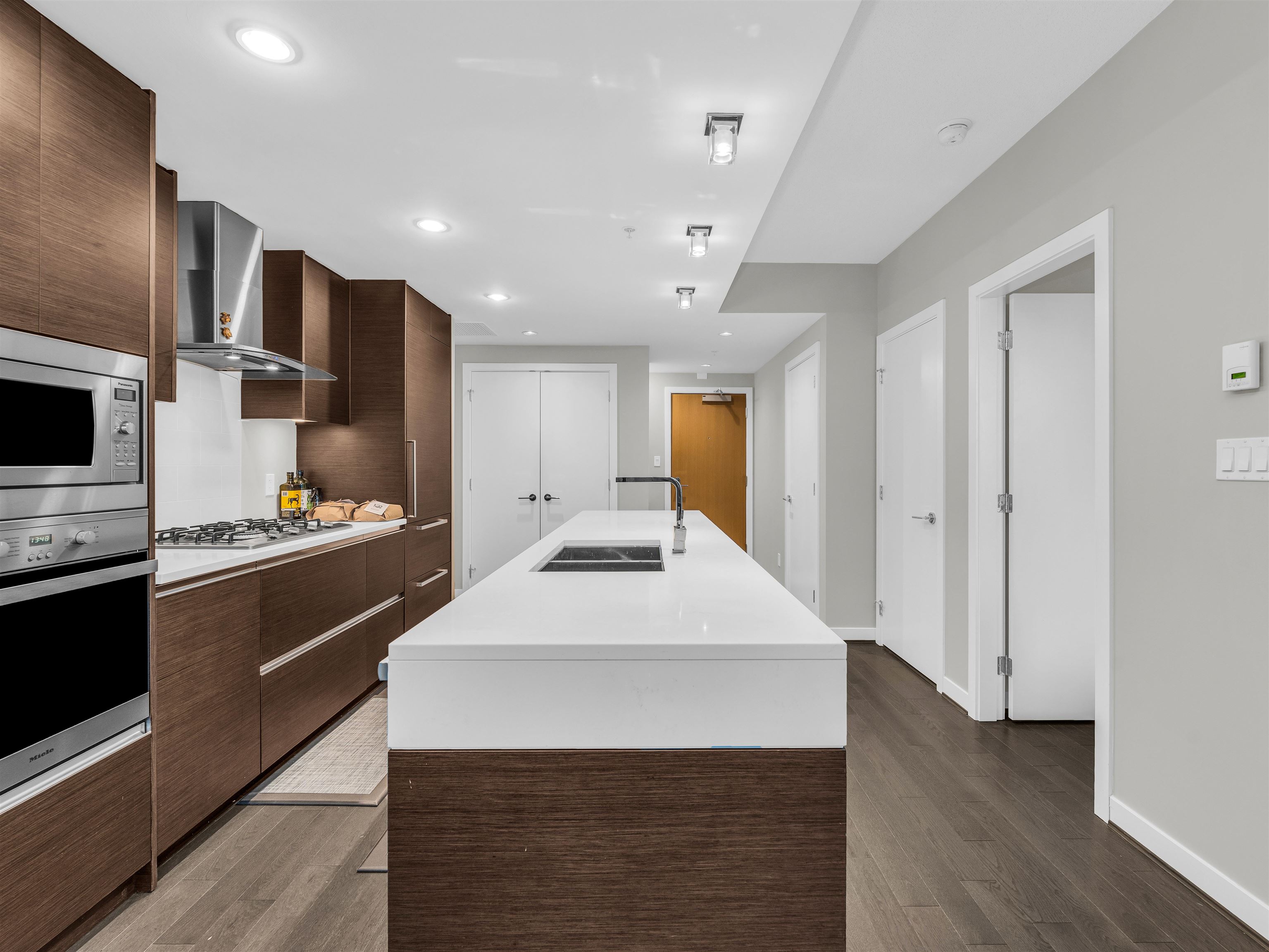 Welcome to this 1 bedroom + den unit in Empire at QE Park. This incredible unit offers 648 sq ft of thoughtfully designed living space in a concrete building directly across from Queen Elizabeth Park. Luxury finishes include Miele S/S appliances with full-sized gas cooktop, built-in oven, hood fan & fridge, quartz countertops with matching backsplash, kitchen island, engineered hardwood flooring, and central heating & cooling. Steps to QE Park, Hillcrest Community Centre, Cambie Village shops, and King Edwa...