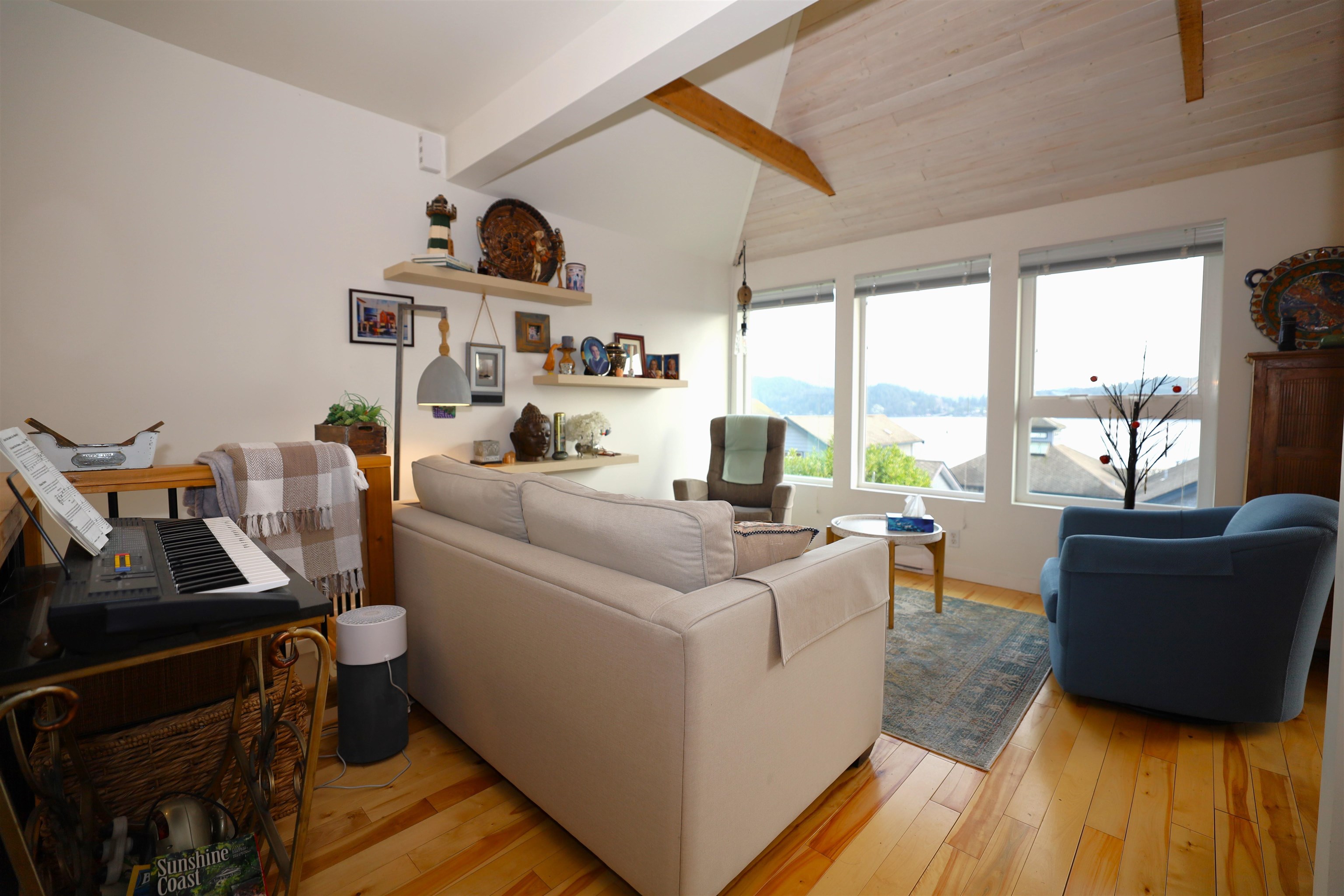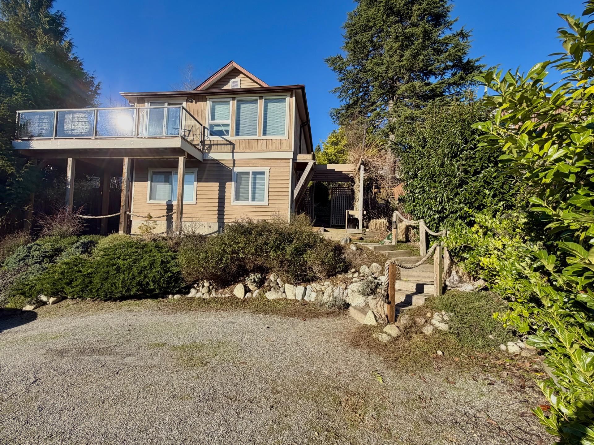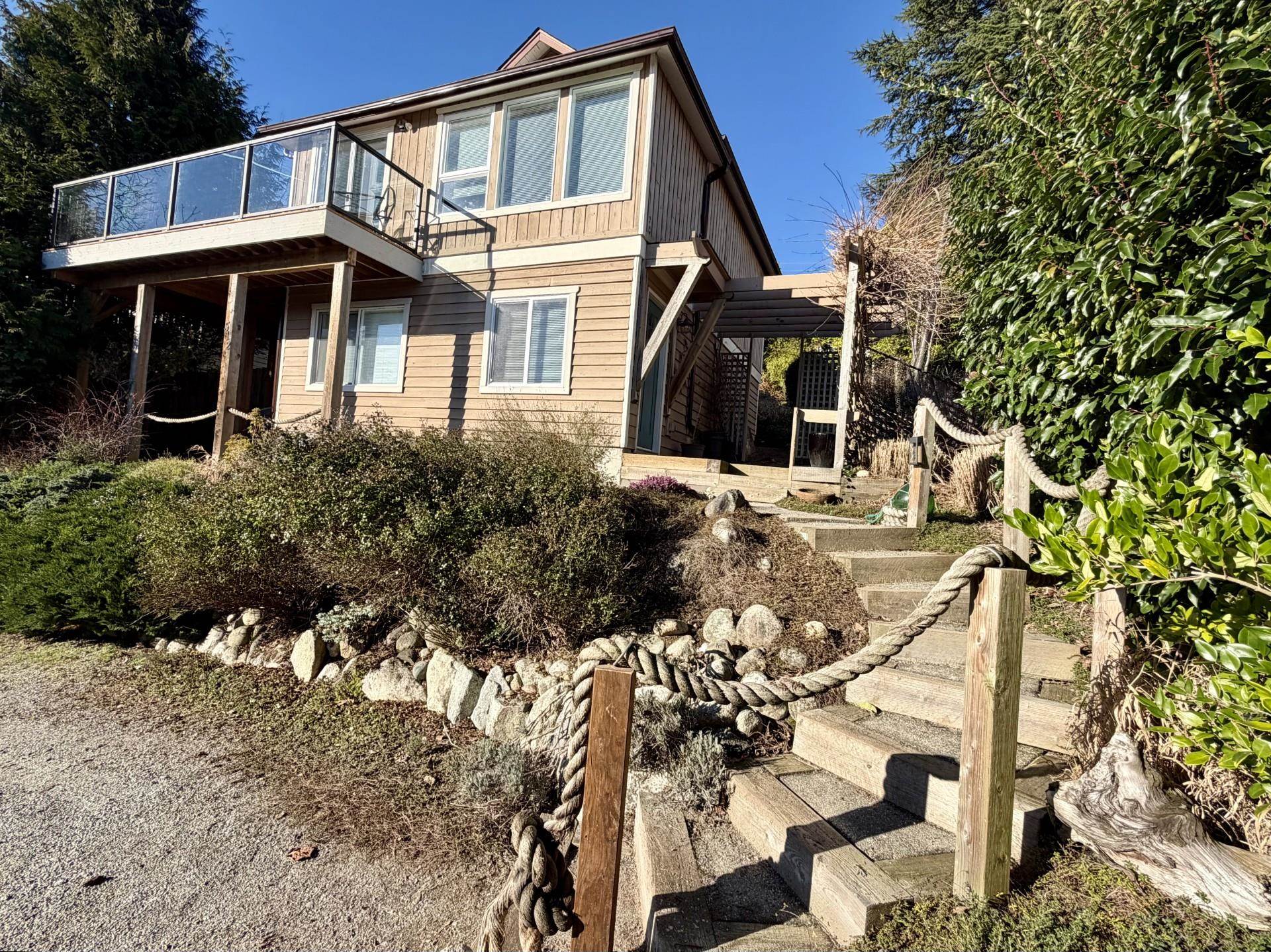 View home in Lower Gibsons! This charming home sits just a block up from all the shops and restaurants. Beautiful views looking over the harbour and beyond to Keats Island. Open living space on the main floor opens up to a brand new deck, perfect for relaxing and taking in the views. 2 bedrooms and 2 bathrooms plus two separate living spaces, up and down. Private front yard, complete with garden shed and lovely mature landscaping. Access off of both Periwinkle Lane and South Fletcher, with plenty of parking...