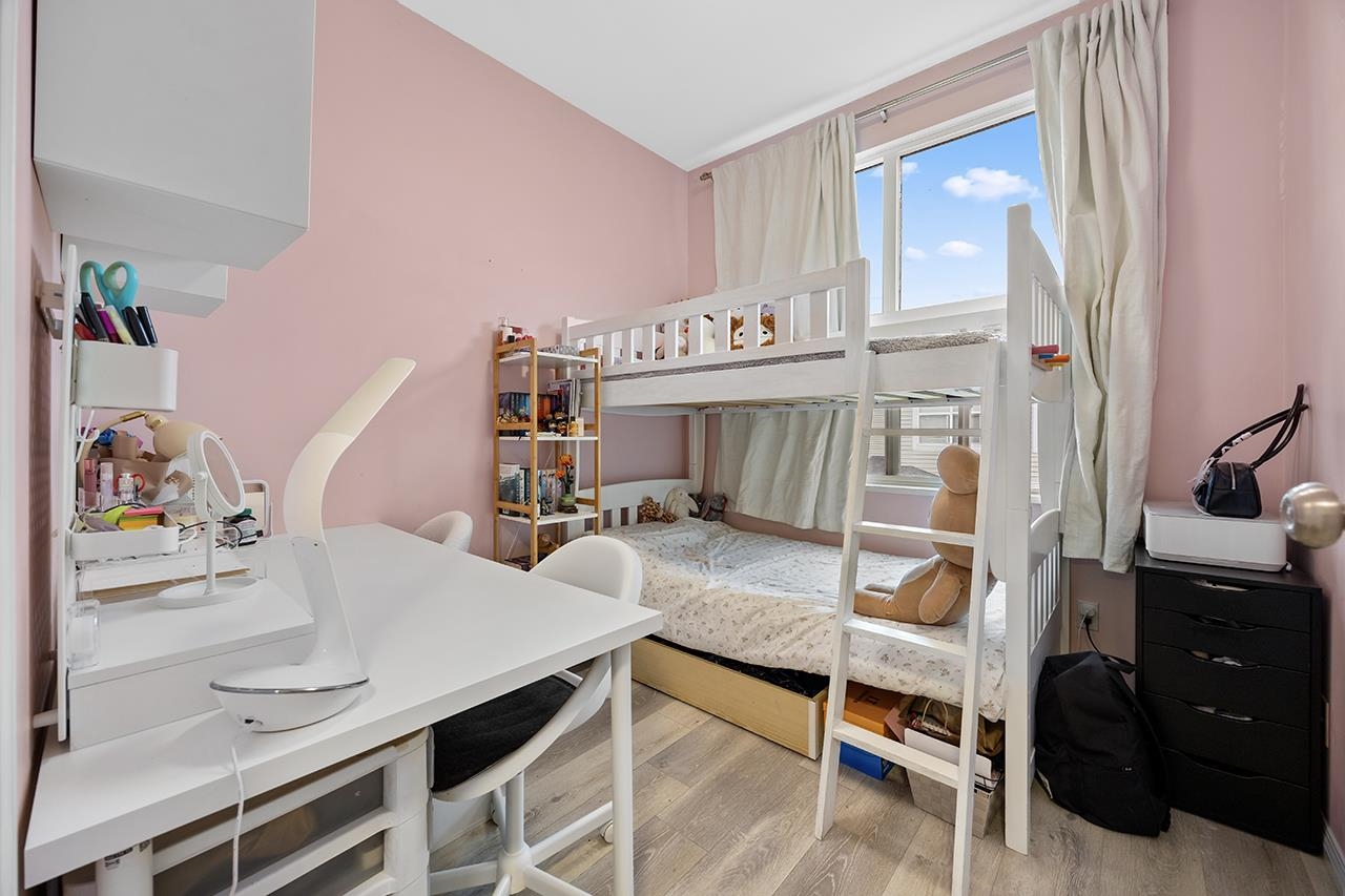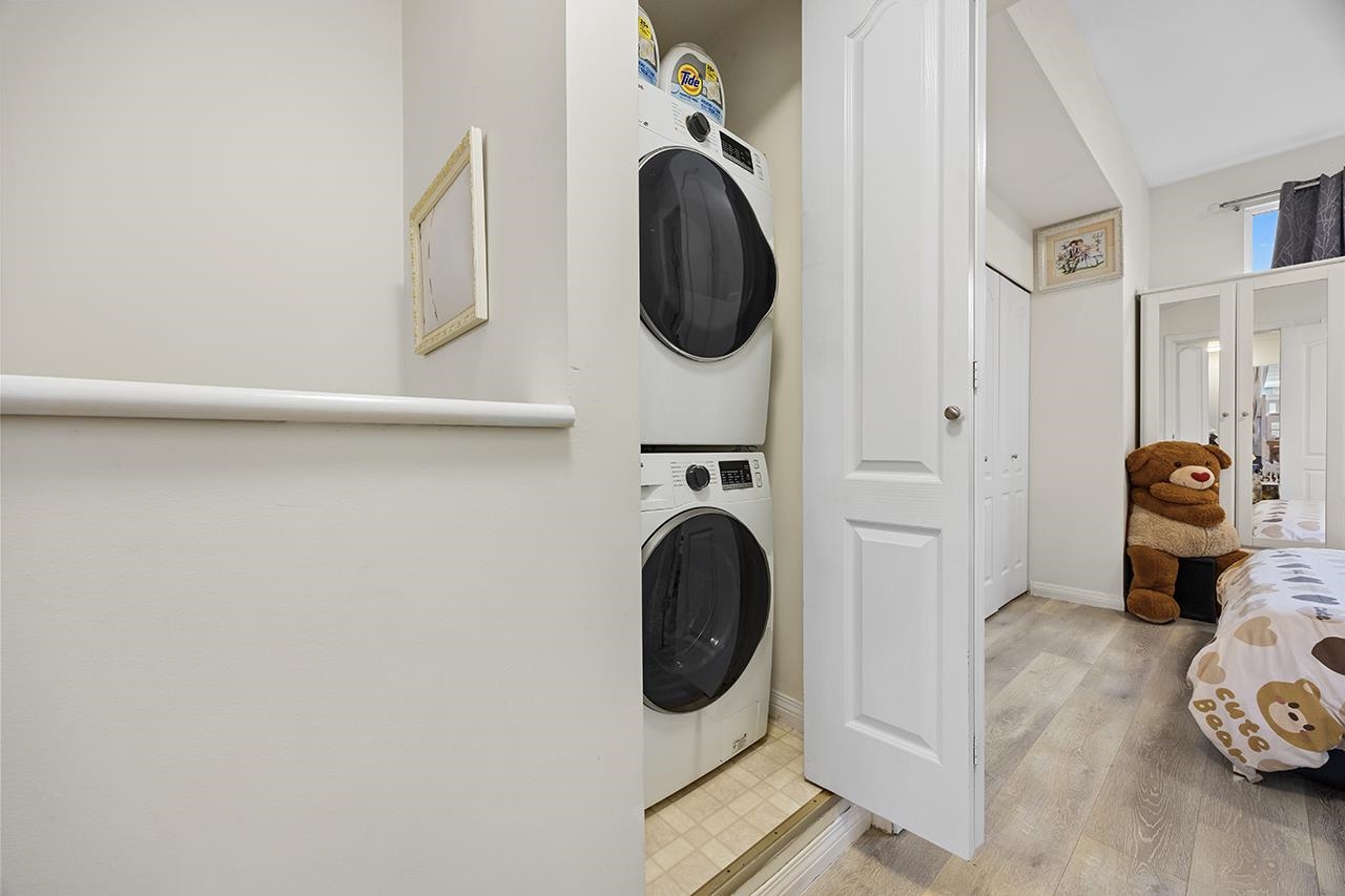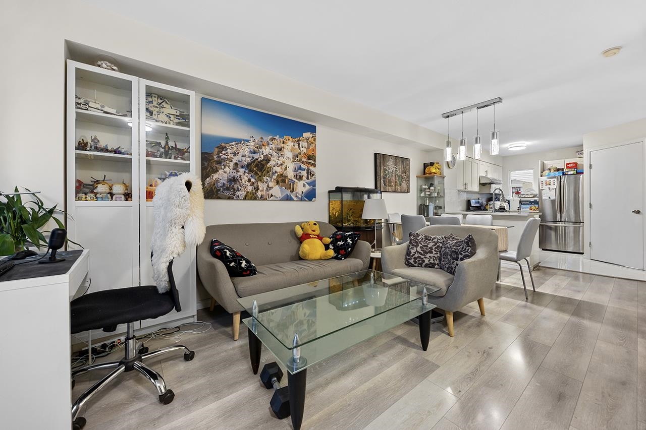 Welcome to Laurelwood by award-winning Townline. This bright 3-level townhouse offers 4 bedrooms and 2 bathrooms. Functional layout with an open kitchen featuring stainless steel appliances, flowing into spacious dining and living areas with a cozy gas fireplace. The enclosed eating area beside the kitchen, complete with a door, can serve as a 4th bedroom or home office. Enjoy a covered balcony and private front yard. Ample visitor parking nearby. Close to McKay Elementary, Burnett Secondary, and Thompson C...