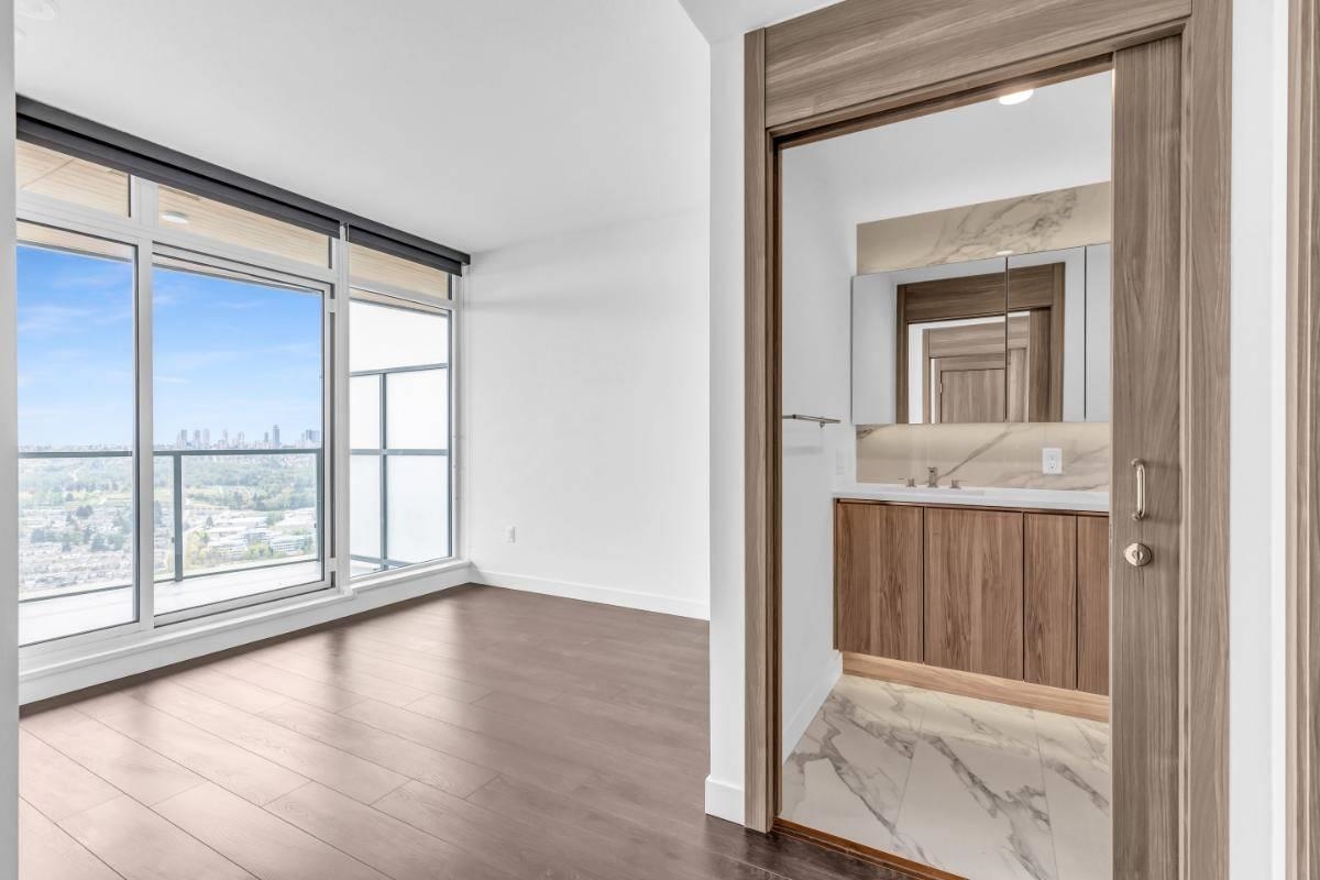 Sub-penthouse, corner unit at Concord Brentwood Hillside East with stunning, unobstructed 270° views. from the mountains and Indian Arm, to Mt. Baker, Metrotown, and the Gulf Islands. This south-facing 2 bedroom, 2 bathroom + DEN home offers 1,058 sqft of modern living and an incredible 638 sqft of heated outdoor space. Expansive sliding doors fully open to create a seamless flow between indoors and out. perfect for entertaining or relaxing with your morning coffee or evening glass of wine. Sophisticated de...