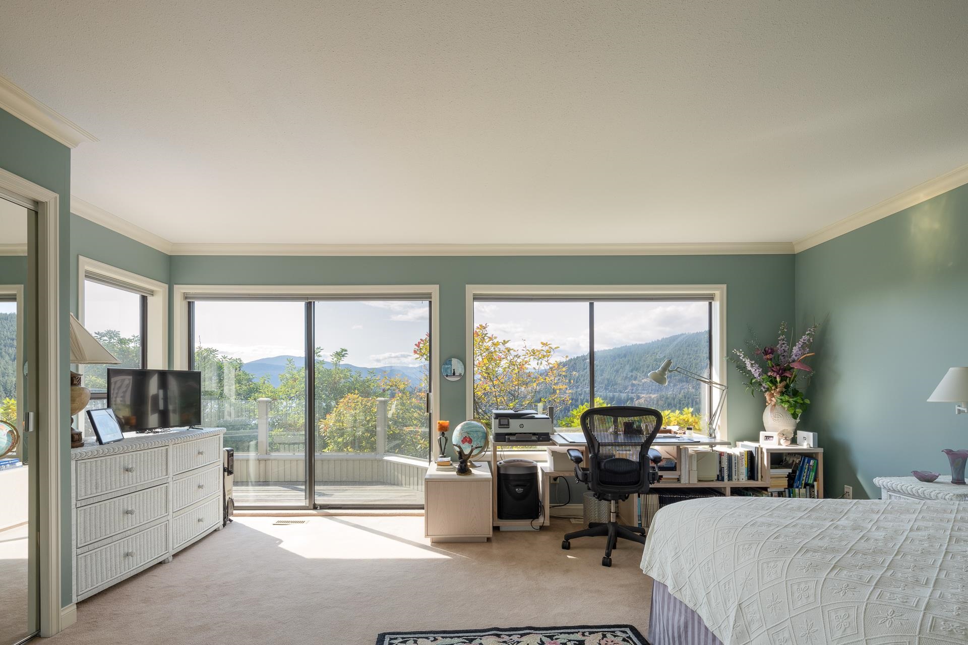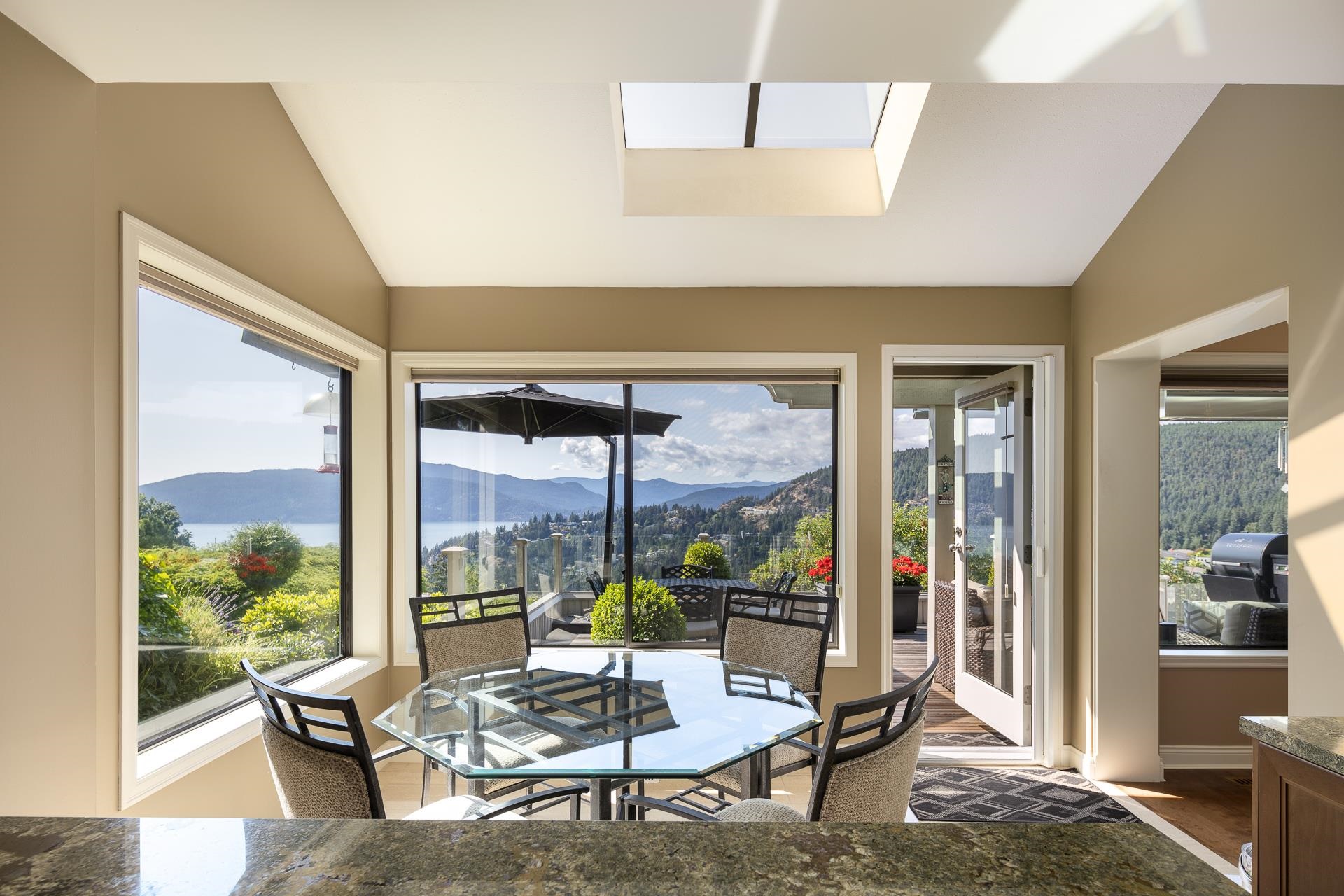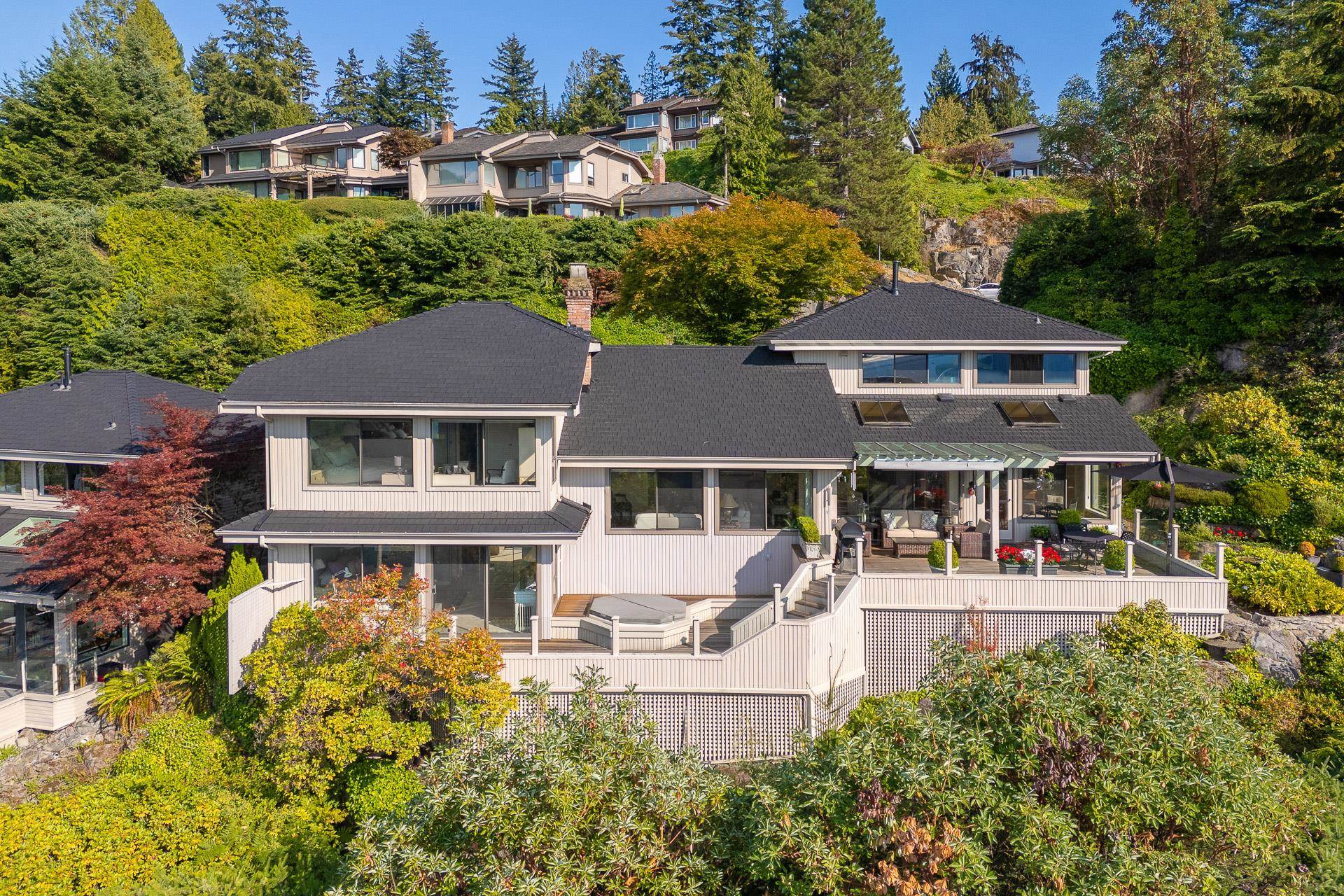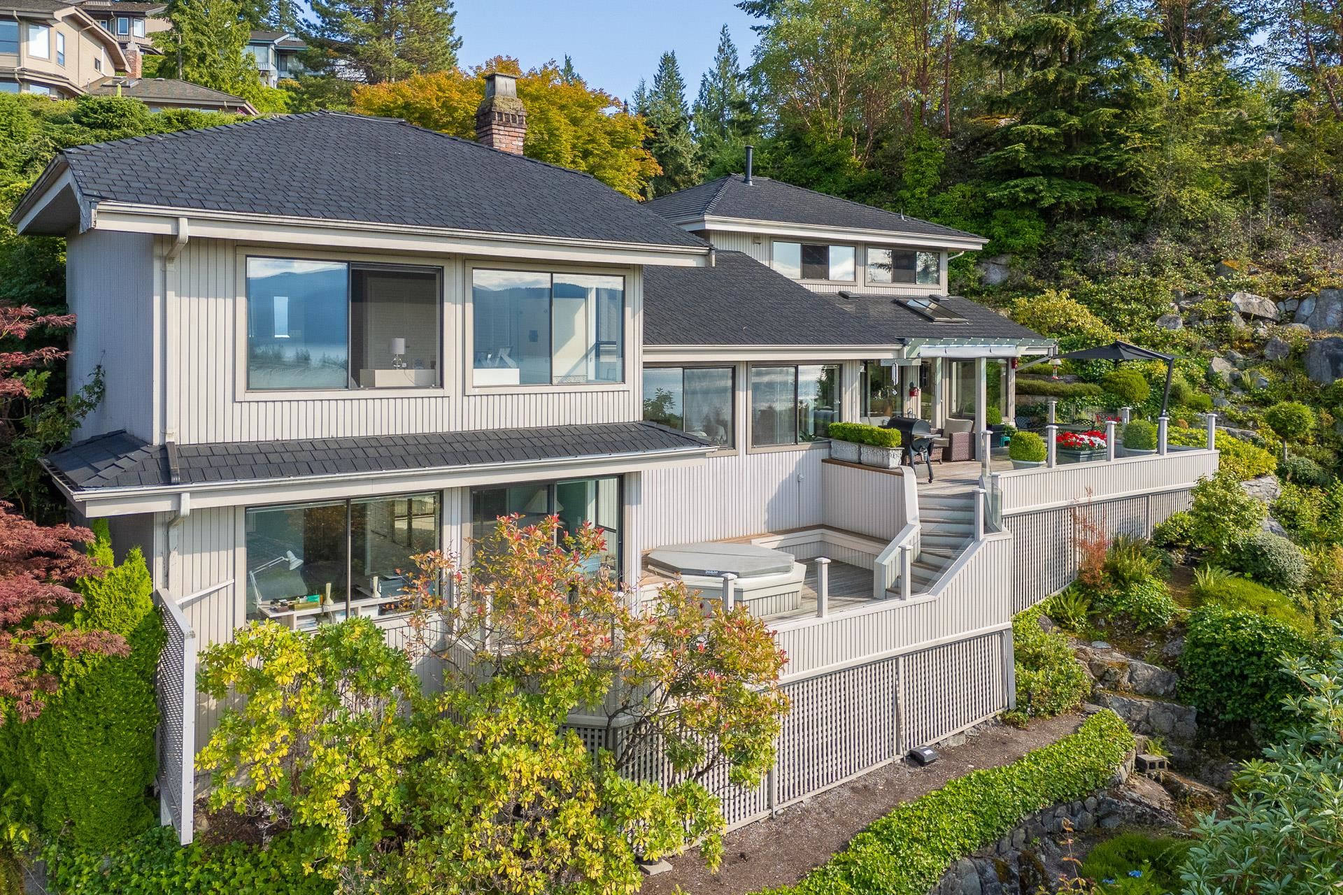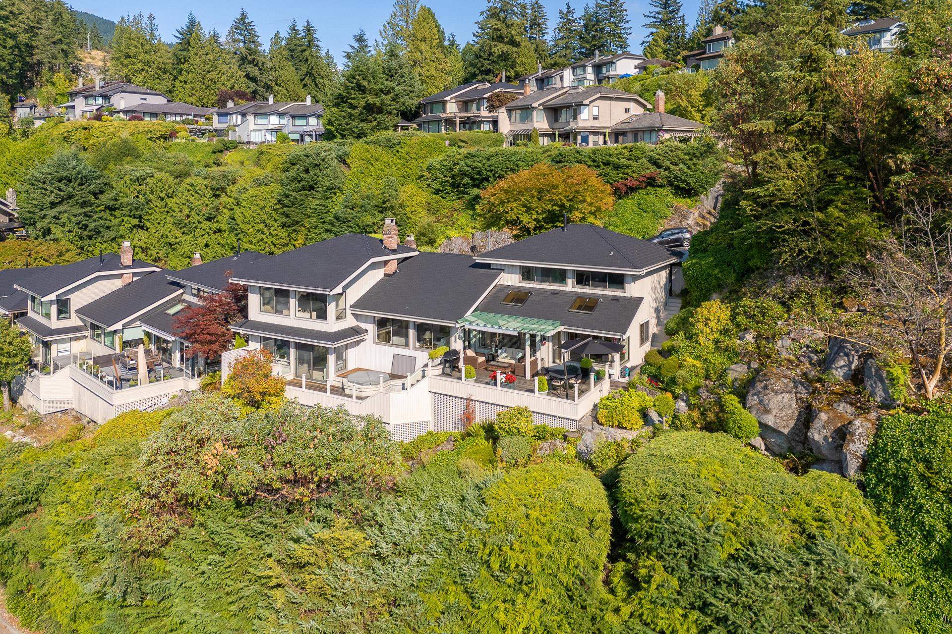 Beautifully updated and maintained this unique detached Sahalee home has breathtaking southwest views of Howe Sound and Bowen Island. One of only two similar floor plans and perfectly positioned on a completely private 10,000sf lot adjacent to a picturesque rock bluff to ensure a tranquil and sunlit retreat. Elegant interior with vaulted ceilings, gourmet kitchen with a charming breakfast area, two spacious primary suites on two different levels each with private ensuites plus a cozy den or home office. An ...