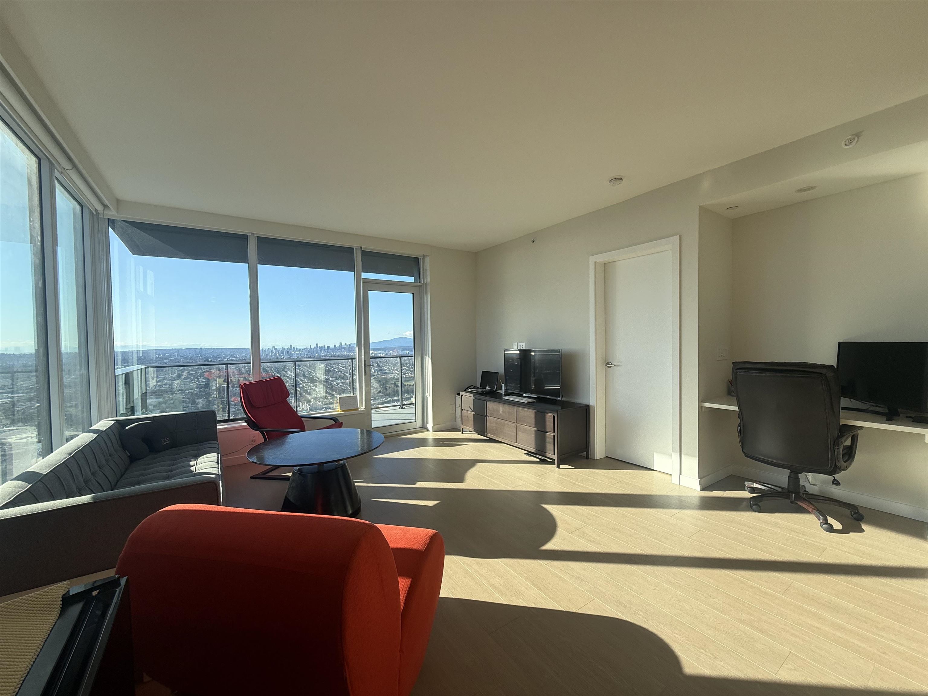 Welcome to Gilmore Place, an iconic development by the award-winning Onni Group. This rarely available 2 Bedroom + Den + 2 Bathroom home sits high on the 54th floor with Panoramic north-east-west skyline views in a truly breathtaking setting. Step into refined living with quartz countertops, wide-plank laminate flooring, and premium porcelain tiles throughout. Enjoy year-round comfort with built-in air conditioning, offering the perfect balance of luxury and convenience. Enjoy access to over 15,000 sq.ft. o...
