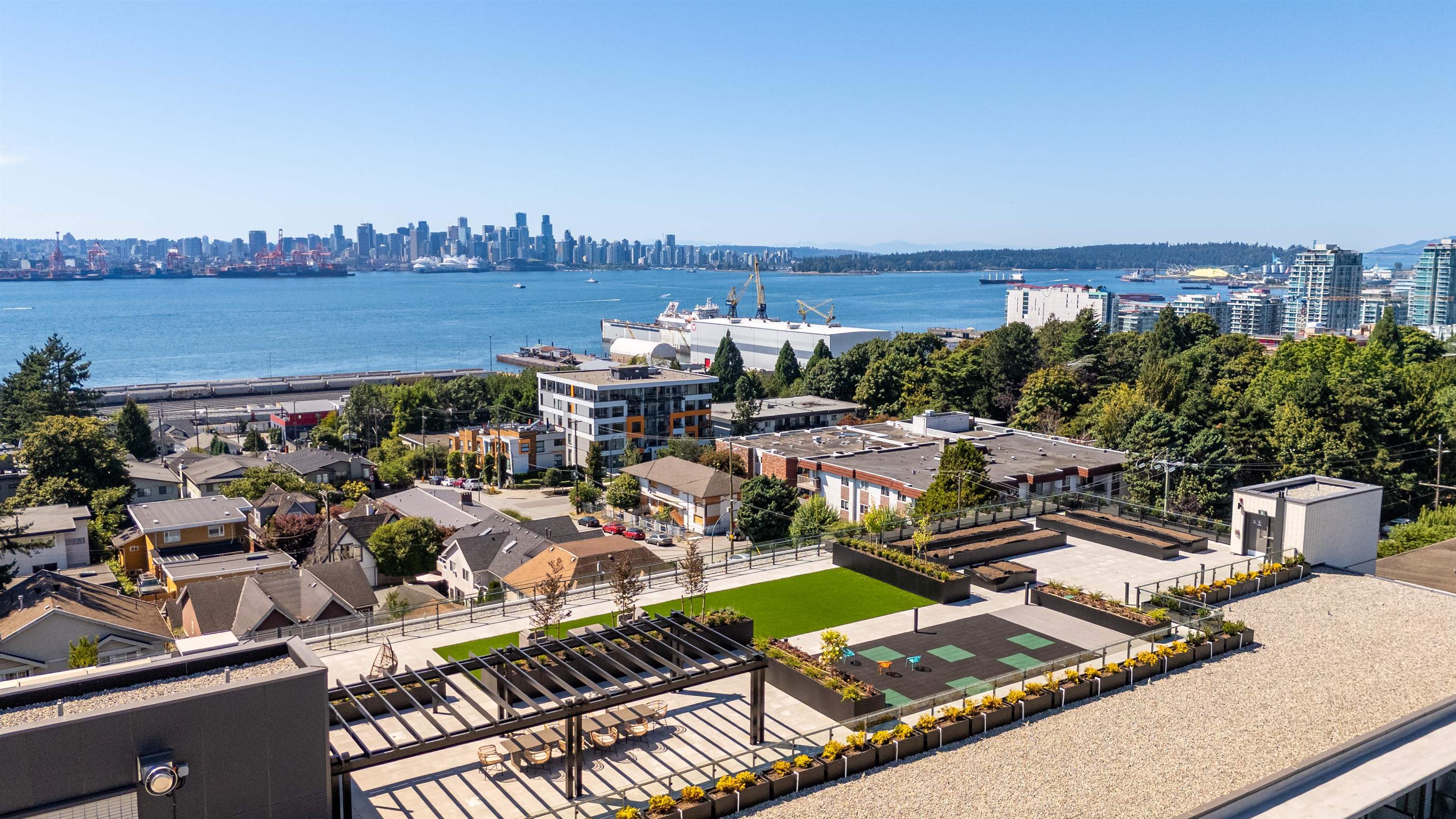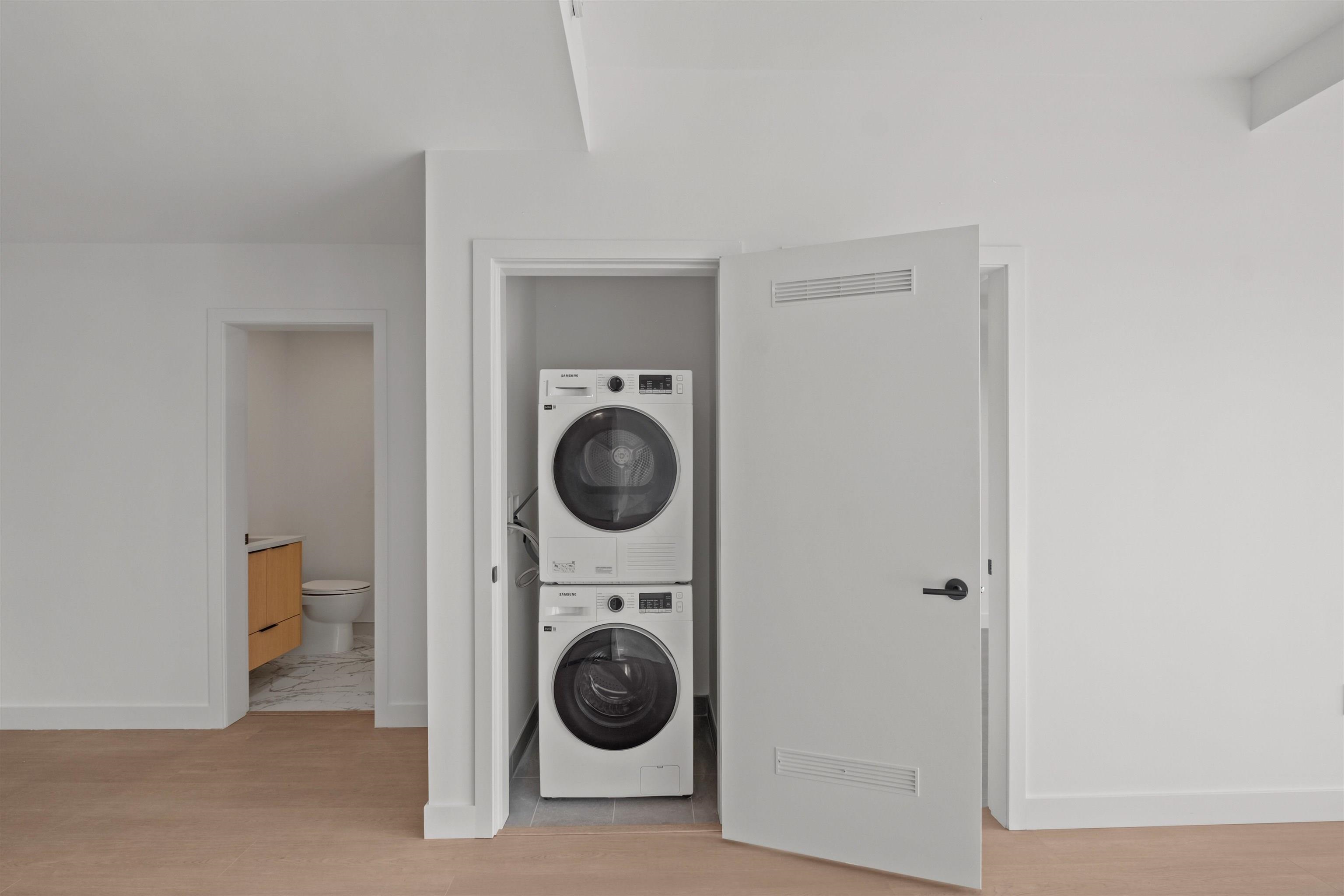 Live in style at the brand-new concrete INNOVA in the heart of Lower Lonsdale. This bright, modern 2-bedroom, 2-bathroom home offers a smart open layout & unobstructed south-facing views of the Downtown Vancouver skyline. Enjoy floor-to-ceiling windows, hardwood flooring, a contemporary kitchen with Fisher & Paykel appliances, quartz countertops,& A/C for year-round comfort. Exceptional amenities include North Vancouver’s crown-jewel rooftop terrace, complete with panoramic views, outdoor lounge spaces & a ...