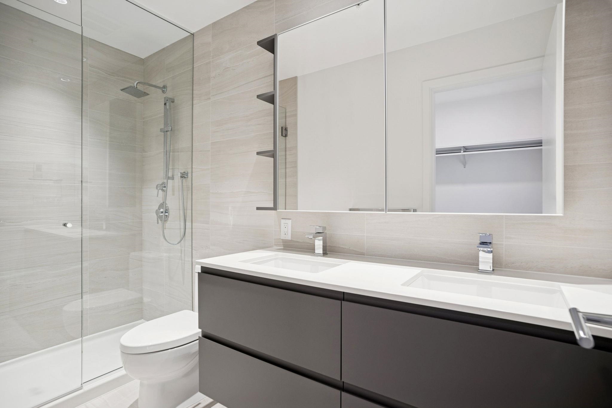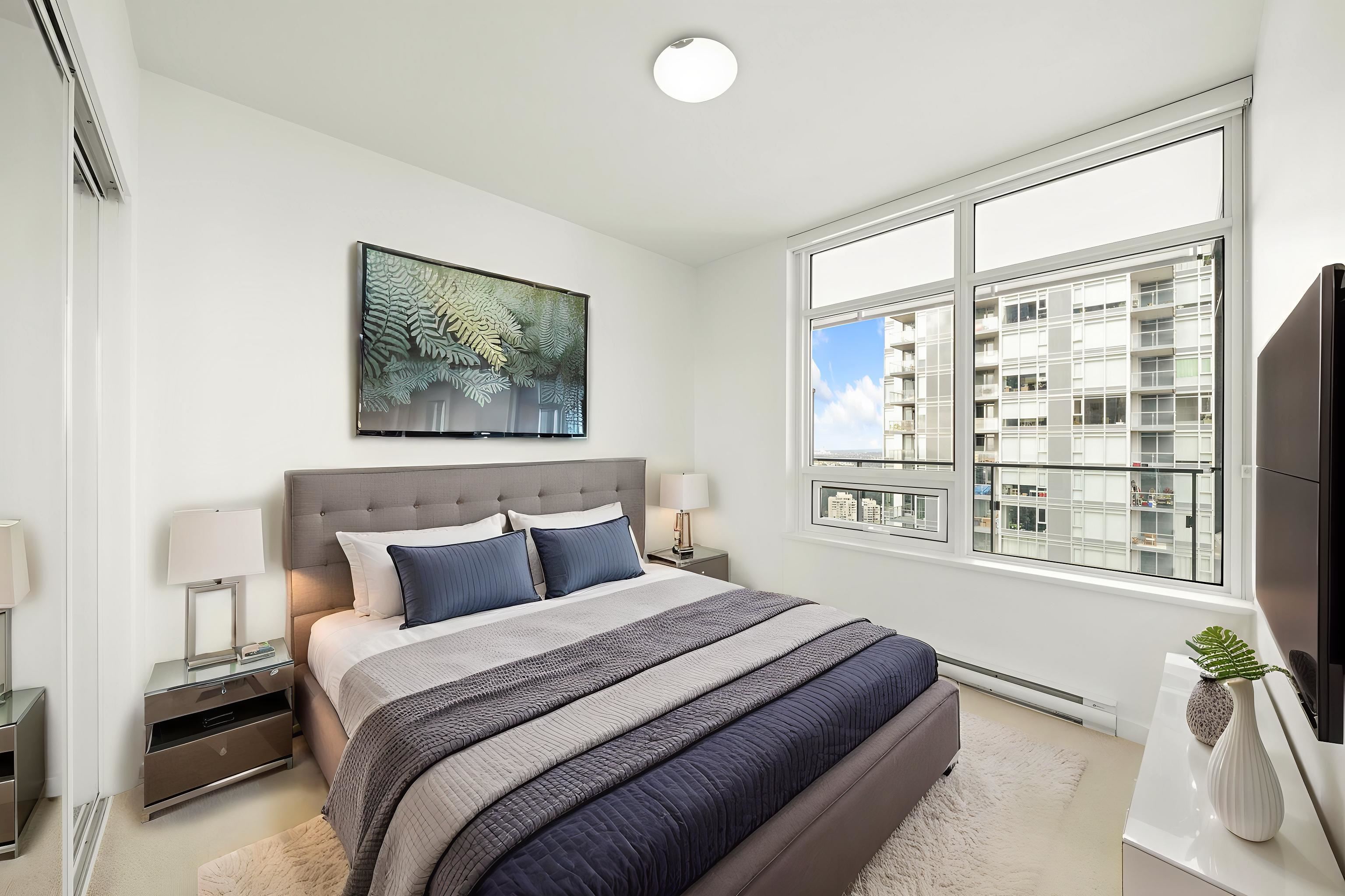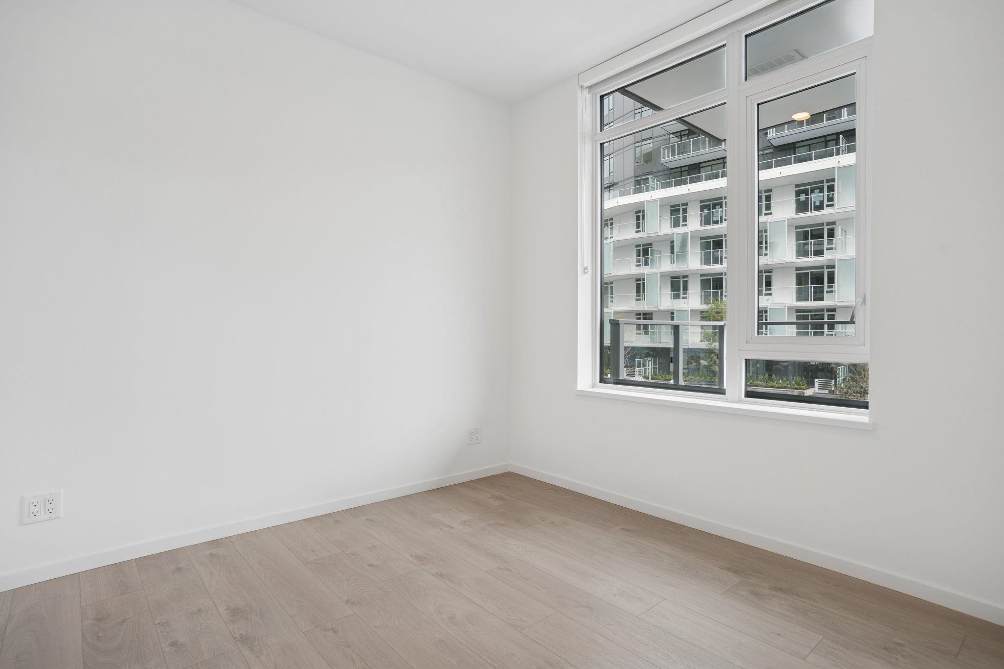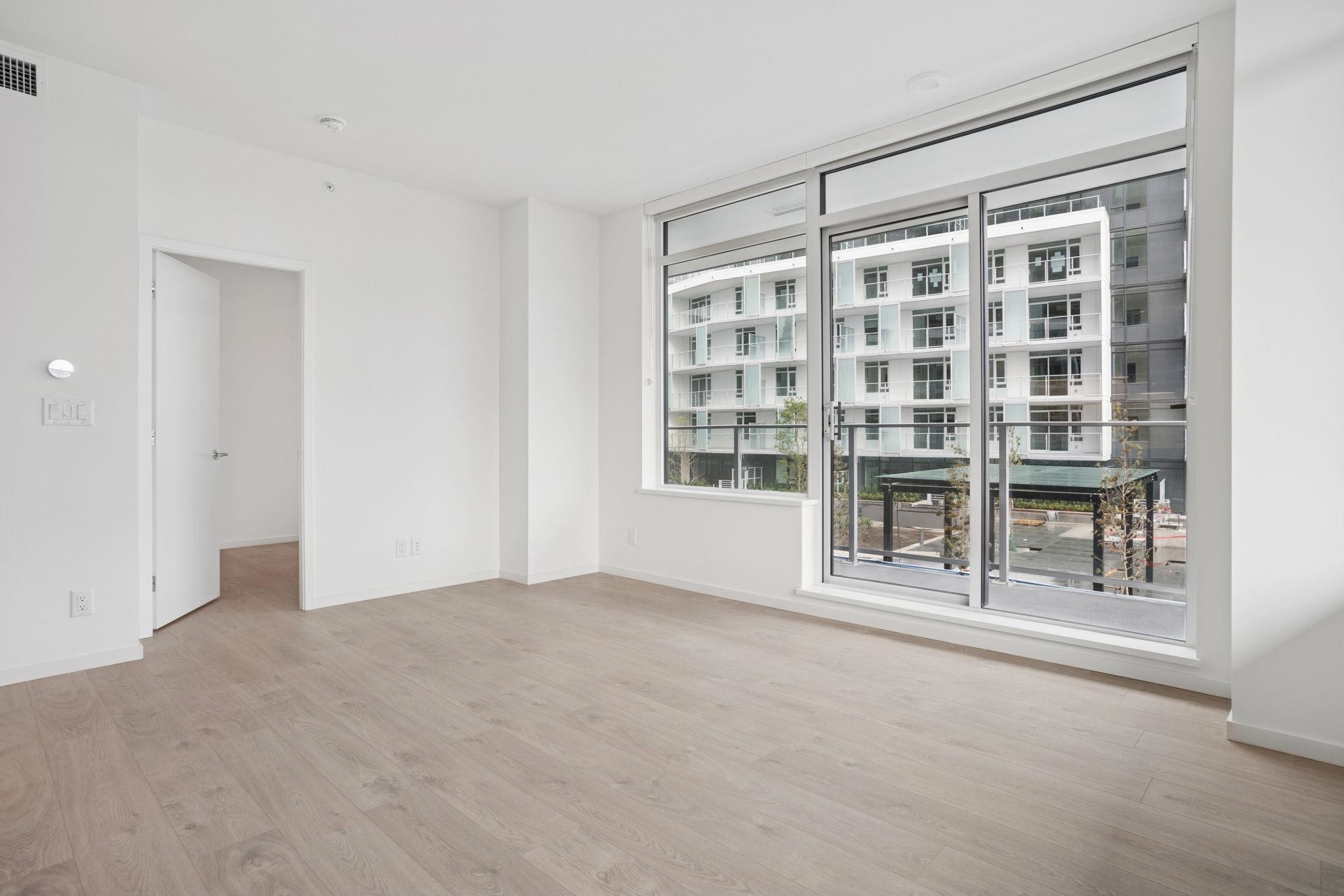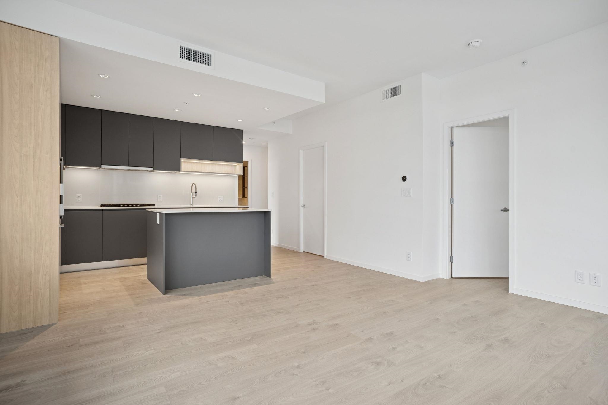 Bright and modern 2 bedroom + den corner home at Richmond Centre! This brand new concrete residence offers the perfect blend of style and convenience, with shopping, dining, and transit just steps away. Featuring premium Gaggenau & Bosch appliances, air conditioning, and sleek finishes, this functional layout is filled with natural light from its desirable NE exposure. Enjoy access to fantastic amenities and the comfort of 1 included parking stall. A stylish, move-in ready home in the heart of Richmond!