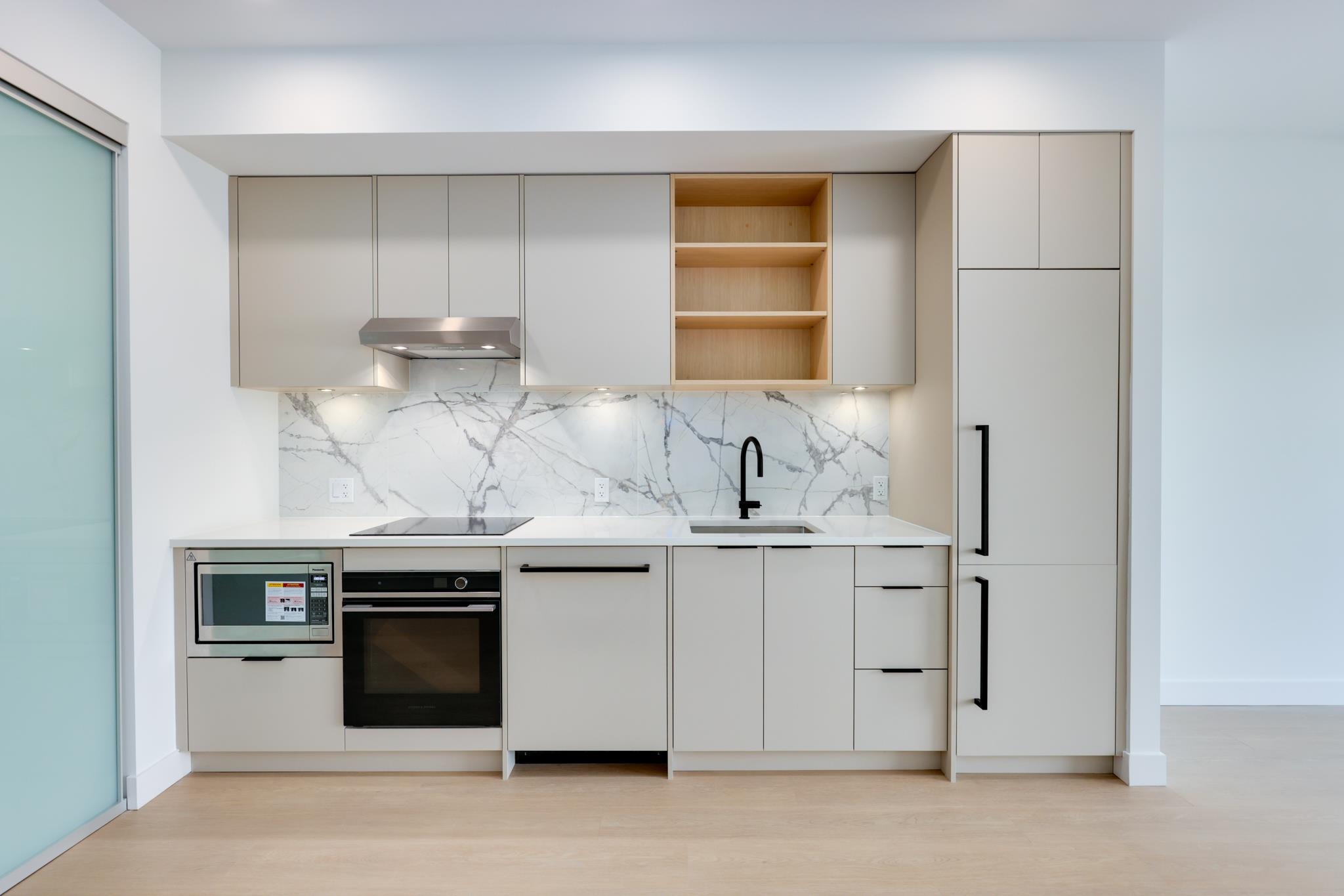 New condo offers tasteful, modern design, premium finishes, and an unbeatable location! Bright open-concept layout in a concrete building features floor-to-ceiling windows, quality wide-plank flooring and a sleek kitchen with quartz counters, integrated appliances and ample designated storage. Enjoy your private balcony and the resident-exclusive amenities including 8,000sqft roof top terrace, community gardens, BBQ areas, play spaces, indoor lounge, party/media room, bike room and an easy dog wash station....