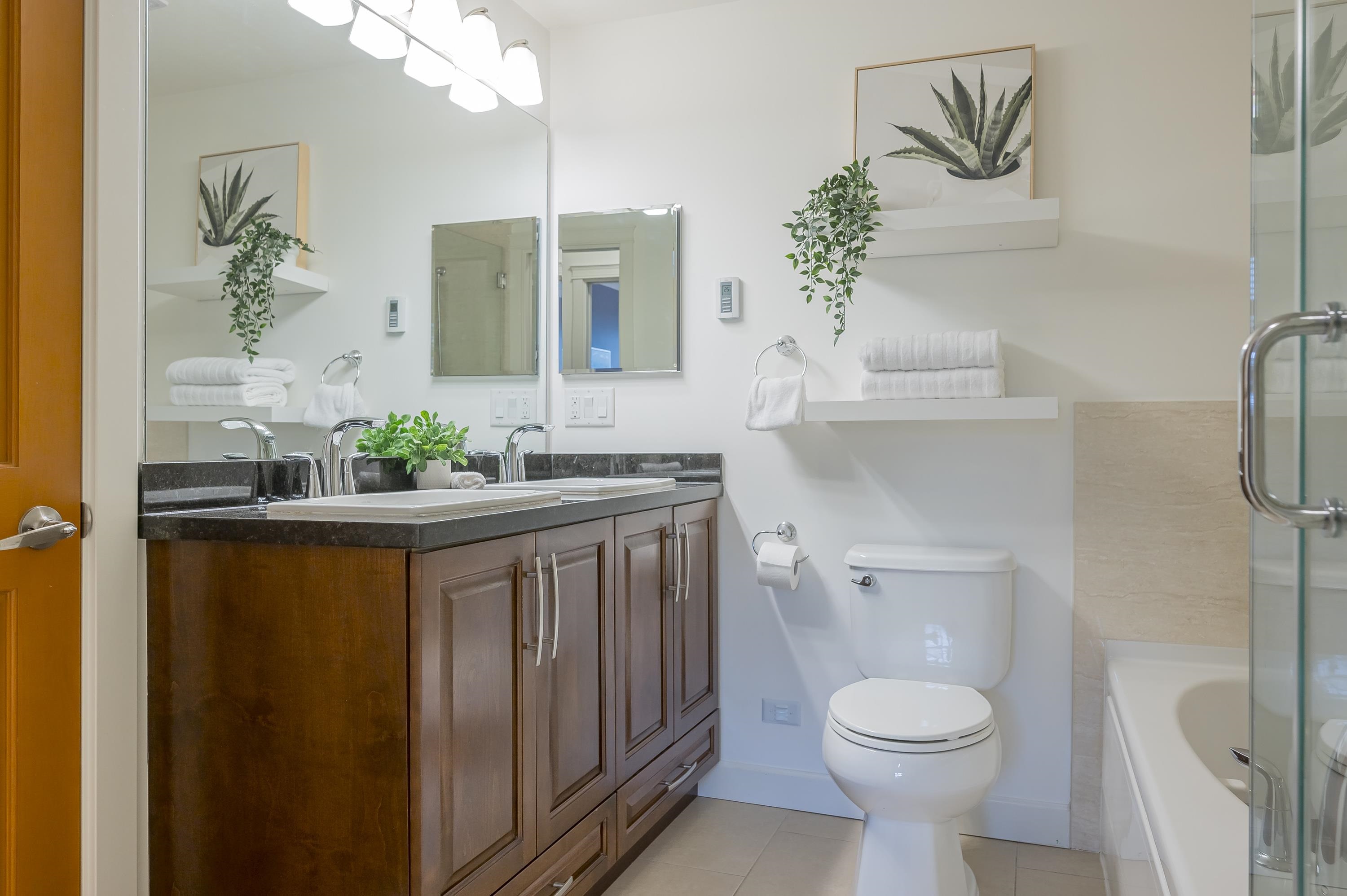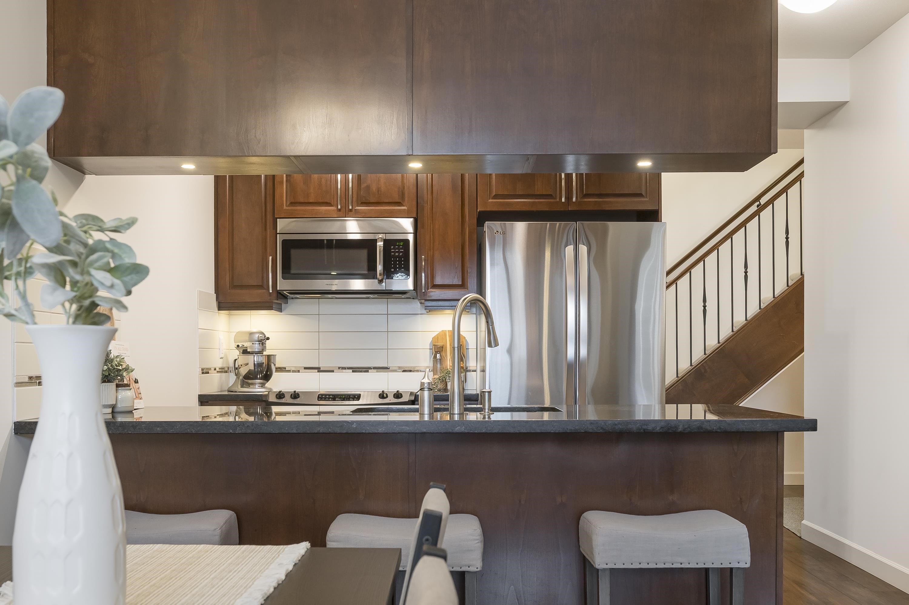 Top-floor 2-storey penthouse at Walnut Ridge by Quadra Homes! This bright & beautiful OPEN CONCEPT home is spacious, functional and exceptionally built with quality finishings throughout. Vaulted ceilings and oversized windows flood the space with natural light. Choose from two primary suites—one up, one down—for ultimate privacy. Enjoy A/C, granite counters, stainless appliances, solid-core fir doors, heated tile bathroom floors, and more. Bonus FLEX AREA for office or reading nook. Includes 2 PARKING stal...