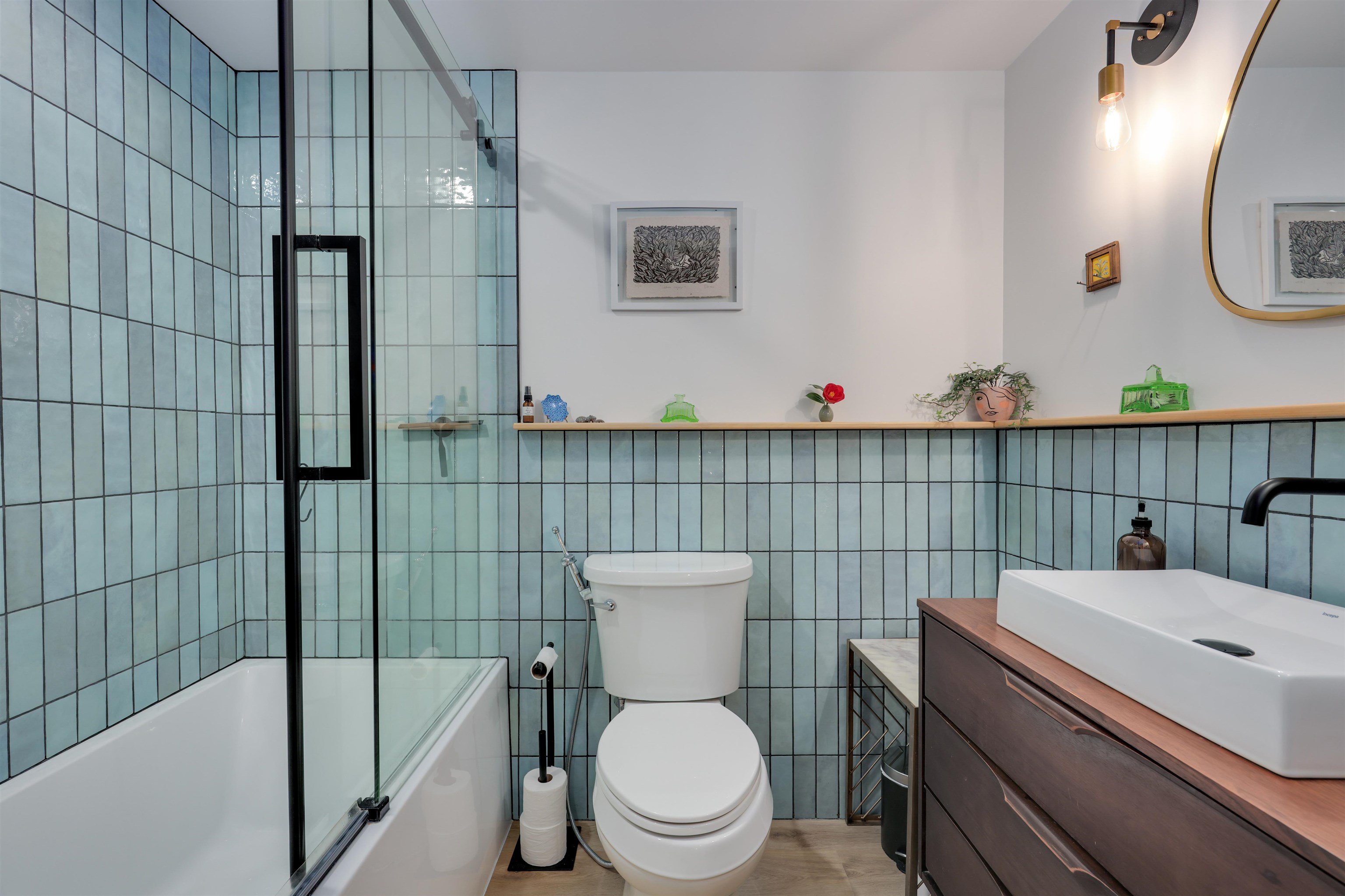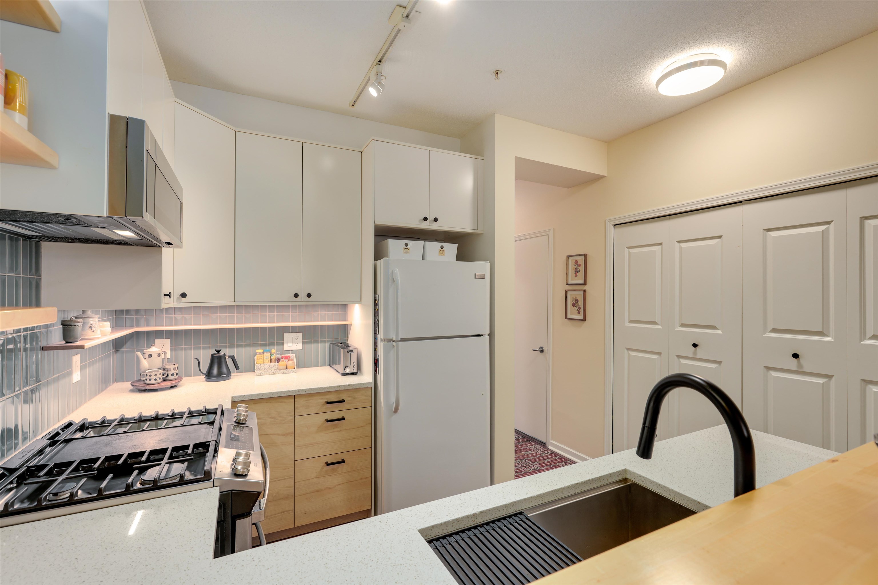 Rare ground-level home that combines privacy, function, and thoughtful upgrades. Enjoy your own street-level entrance and private patio, set back from the road for a quiet, tucked-away feel. Inside, a fully renovated kitchen features quartz counters, new cabinetry, and new appliances—designed for both storage and everyday use. 9’ ceilings and generous layout (808 sq. ft.) allow for a full dining table and sectional sofa, while the additional powder room adds convenience. Updated bathroom with new tile, vani...
