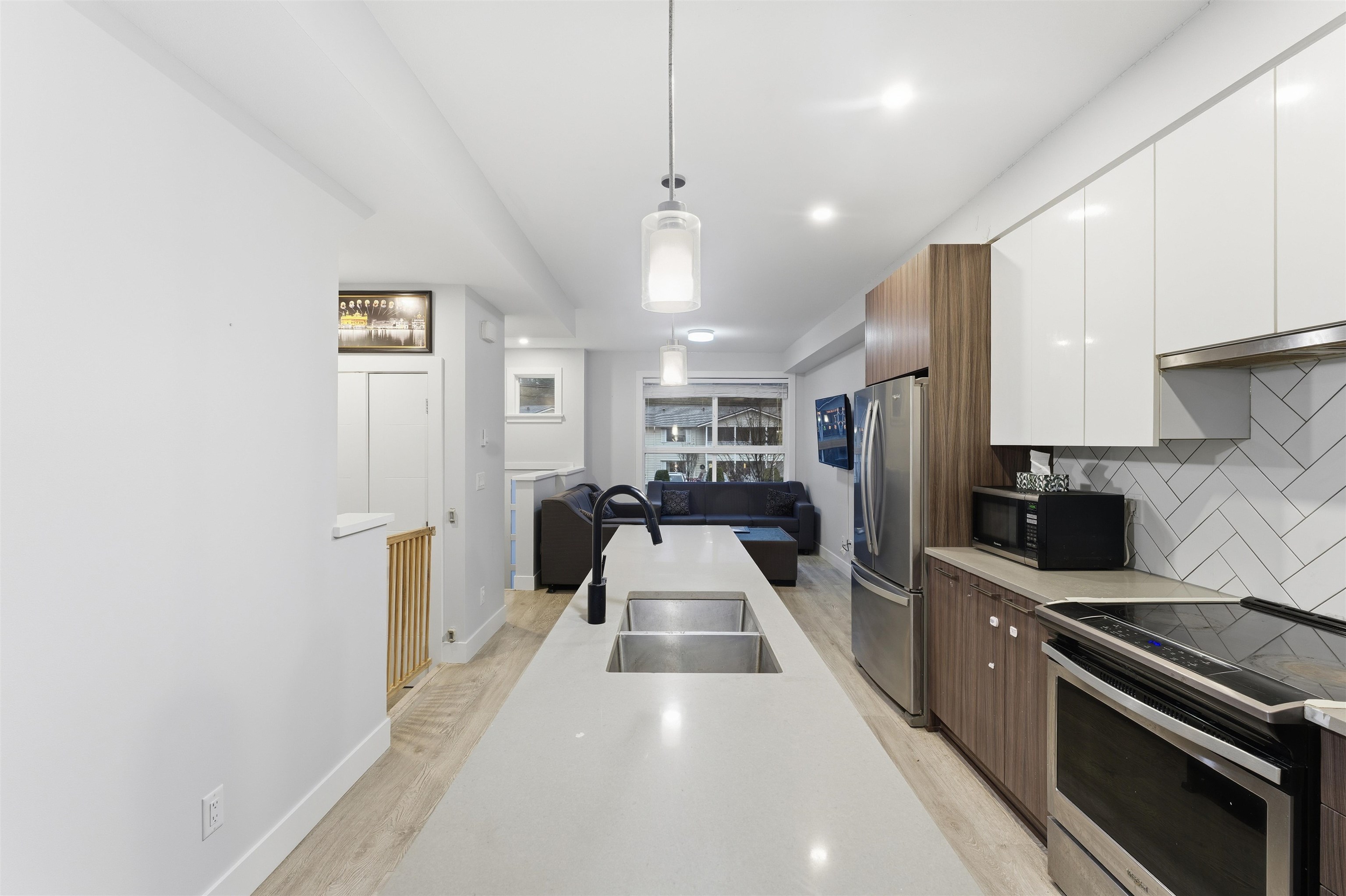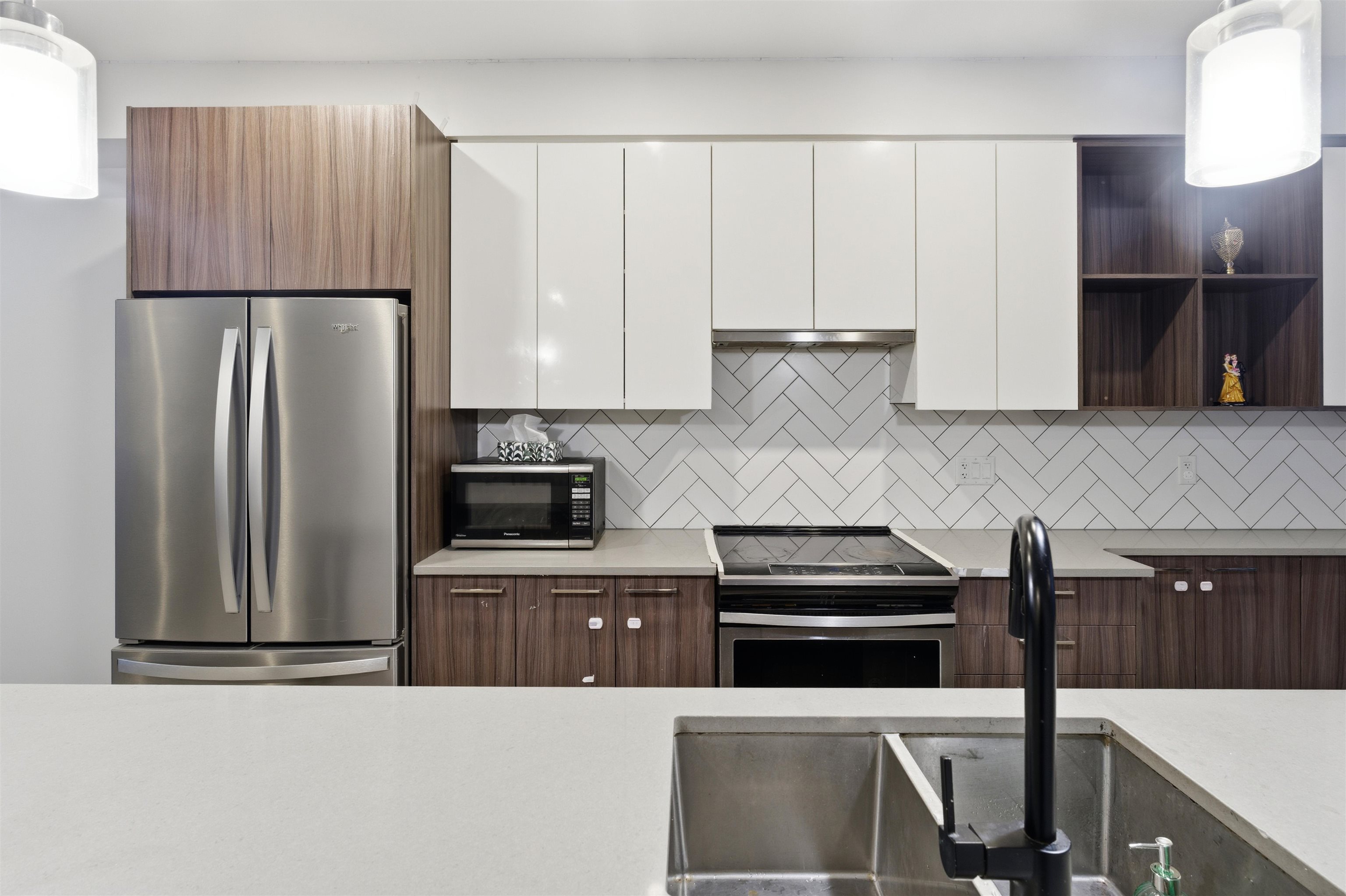 ** Best Value in Abbotsford ** Well - Priced rare find near Mill Lake . This well-kept modern rooftop townhouse features 2 bedrooms and 2 bathrooms with a bright open-concept layout, quartz countertops, a large island, stainless steel appliances, and air conditioning. The rare, generously sized private rooftop patio is perfect for entertaining or relaxing with views toward the lake. Includes garage and carport, ample storage, and a highly walkable setting close to Seven Oaks, schools, parks, and transit—an ...
