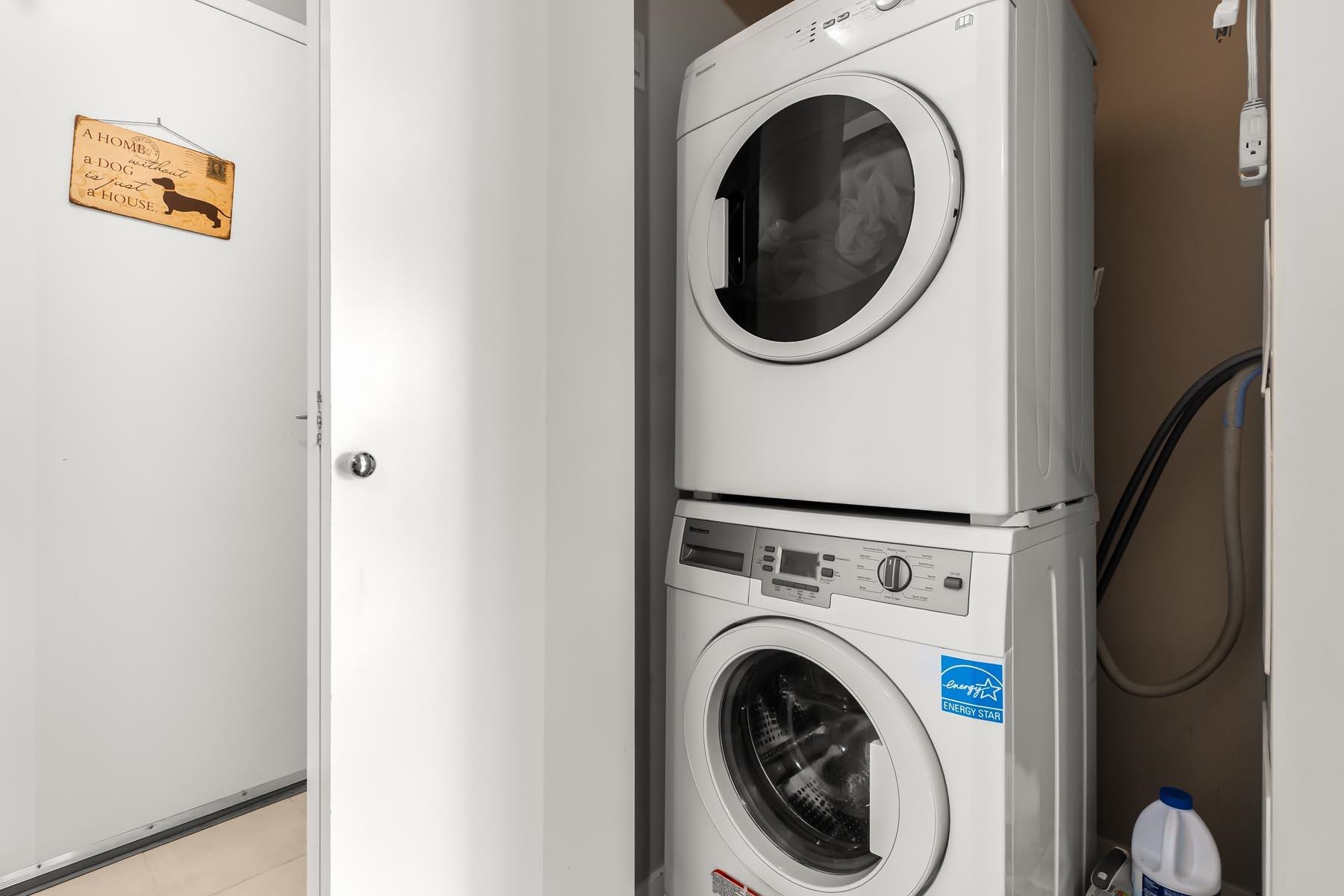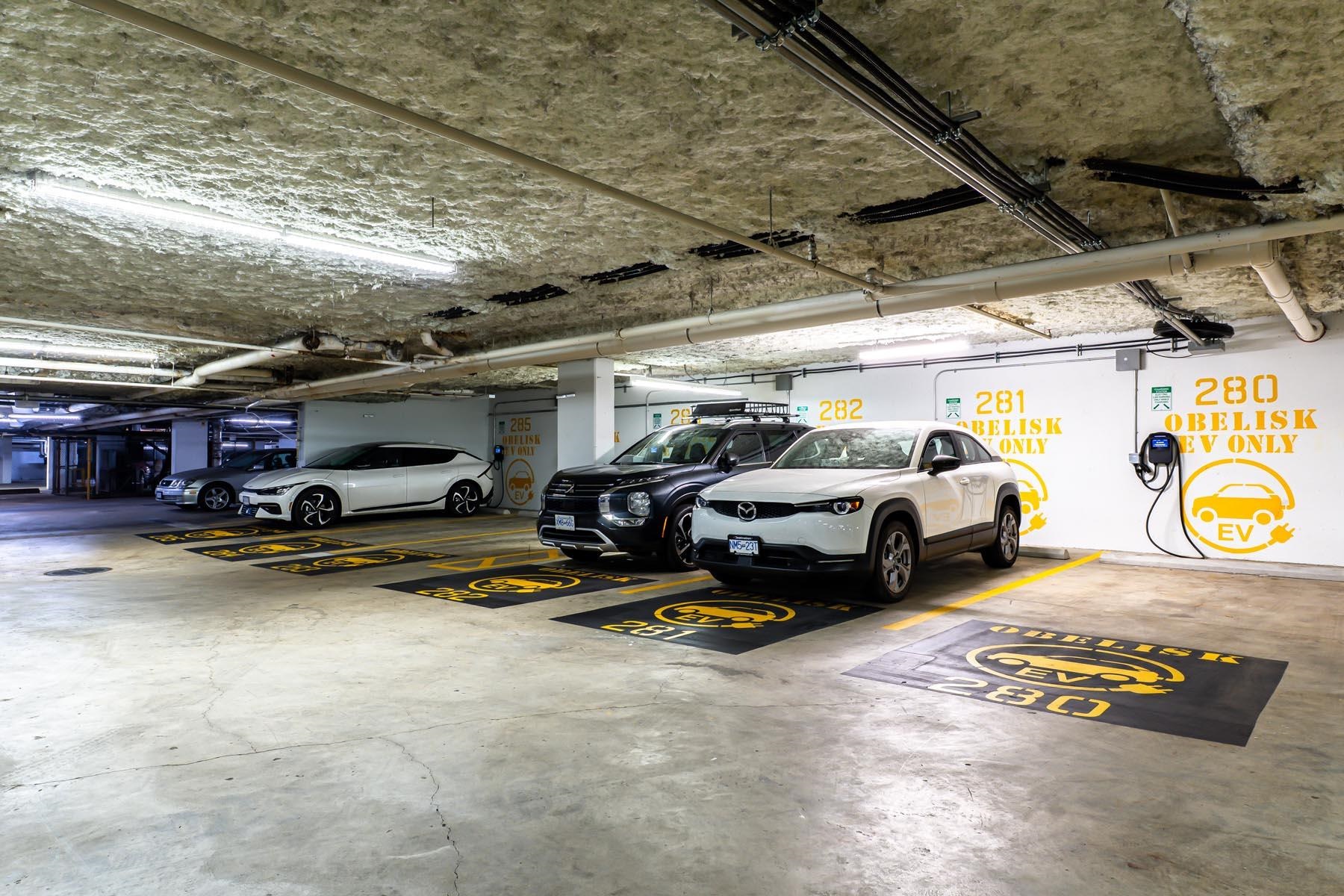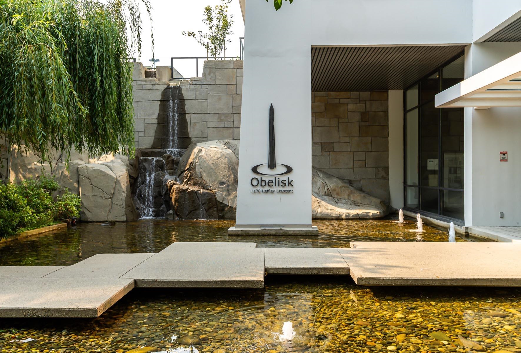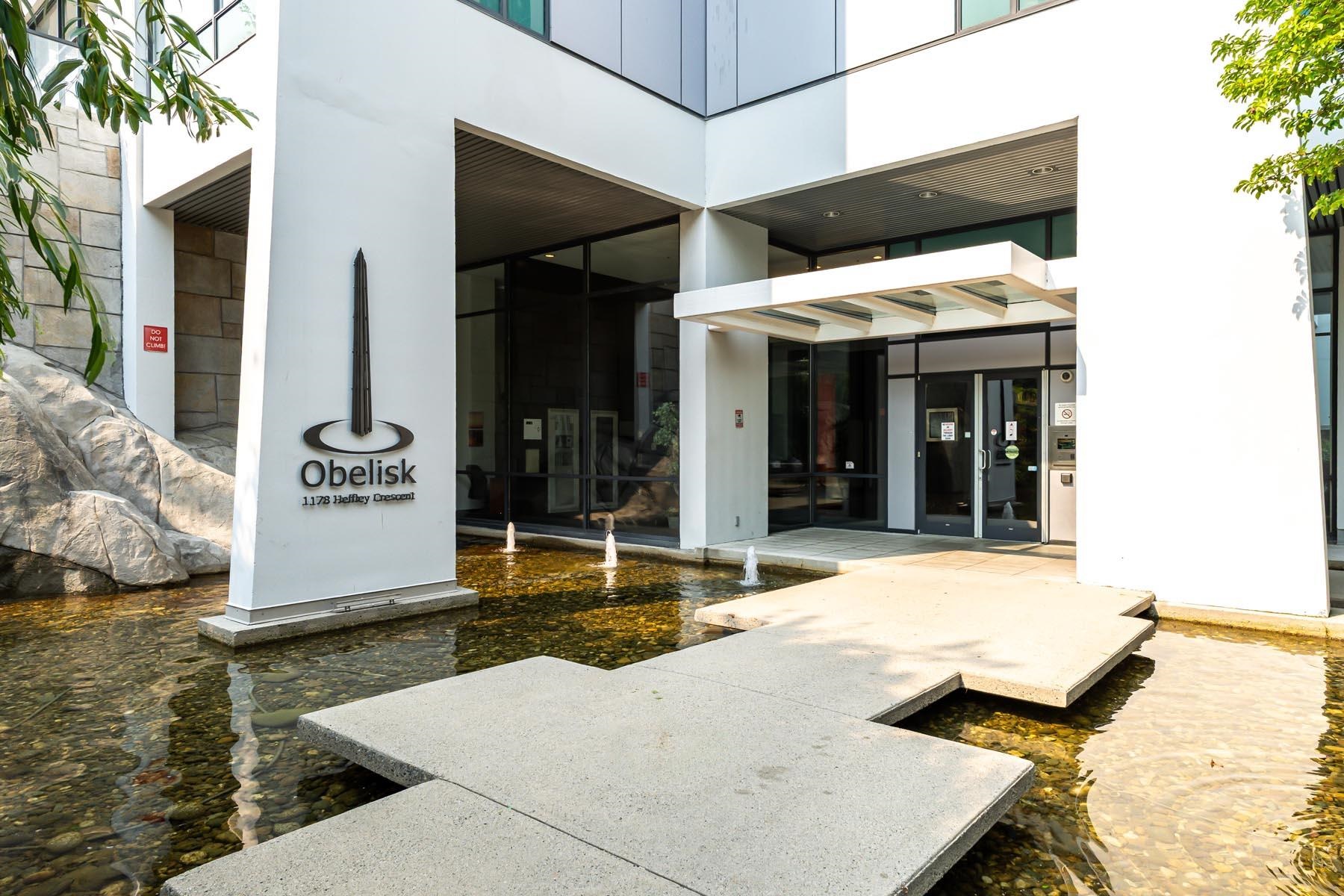 Corner unit, 2 bedrooms + den, 2 bathrooms in Obelisk, an excellent concrete building with impressive amenities. Open living area - kitchen w/ island, new fridge, updated dishwasher/stove/washer/dryer, updated laminate floors, electric fireplace & large windows. Efficient layout, bedrooms on opposite sides. Functional den perfect for a home office, storage or dining room. Primary bedroom has double closets & ensuite bathrm. Spacious covered balcony. Amazing amenities: gym, sauna, party room, games room, bik...