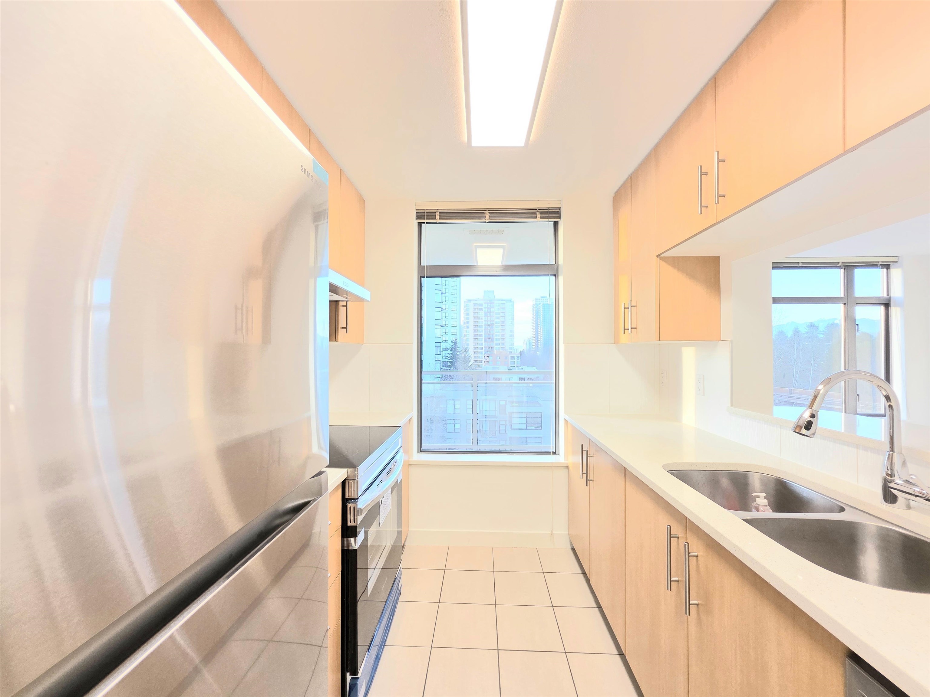 NEWLY UPDATED with fresh paint, NEW lighting, NEW laminate flooring, and NEW stainless steel kitchen appliances. Welcome to Circa by BOSA. This 2-bedroom, 2 full-bath corner residence offers stunning sunset and North Shore mountain views, overlooking a serene playground and beautifully tree-lined streets. The thoughtfully designed layout is filled with natural light and provides excellent separation between bedrooms, creating both comfort and privacy. Large windows frame the open outlook, making the home fe...