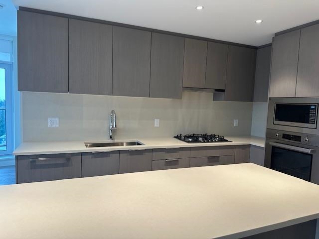 Wordsworth by Polygon. This brand new south west corner unit has beautiful view of park and water. 2 spacious bedrooms and sectional living and dining area. The kitchen island can be used as a big dining table, or an extended breakfast bar. Covered patio is an ideal place for relaxing with coffee or tea. Steps away from bus stop, save-on-food, U-hill secondary and all community area. Text for showing, move-in ready.