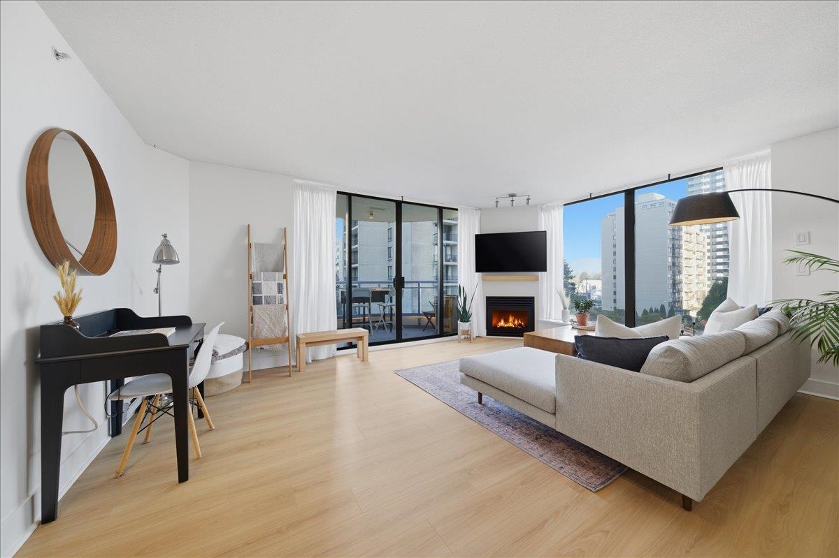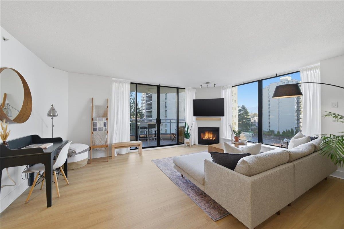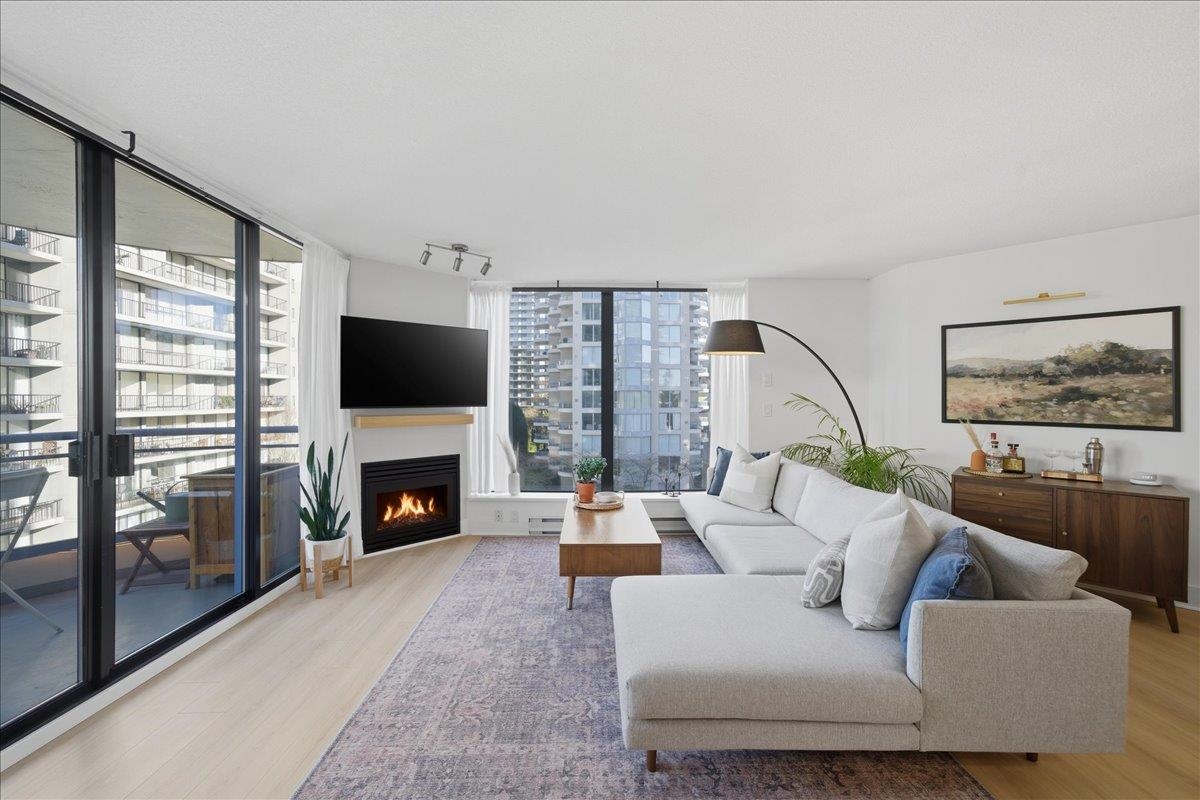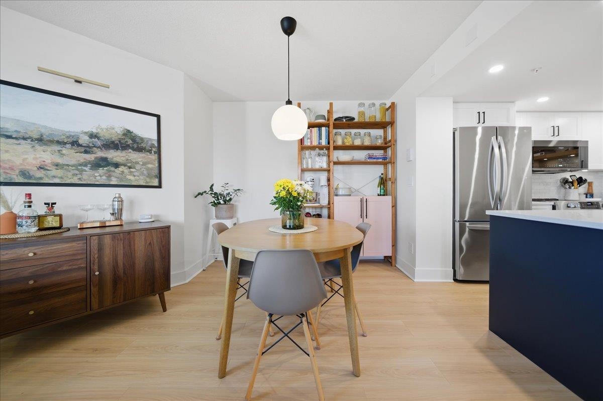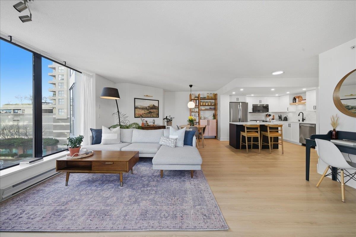 Beautifully updated open-concept 2 bedroom, 2 bathroom corner unit in the highly regarded Berkley Place by Bosa. This bright home features a renovated kitchen with white cabinetry, new hardware, quartz counters, backsplash, stainless steel appliances, and a large island perfect for entertaining. Spacious living and dining area with cozy gas fireplace and wood mantle, plus new flooring, baseboards, and hardware throughout. Large windows flood the home with natural light and open to two covered balconies, one...