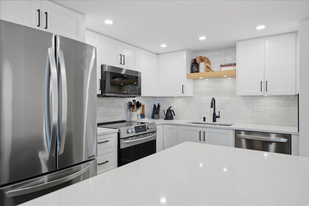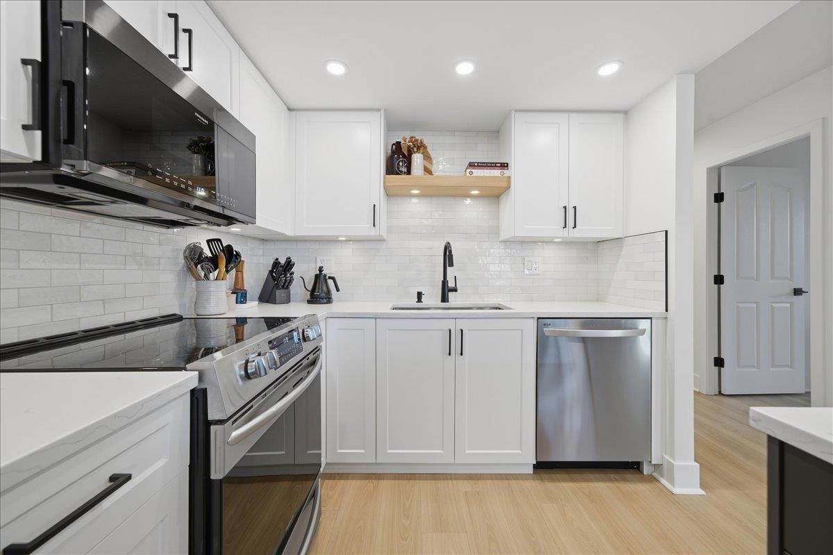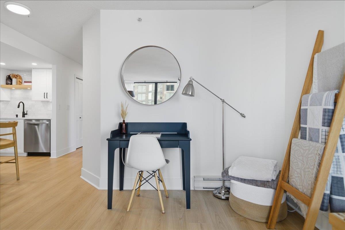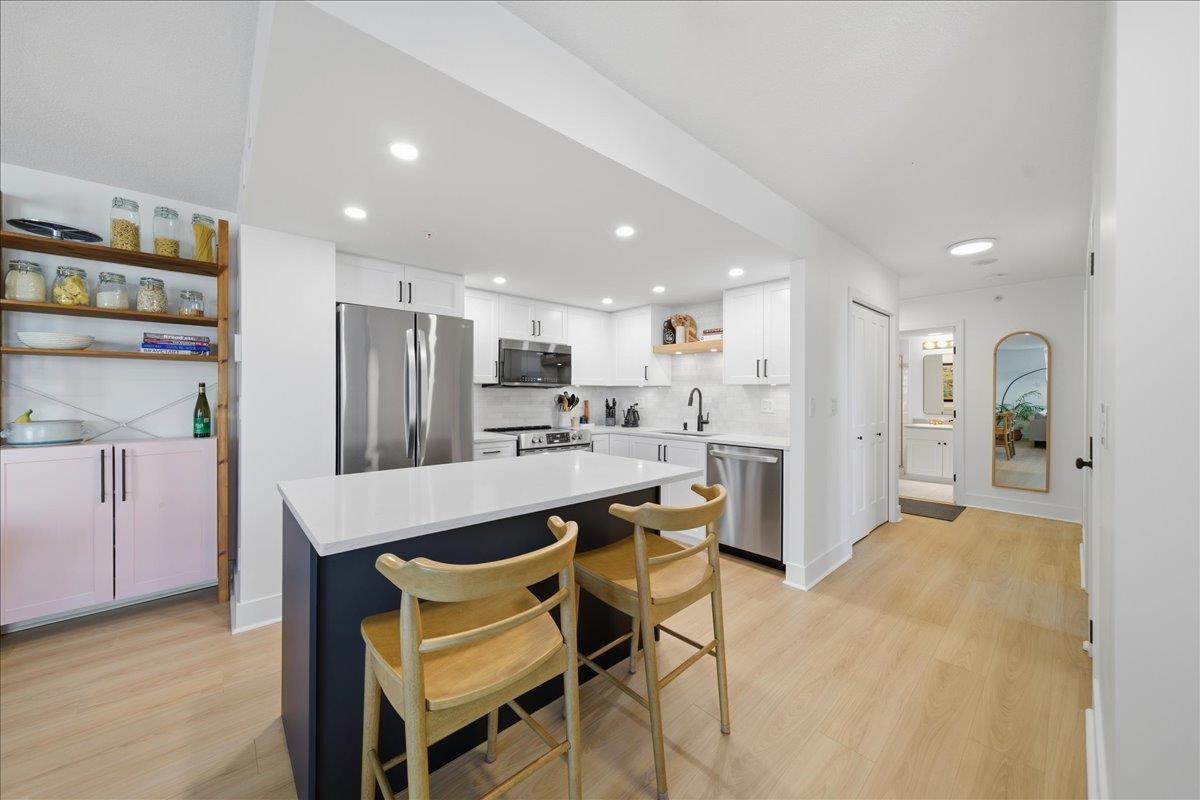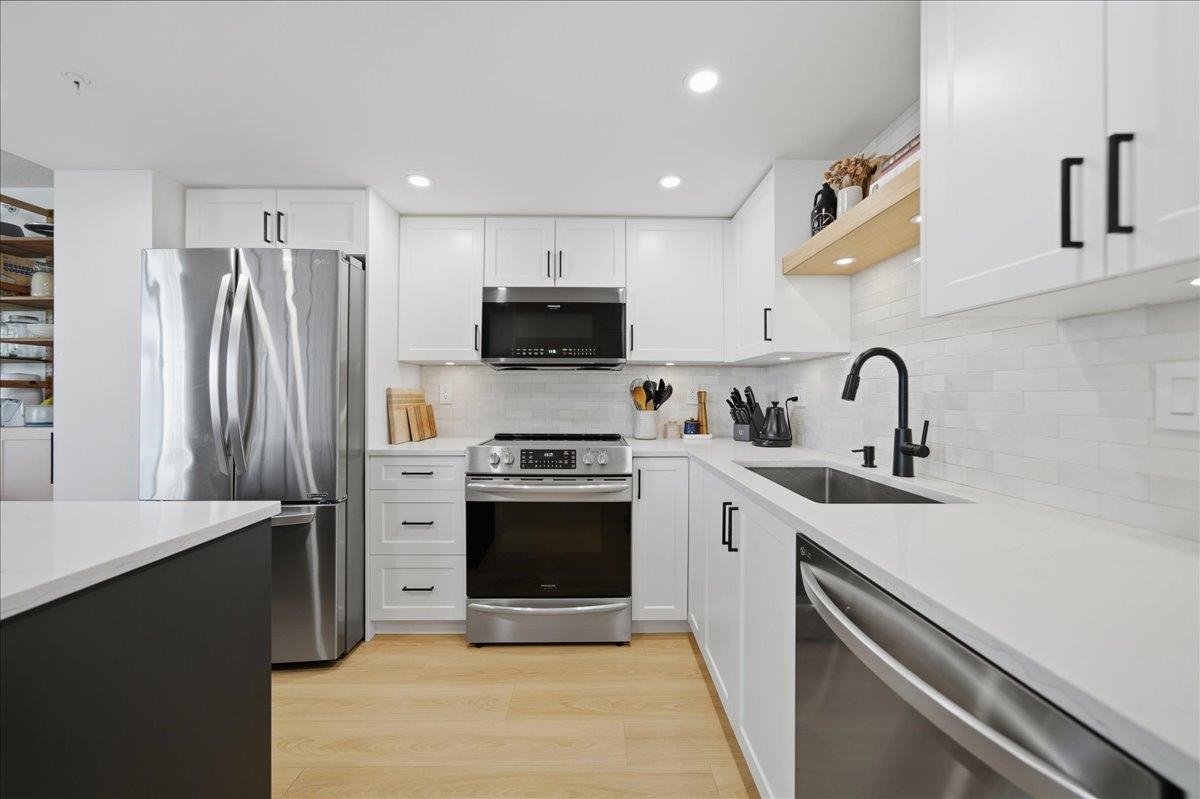 Beautifully updated open-concept 2 bedroom, 2 bathroom corner unit in the highly regarded Berkley Place by Bosa. This bright home features a renovated kitchen with white cabinetry, new hardware, quartz counters, backsplash, stainless steel appliances, and a large island perfect for entertaining. Spacious living and dining area with cozy gas fireplace and wood mantle, plus new flooring, baseboards, and hardware throughout. Large windows flood the home with natural light and open to two covered balconies, one...