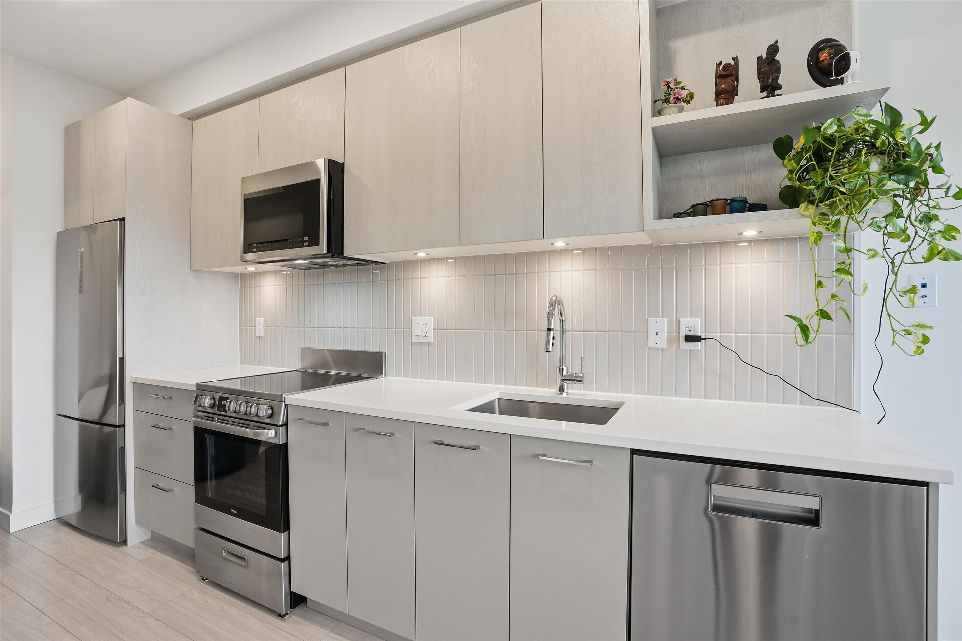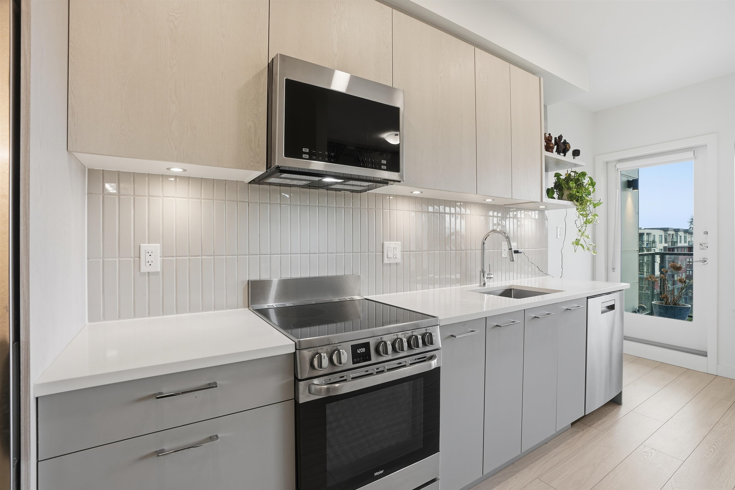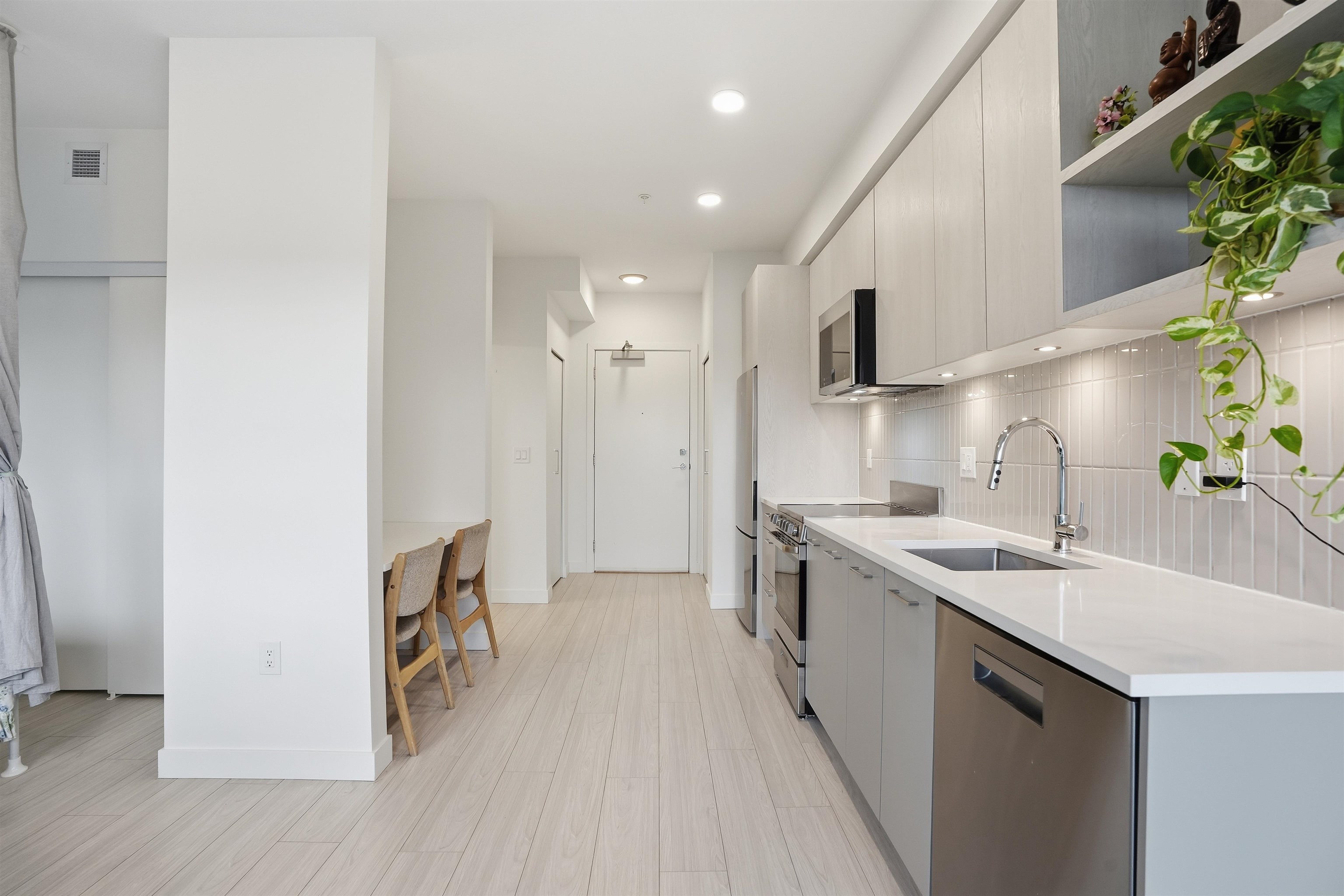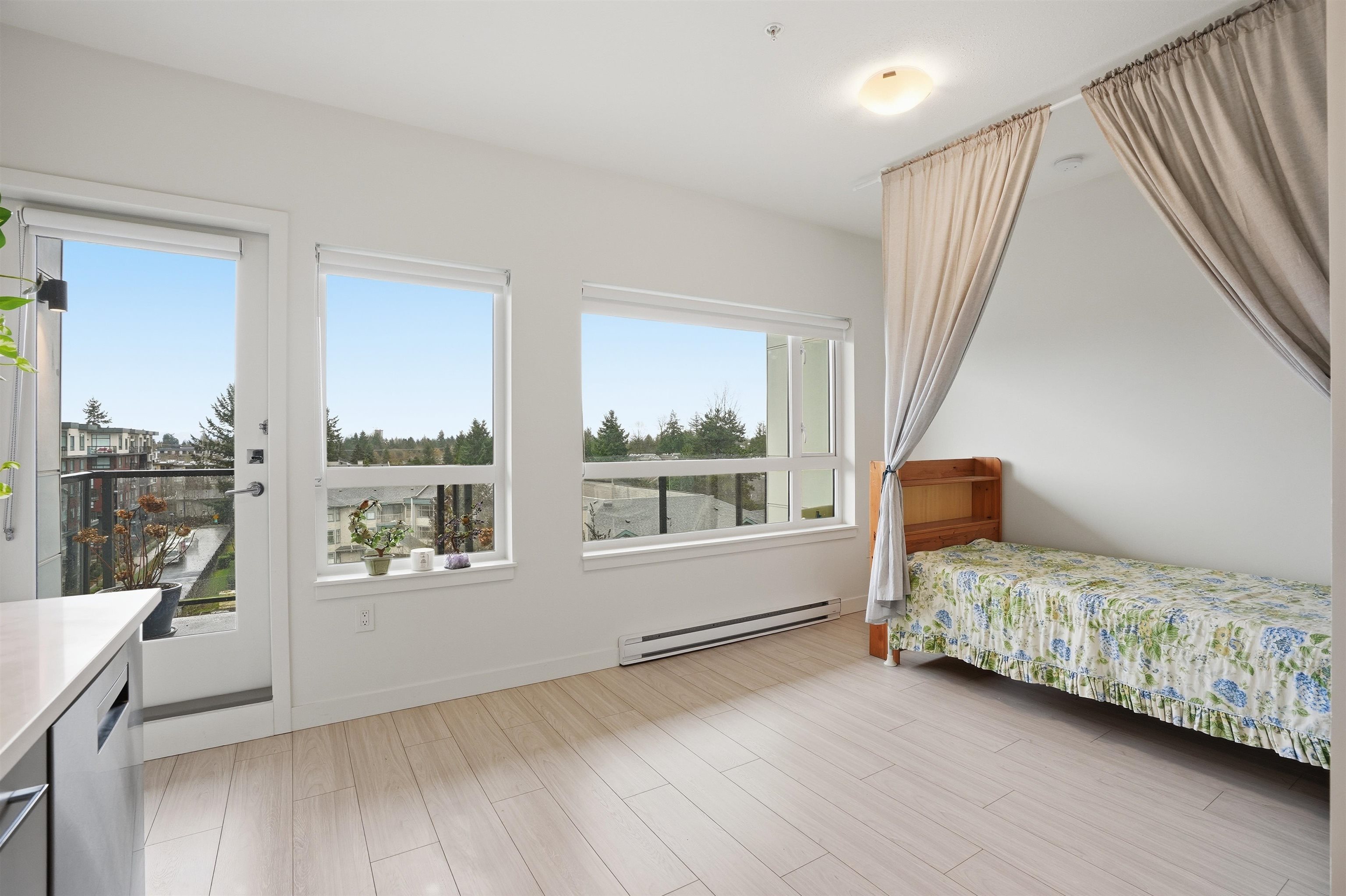 Welcome to a beautiful and bright centrally located studio unit in heart of North Surrey featuring one bathroom, open-concept kitchen layout with quartz countertops, a built-in nook, 8-foot ceilings, in-suite laundry, and a large balcony for fresh air and good view. Amenities include a party room, barbecue area, and playground, gym, lounge. .Just minutes away from the SkyTrain and 15 to 20 minutes walking distance to Elementary/High School. Very easy access to the Patullo Bridge and Highway 1. OPEN HOUSE SU...