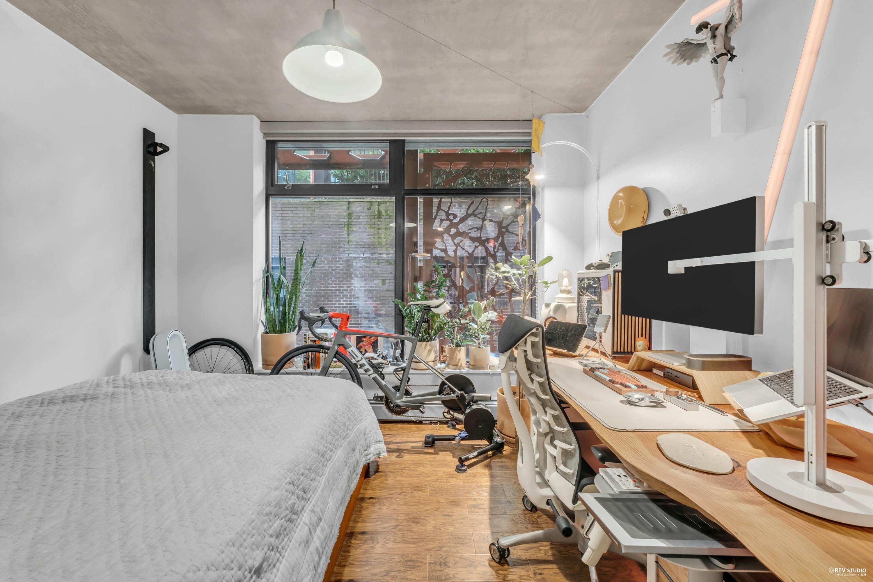 RARE GEM AT WOODWARDS — This rarely available CORNER home offers over 1,000sqft of well designed living space, with premium SE exposure. Thoughtfully maintained by the current owners, featuring a NEW washer & dryer, NEW High Performance OTR, and FRESH paint. Two equally large bedrooms and two full bathrooms mean no compromises need to be made. Includes one underground PARKING stall, steps from the elevator. Strata fees include heat, hot water, gas, high speed internet, 24/7 concierge, and access to must-see...