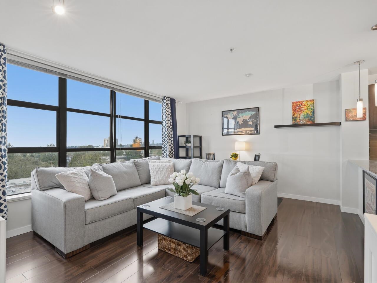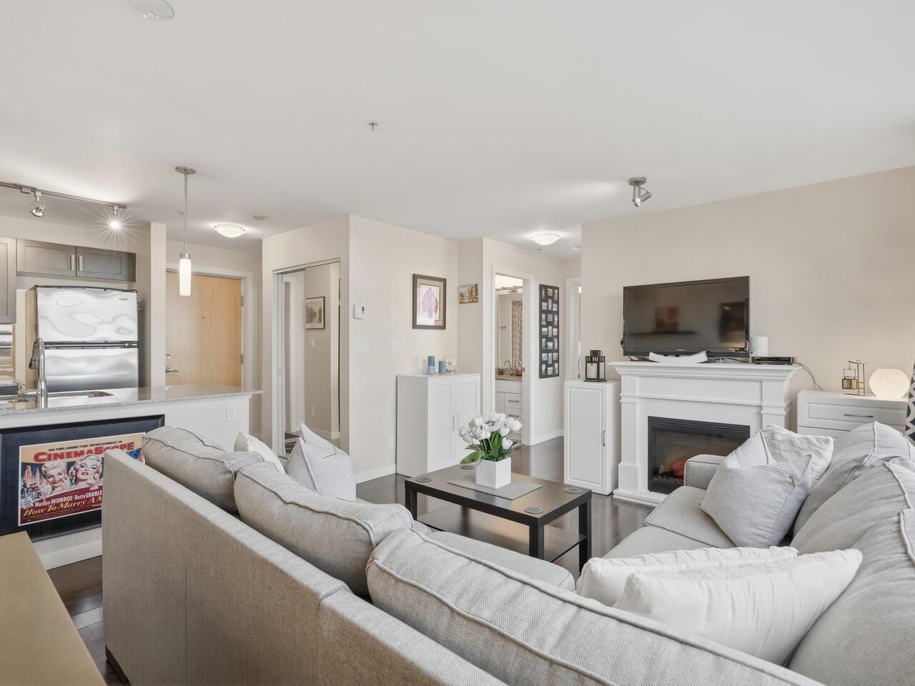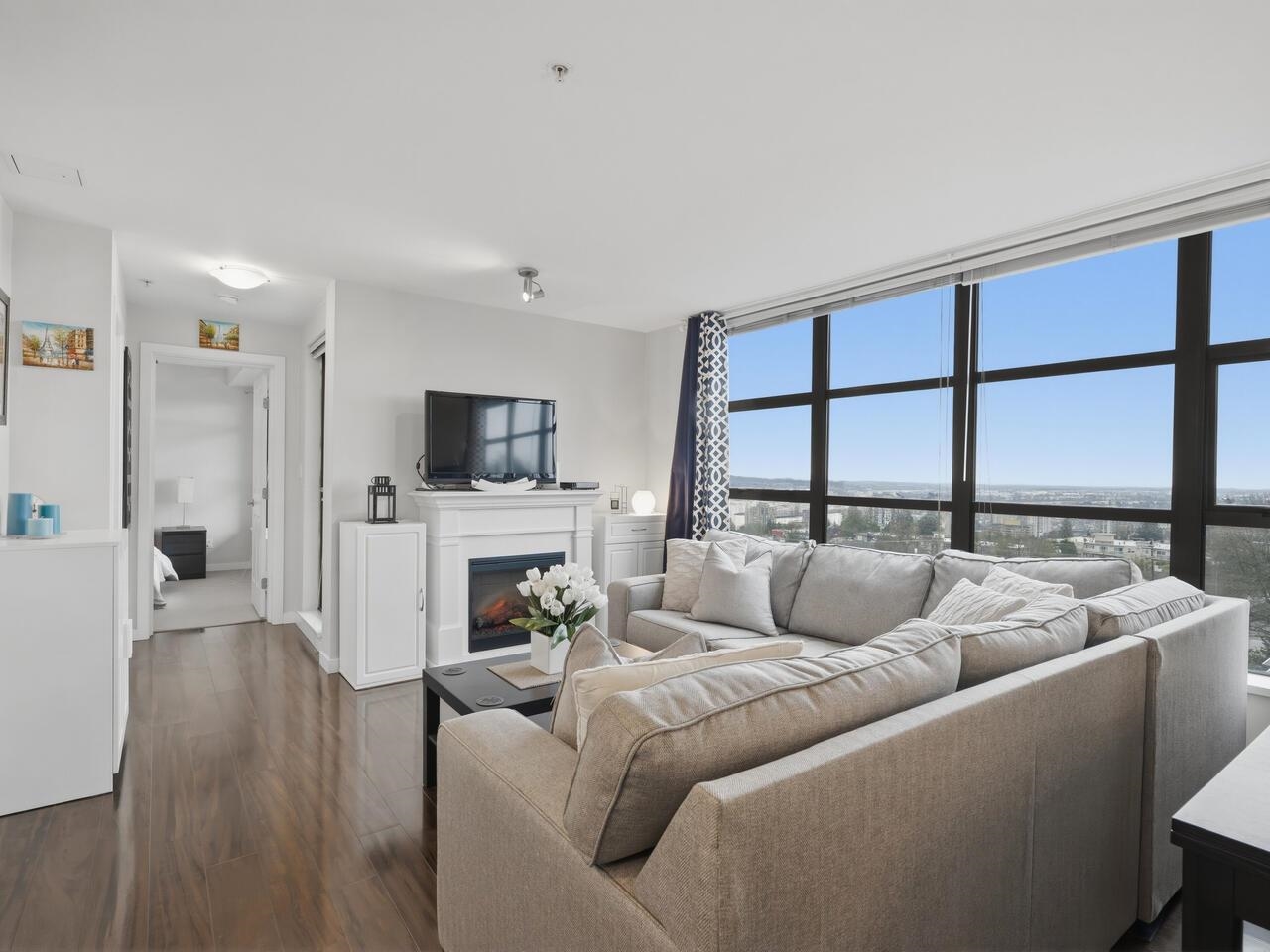 Fully furnished 1 bed, 1 bath suite in the concrete Amadeo building with stunning river, city and mountain views from every room. This bright, well-designed home features an open-concept layout with no wasted space, large windows, laminate flooring and an electric fireplace. The kitchen offers stainless steel appliances, granite countertops and a breakfast bar. The bathroom includes a granite counter, rain shower and linen storage. Enjoy an oversized covered terrace ideal for entertaining and taking in the ...