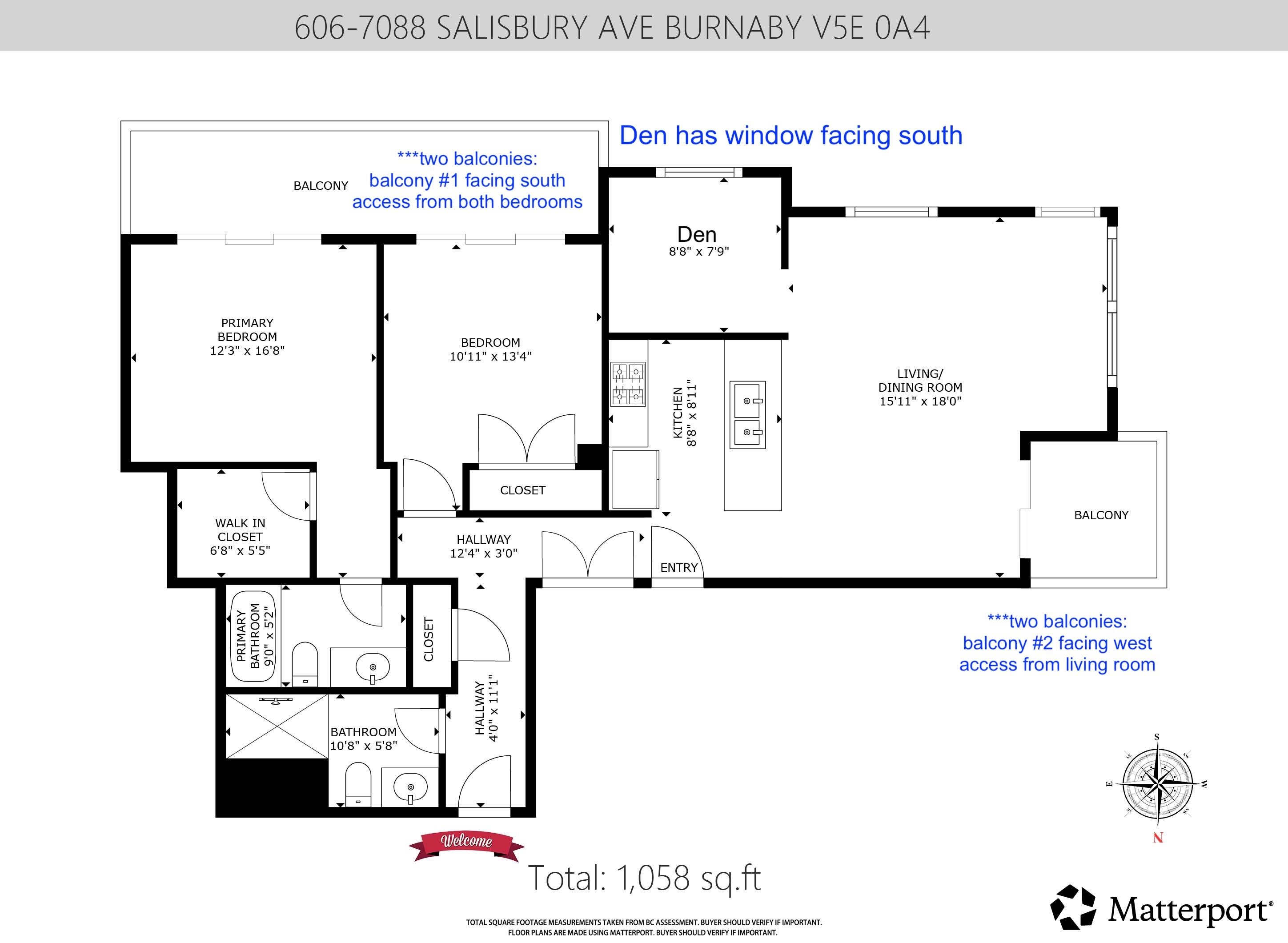 Welcome to WEST by BOSA in prime Highgate Village, Burnaby South. This spacious 1,000+ sqft southwest-facing corner home offers 2 generous bedrooms, 2 full bathrooms, and a bright den with a south-facing window — ideal as a home office or potential 3rd bedroom. Located on the 6th floor, the functional open-concept kitchen flows seamlessly into the living and dining areas, perfect for everyday living and entertaining. Features Granite Countertops in Kitchen and Bathrooms. Two well-sized balconies provide gre...