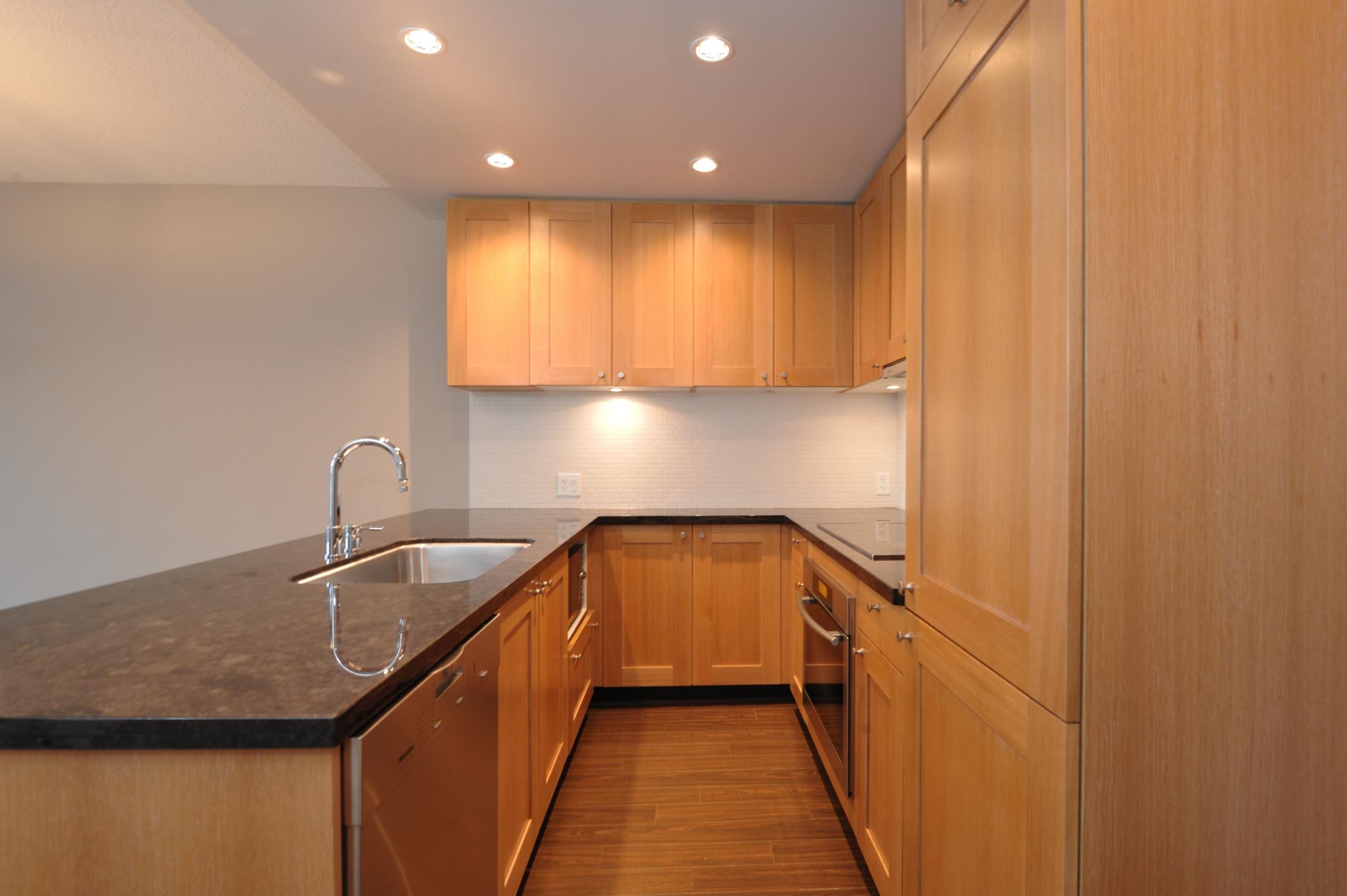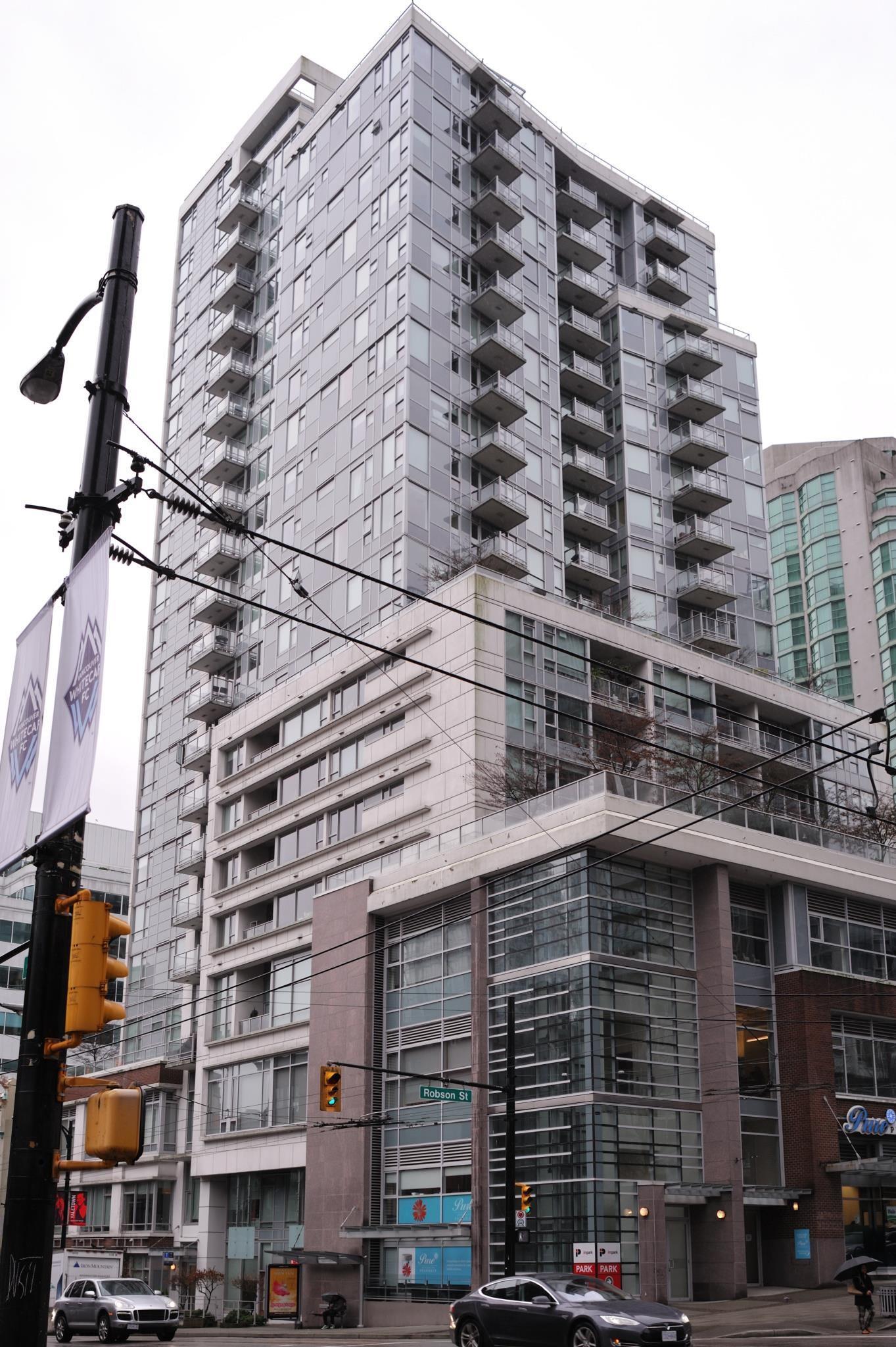 Lovely finishings in centrally located Raffles on Robson, conveniently located on the corner of Cambie St. & Robson St. Open kitchen with granite counters and high end appliances, hardwood floors and spacious bathroom with luxurious separate tub & shower. Live the downtown lifestyle, with Robson St., groceries, cafes, restaurants and arena all within blocks of your front door. No pets, no smoking, 1 year lease; month-to-month thereafter.