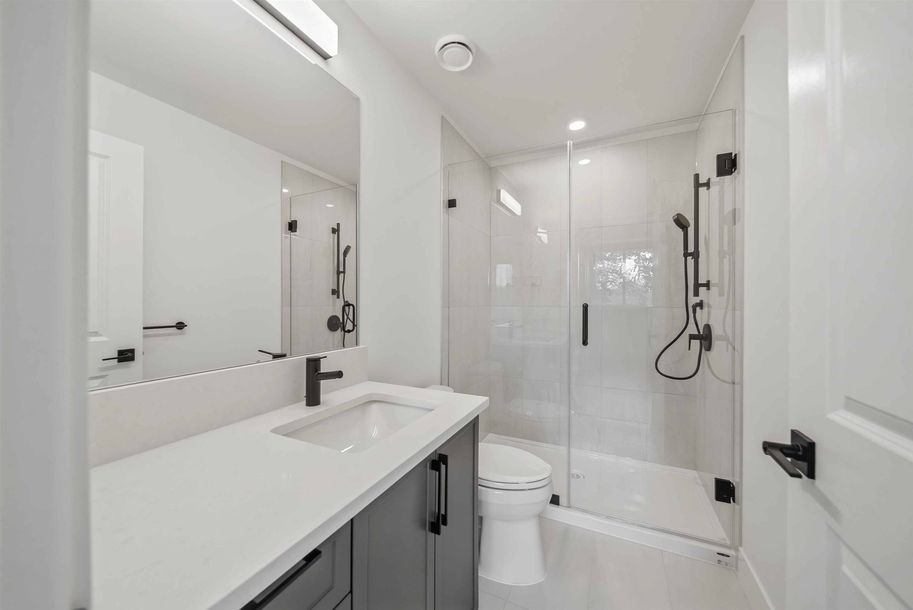 BRAND NEW! MOVE IN NOW! Introducing King + Crescent by award-winning Zenterra Developments in South Surrey. This brand new 2-level condo offers 2 bed / 2.5 bath with 10' ceilings and street-level front door access. Included: A/C, solid closet organizers, storage locker, and 2 parking stalls w/ EV rough-in. The kitchen features full-size stainless steel appliances w/ 5-burner gas range, kitchen island + gas BBQ hookup on ground floor patio. Additional storage tucked under the stairs. Minutes to Crescent Beac...