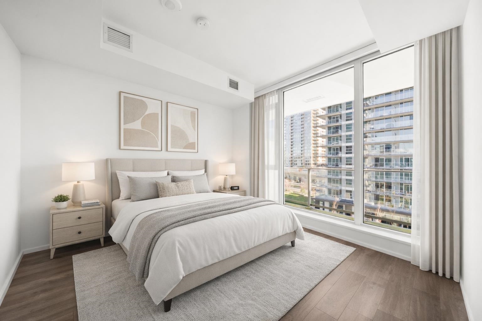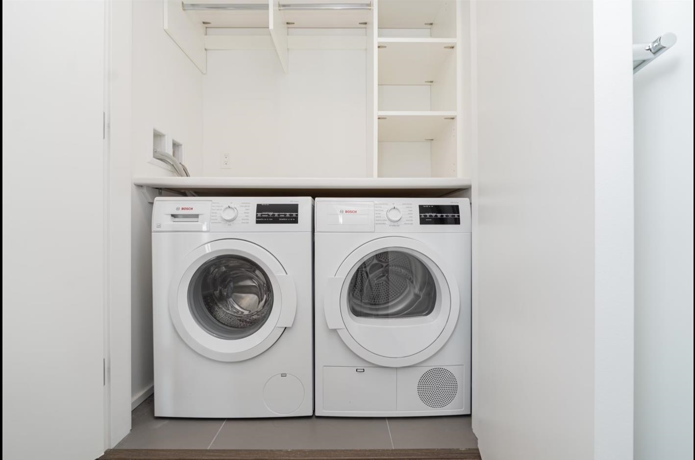 Welcome to The City of Lougheed Tower One by SHAPE Properties! This bright East-facing 1 bedroom home features a modern kitchen with Bosch appliances, quartz counters, gas cooktop, and island. Enjoy A/C, laminate flooring plus a spacious balcony. Expansive windows provide exceptional natural light. Side-by-side insuite laundry, storage locker and upgraded full-size EV parking stall on P1 are included. Over 22,000 sq.ft. of resort-style amenities: gym, lounges, rooftop BBQ, games room, concierge, and more. S...